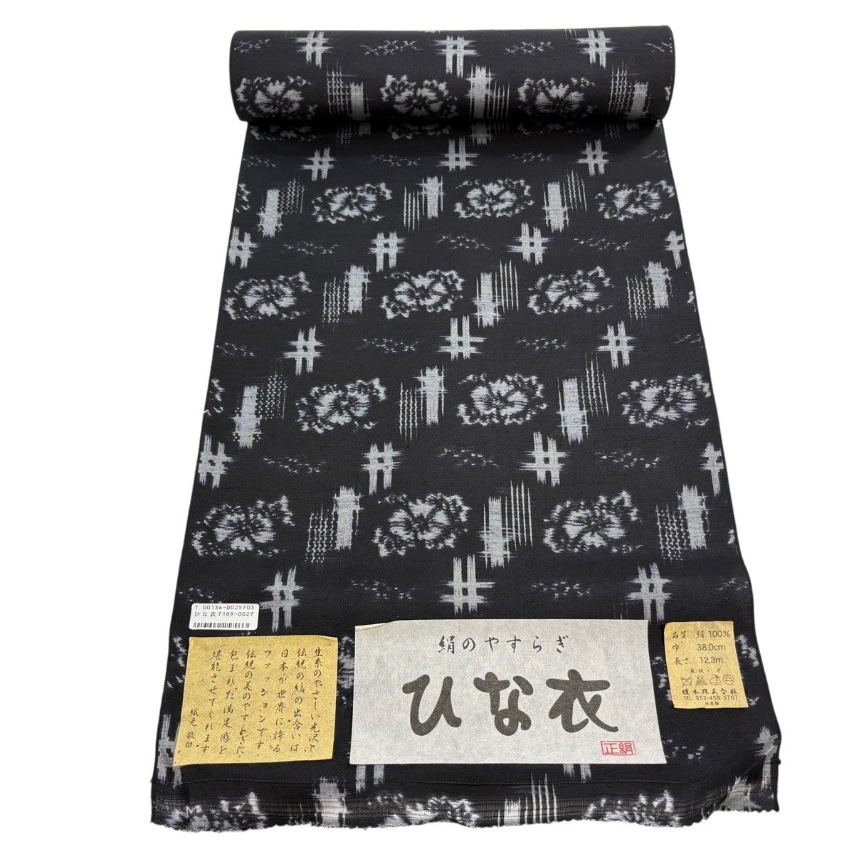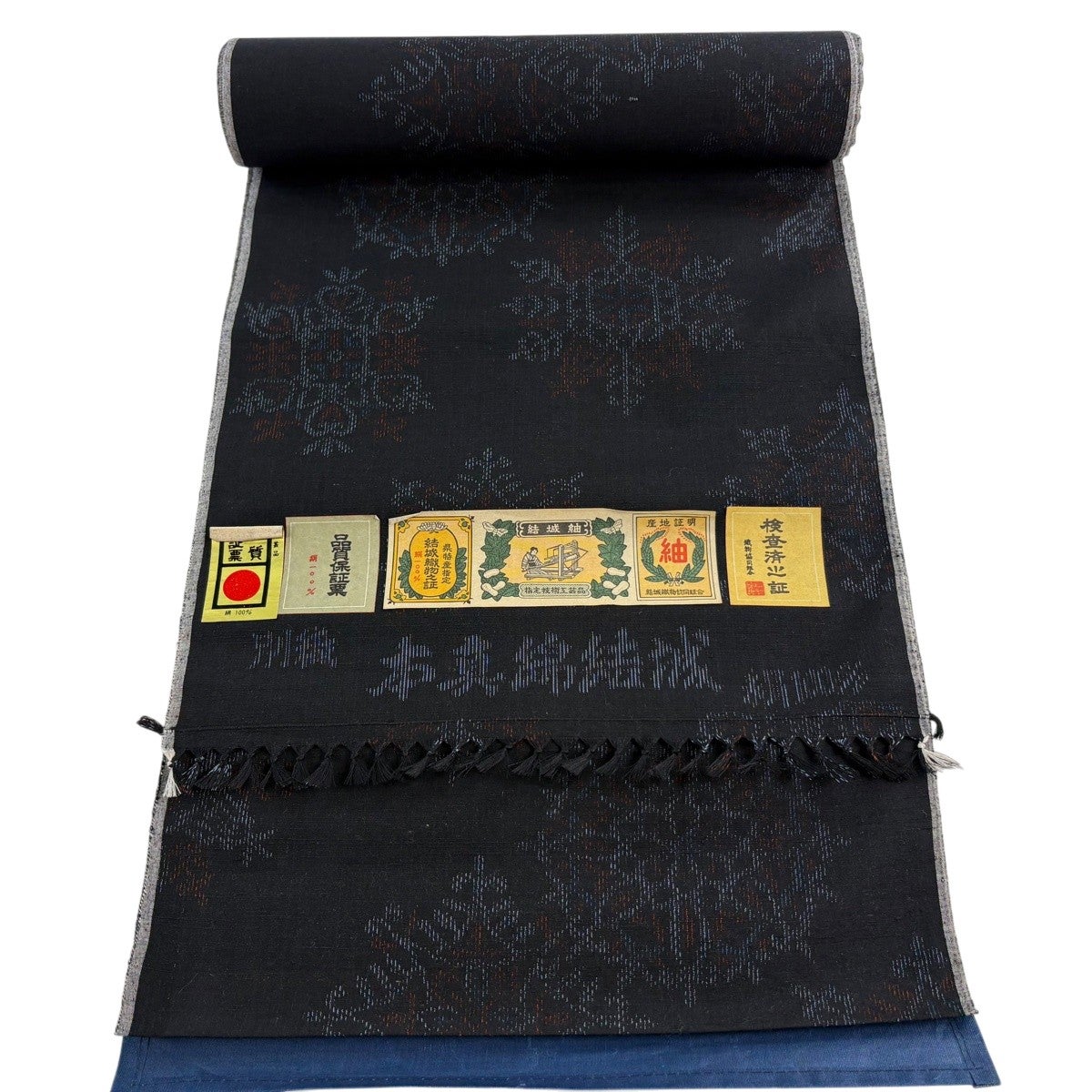 30%OFF 反物 秀品 紬 菱 七宝 黒 正絹 K30