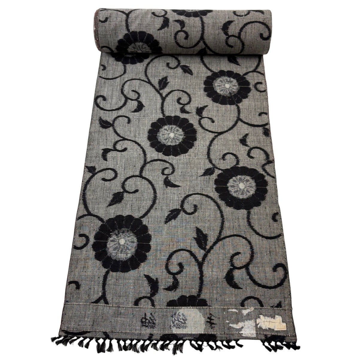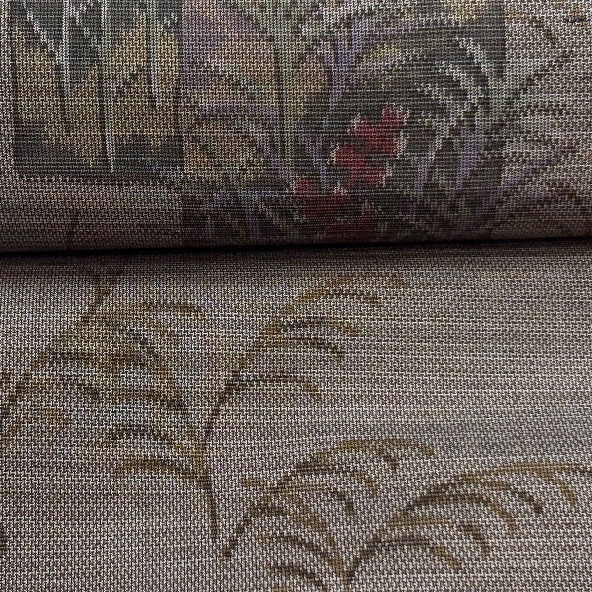 反物 秀品 紬 泥染 ヱ霞 草花 焦茶色 正絹