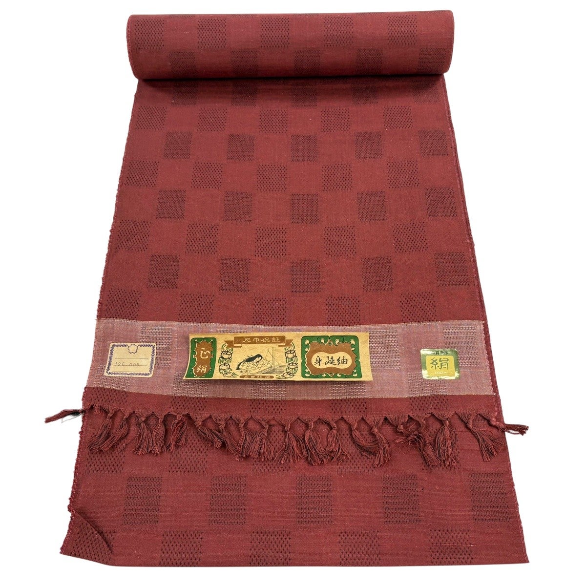 50%OFF 反物 秀品 紬 麻の葉 赤 正絹 K50
