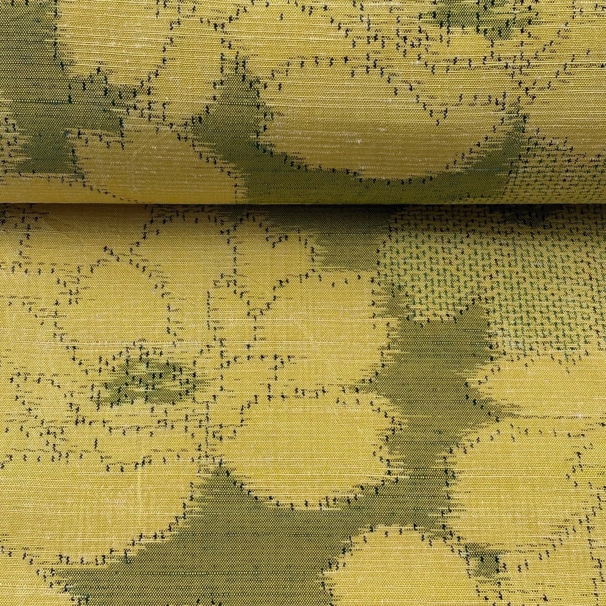 【美品】反物 秀品 紬 花 幾何学 鶯色 正絹