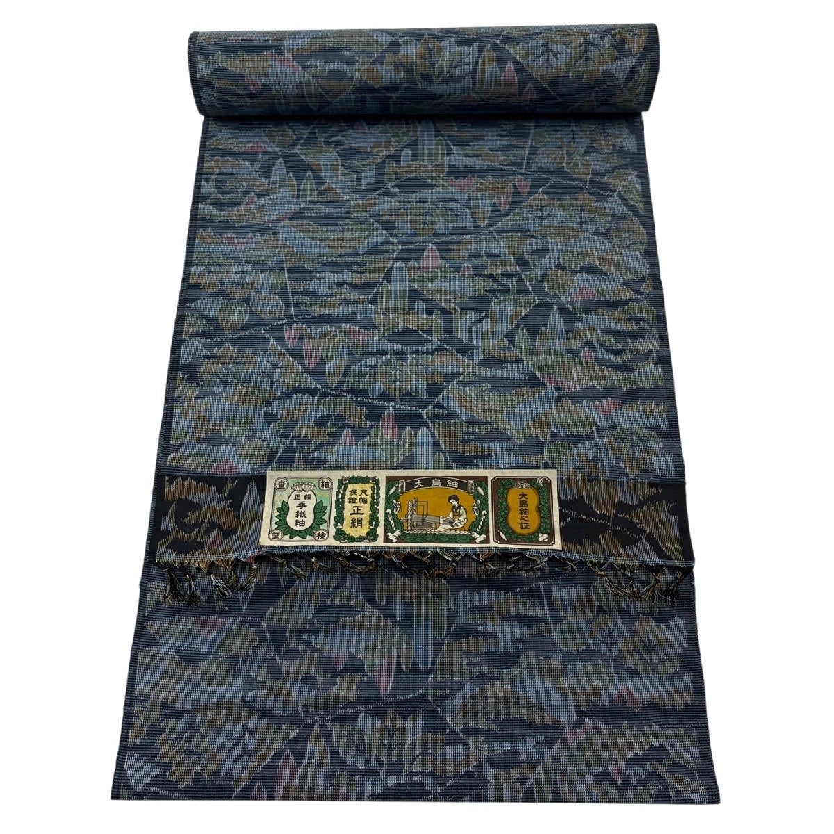 反物 逸品 紬 本場琉球 夏紬 夏物 燕 流水 濃紺 正絹