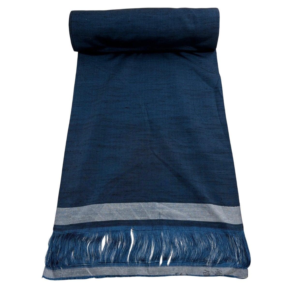 反物 逸品 男着物 紬 夏紬 本麻ちぢみ 夏物 紺色 麻