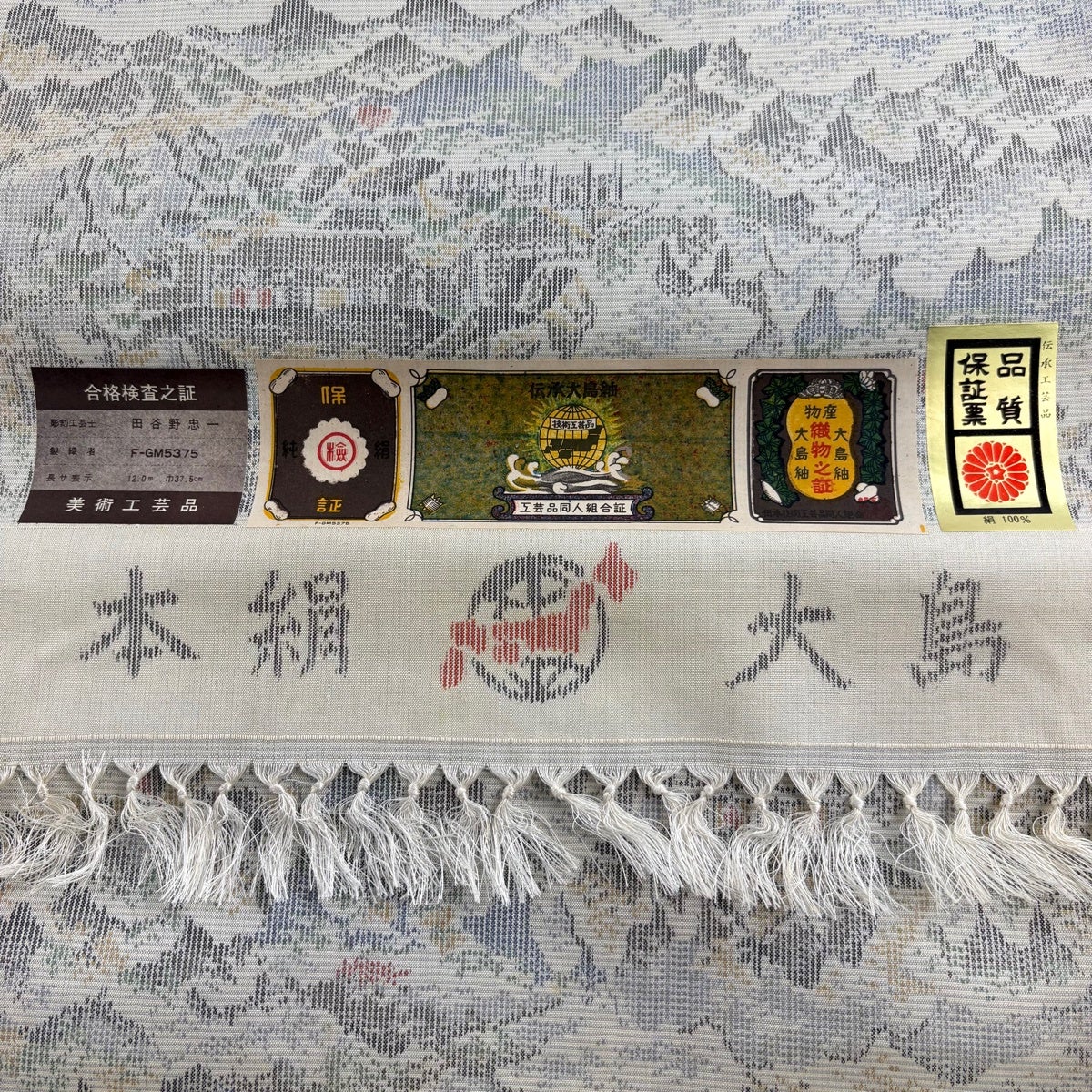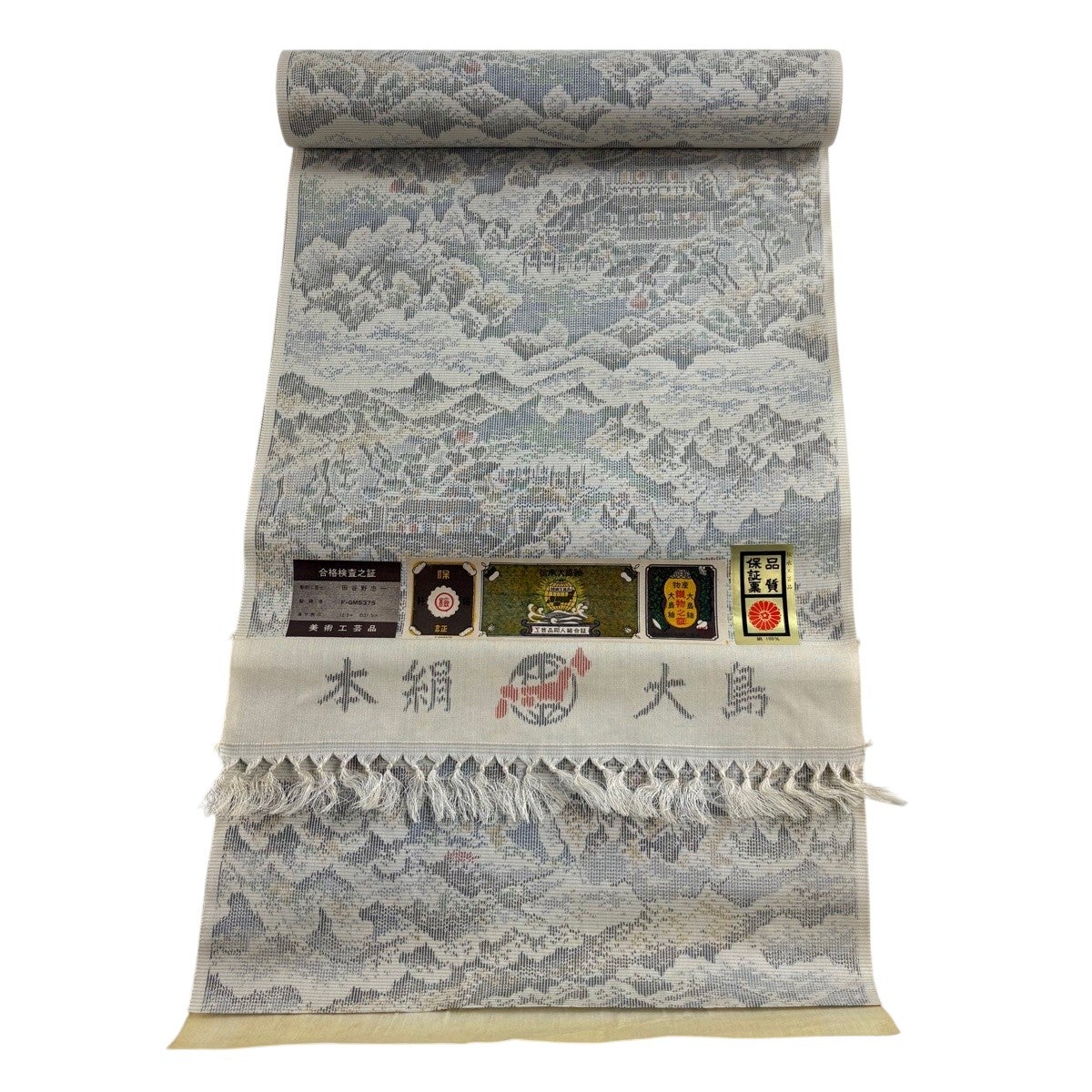 反物 秀品 紬 証紙有り 草花 ヱ霞 クリーム 正絹