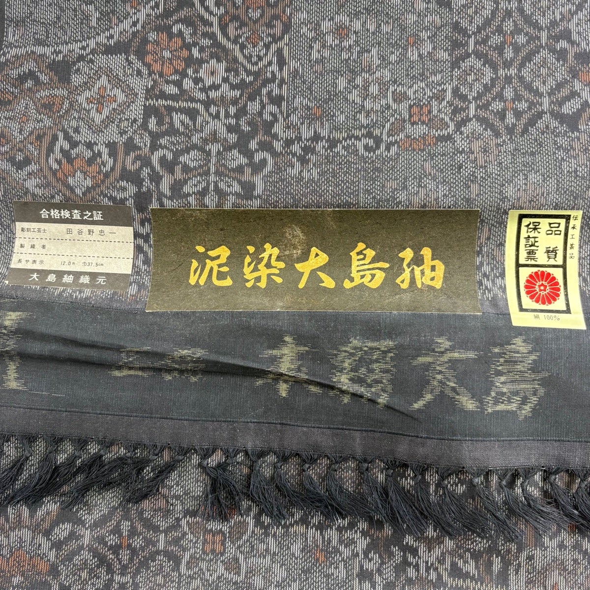30%OFF 反物 秀品 紬 菱 七宝 黒 正絹 K30