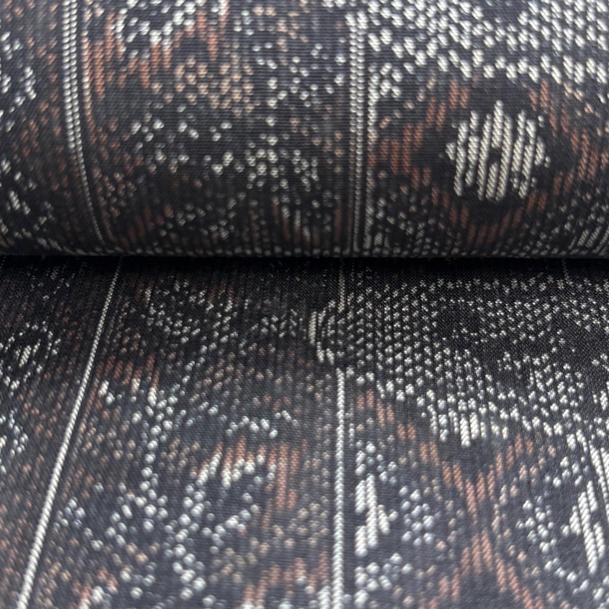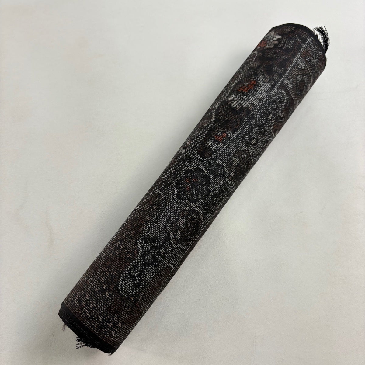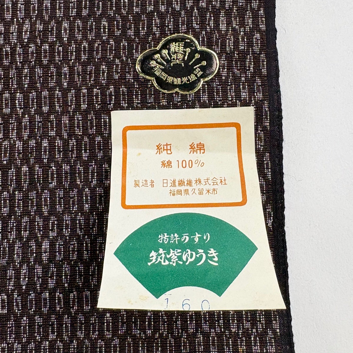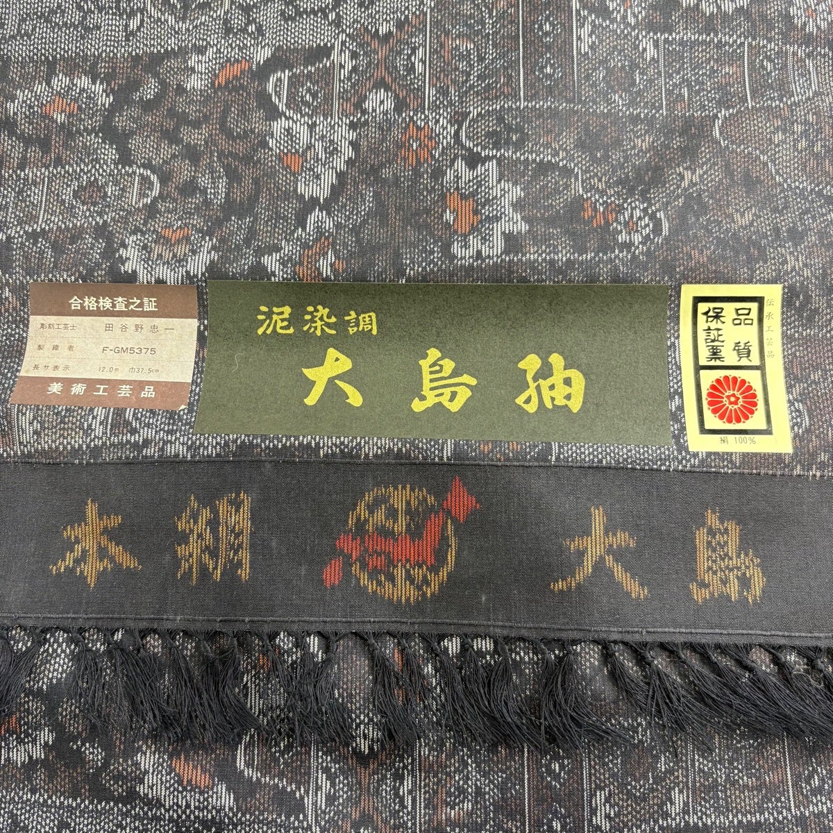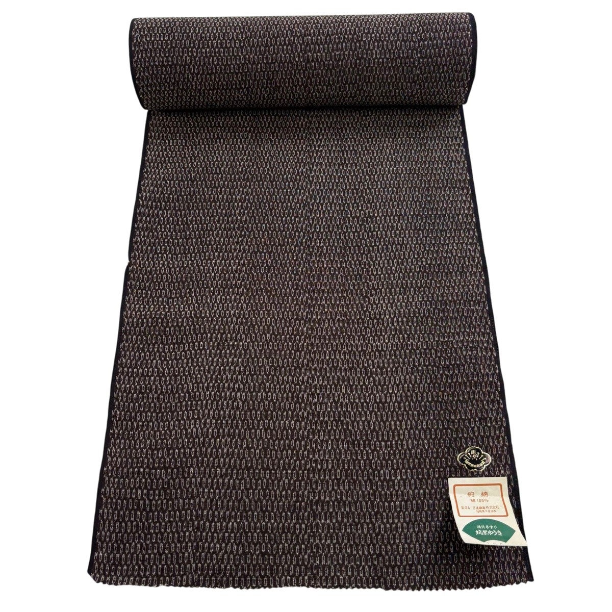 反物 秀品 紬 証紙 草花 幾何学 焦茶色 正絹