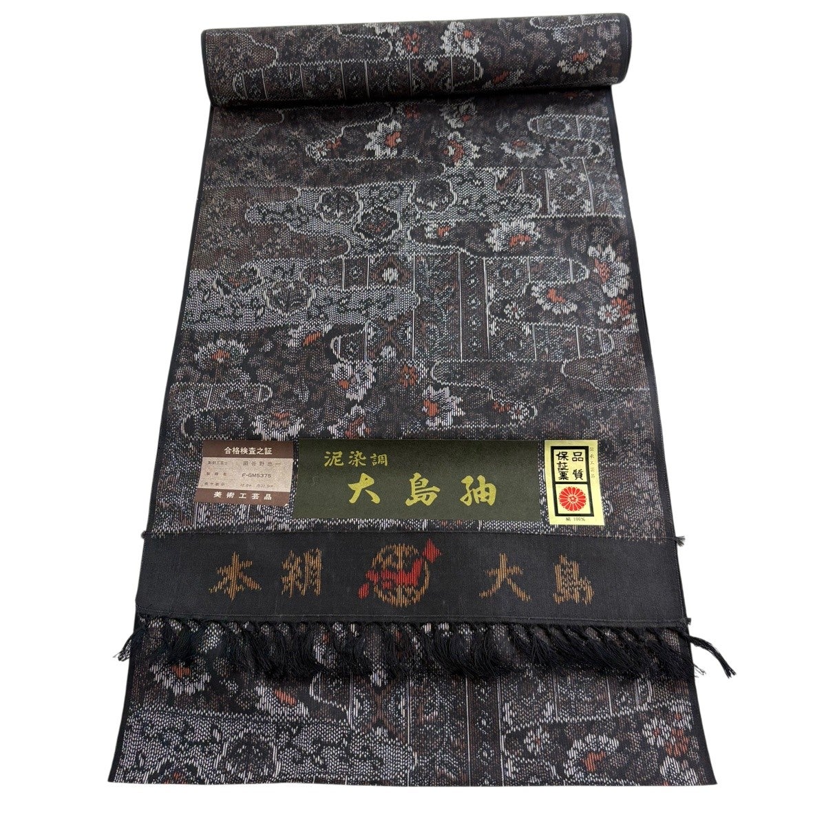 反物 秀品 紬 泥染 ヱ霞 草花 焦茶色 正絹