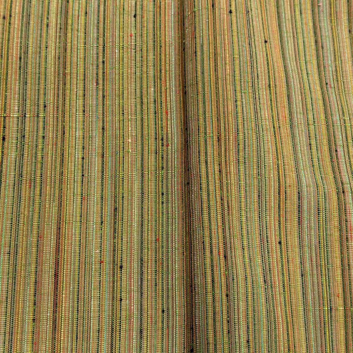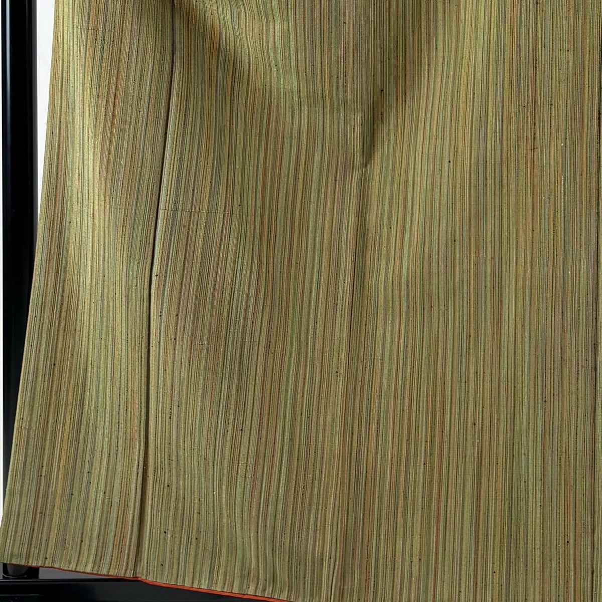 紬 身丈158.5cm 裄丈64cm M 単衣 燕 縦縞 抹茶色 正絹 秀品