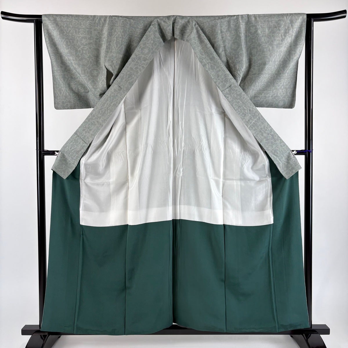 紬 身丈158.5cm 裄丈63.5cm S 袷 草花 亀甲絣 灰緑 正絹 秀品