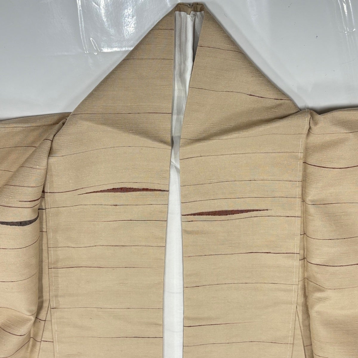 紬 身丈160.5cm 裄丈67.5cm L 薄物 夏紬 縦縞 薄茶色 正絹 名品