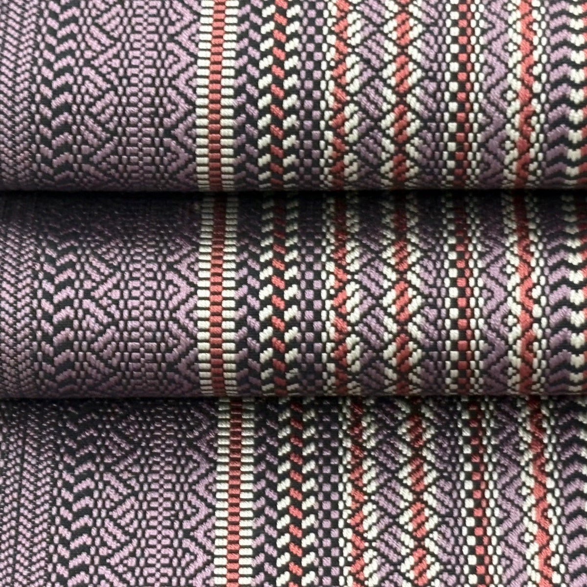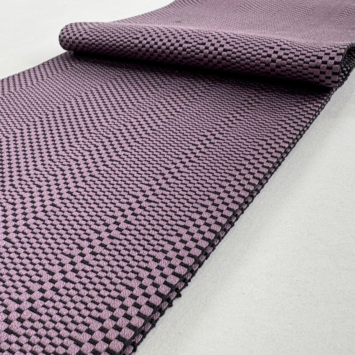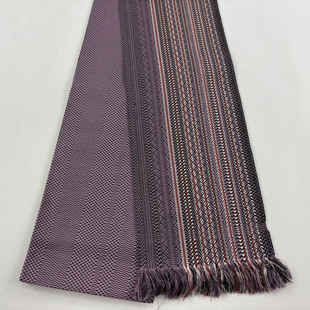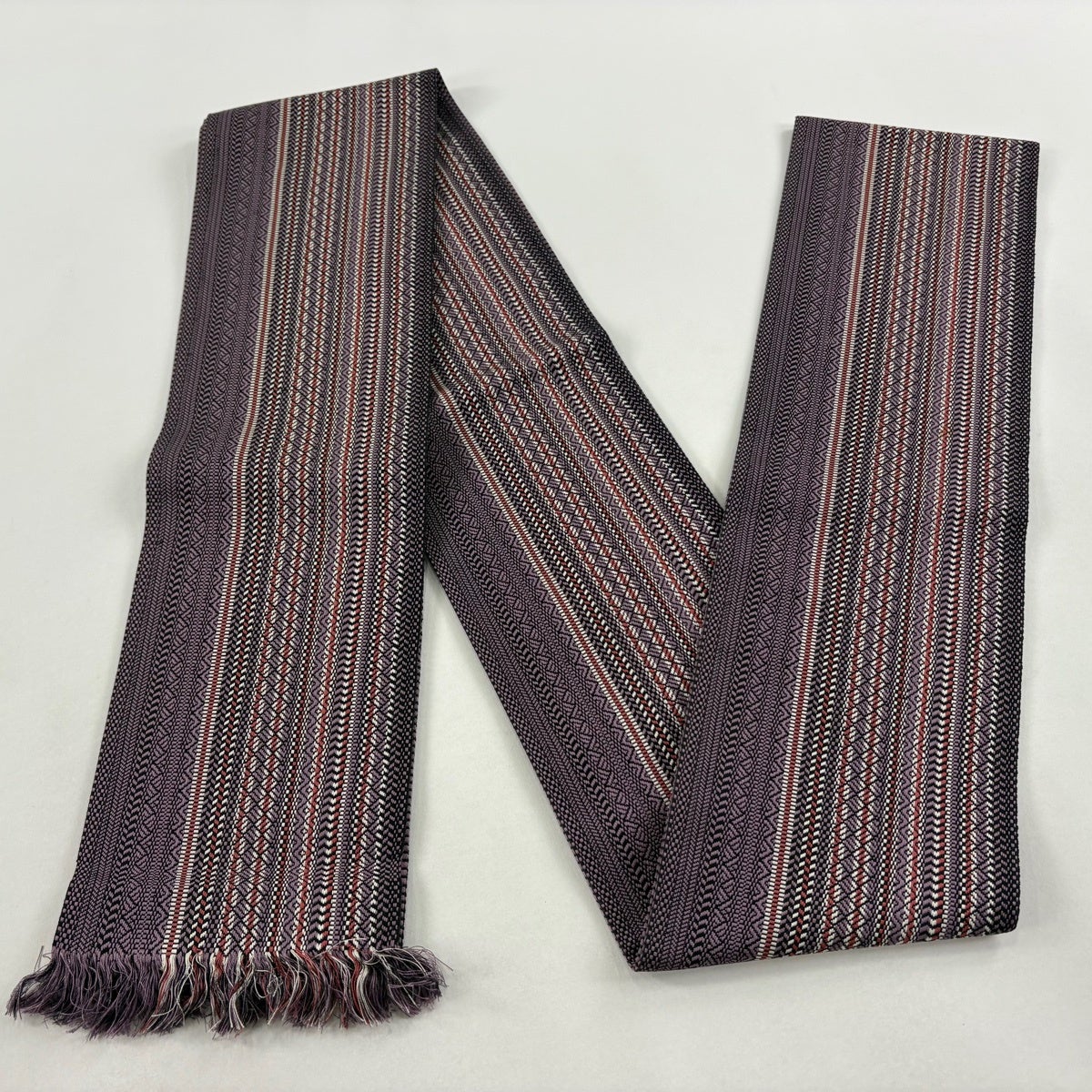 【美品】半幅帯 秀品 縞 菱 灰紫 正絹
