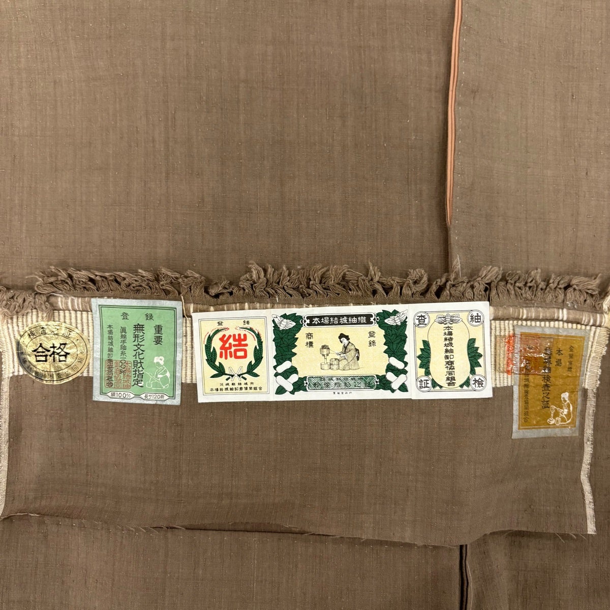 結城紬 身丈156cm 裄丈63cm S 袷 本場結城紬 井上商事 証紙あり 椿 亀甲絣 焦茶色 正絹 逸品