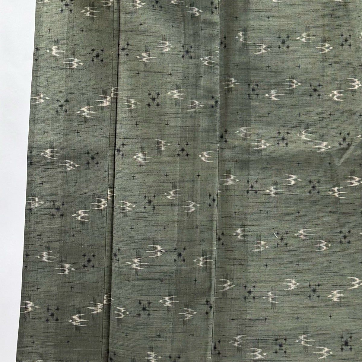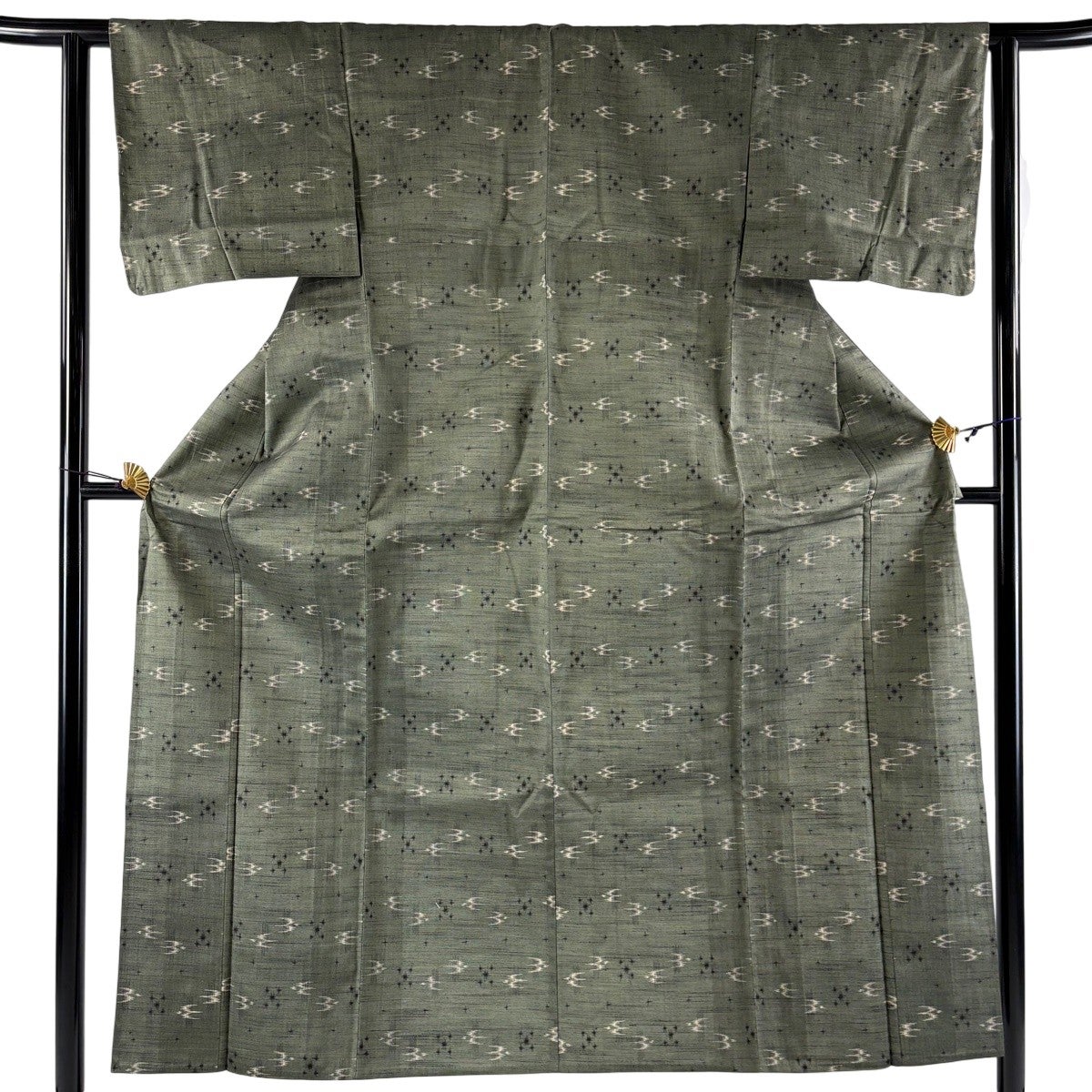 紬 身丈153cm 裄丈61.5cm S 単衣 つばめ 絣柄 灰緑 正絹 名品