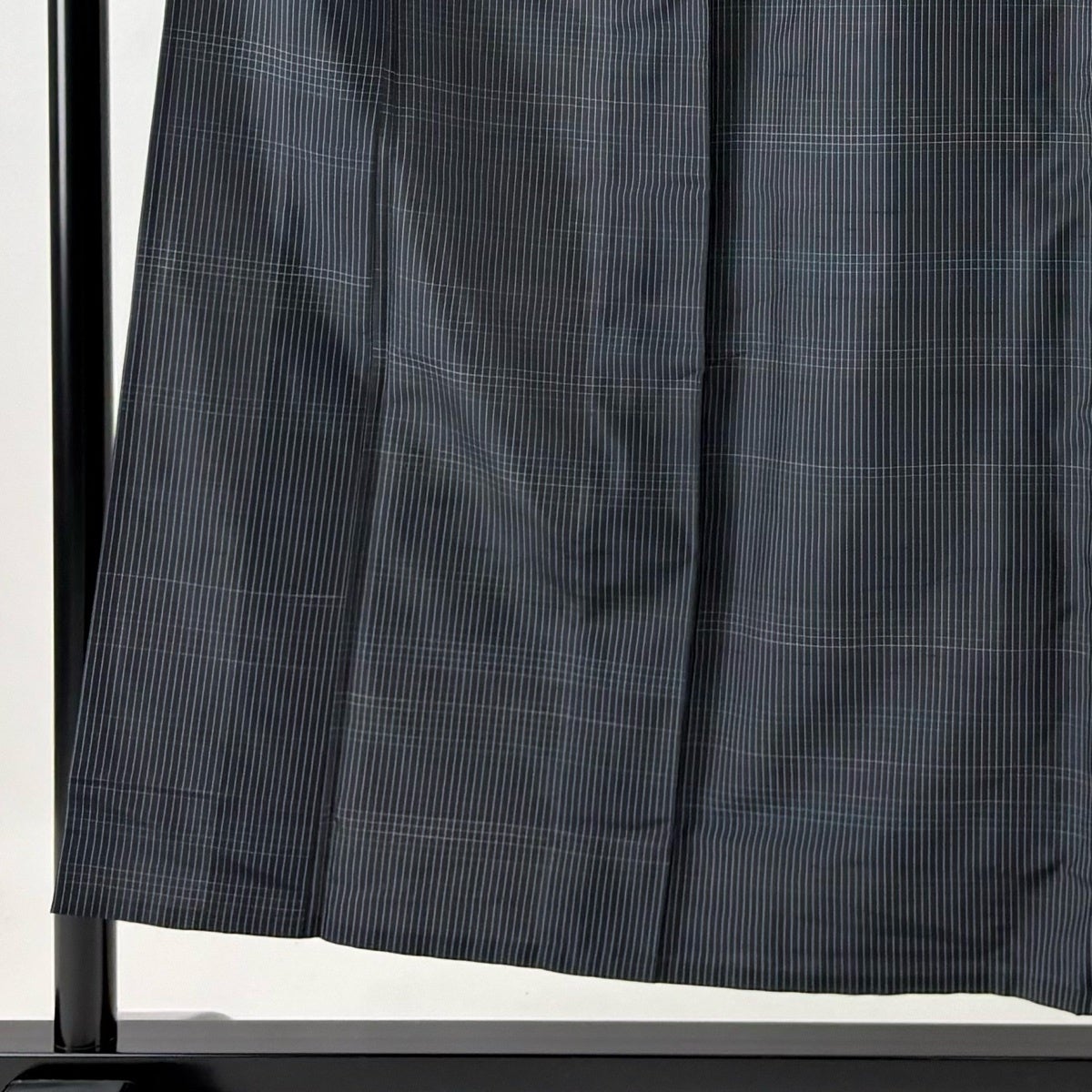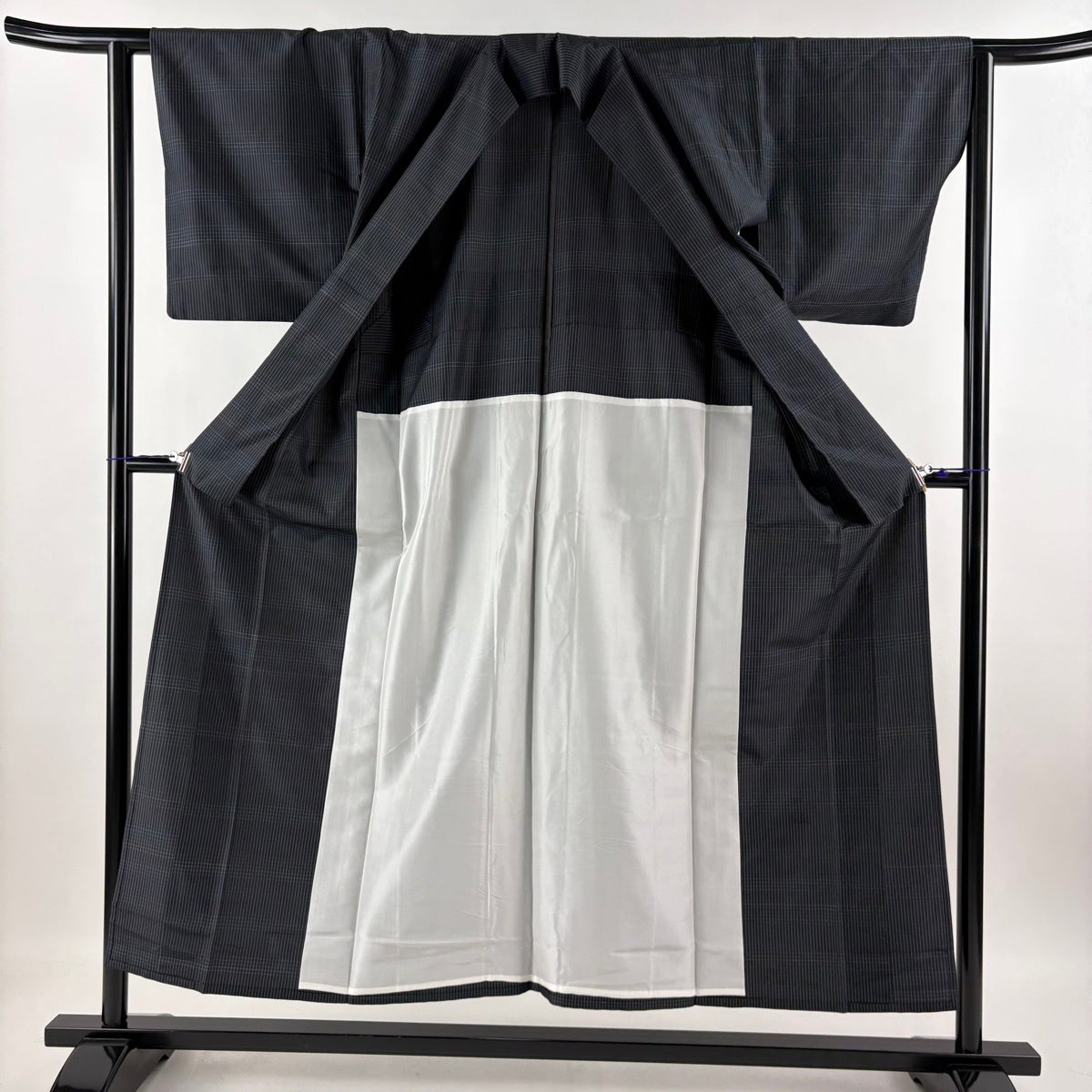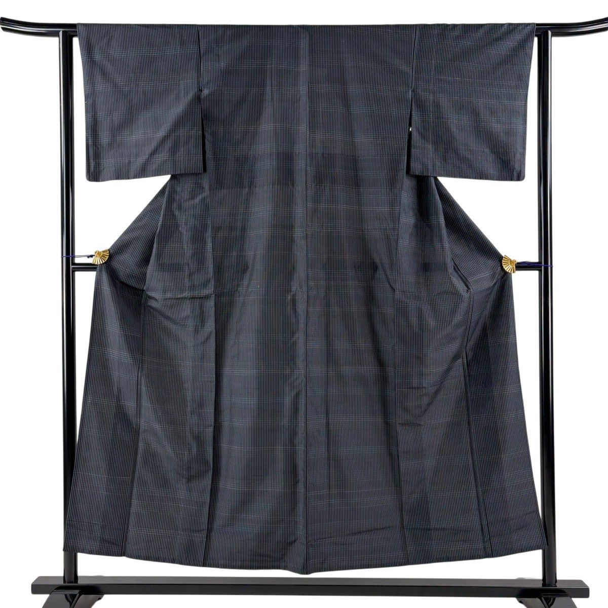 【美品】 紬 身丈152.5cm 裄丈62cm S 単衣 格子 黒 正絹 秀品