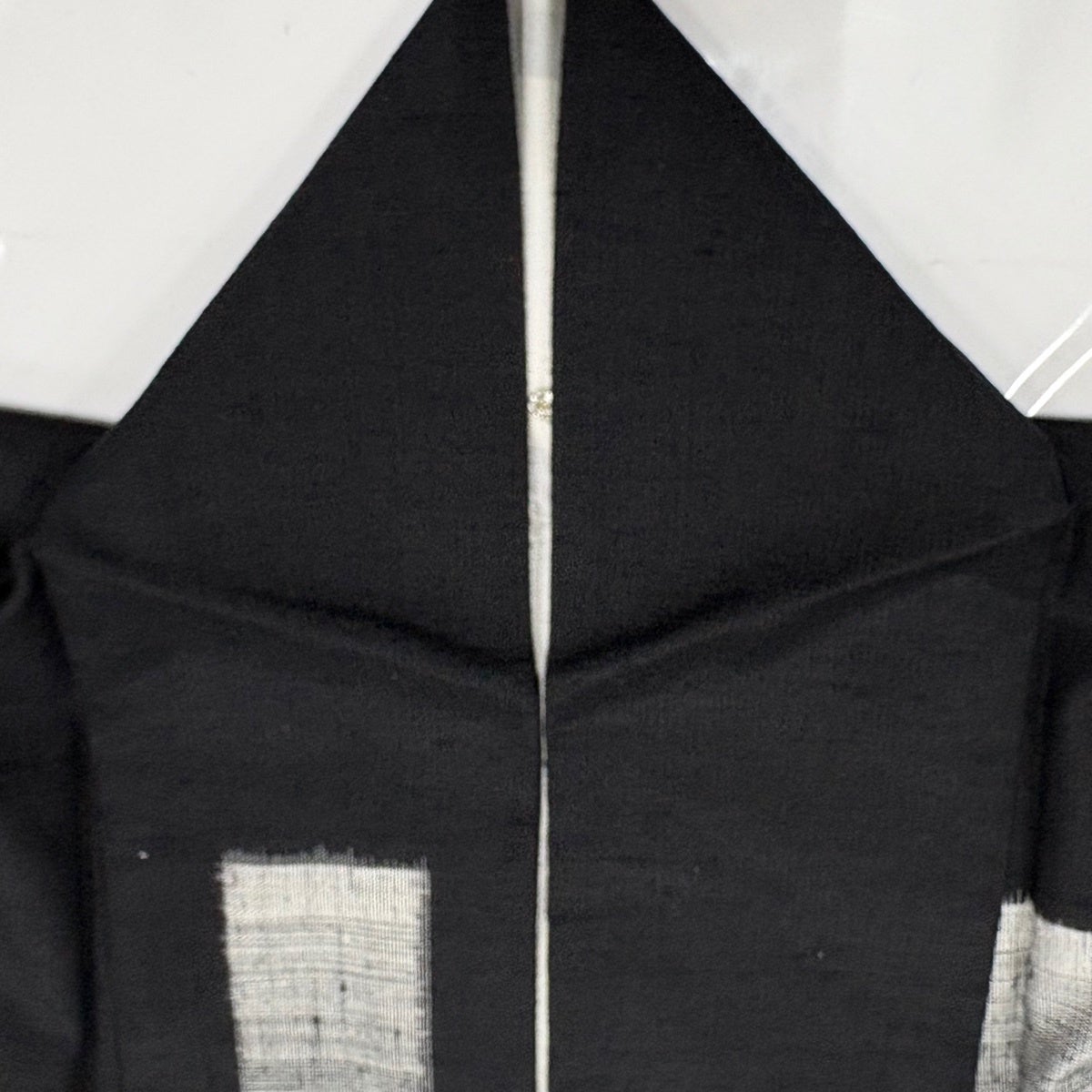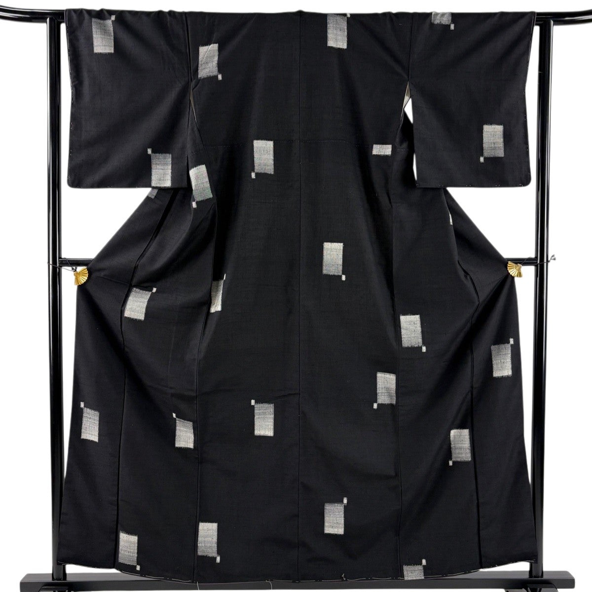 紬 身丈165cm 裄丈63.5cm S 単衣 変わり市松 絣柄 黒 正絹 名品