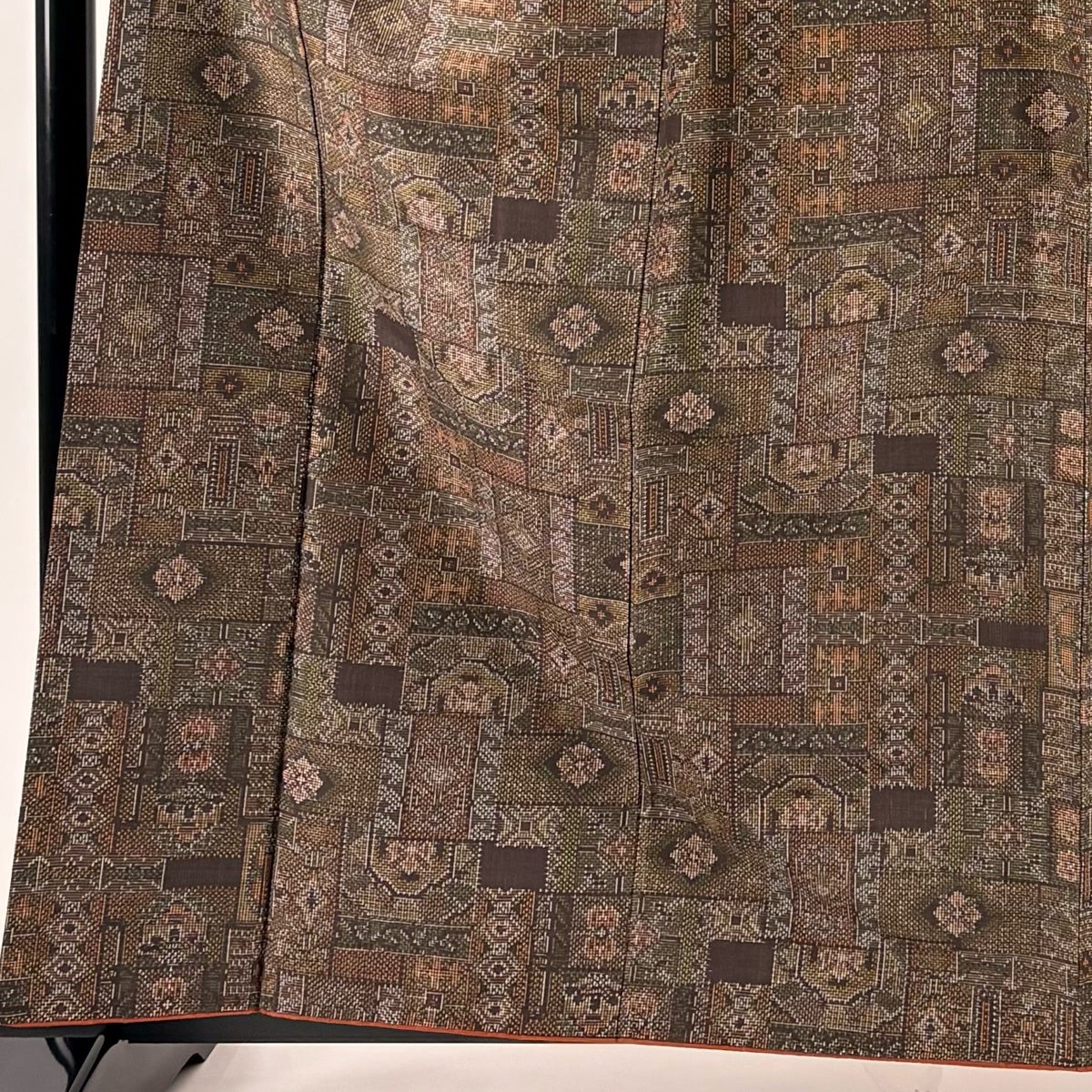 紬 身丈165cm 裄丈65.5cm M 薄物 夏紬 幾何学 焦茶色 正絹 秀品