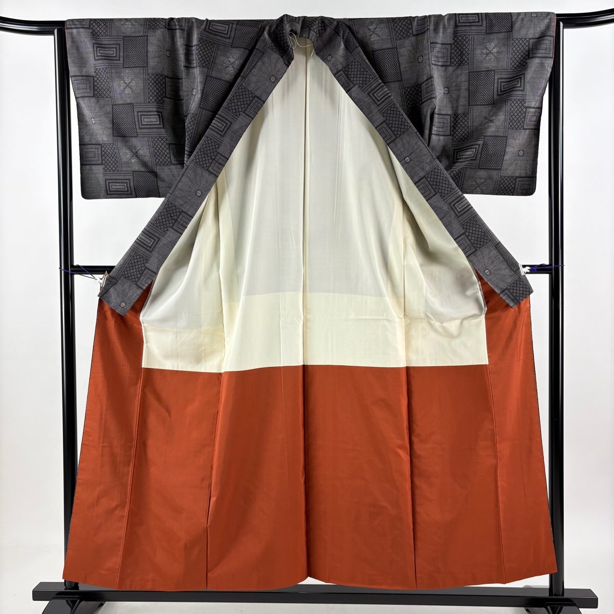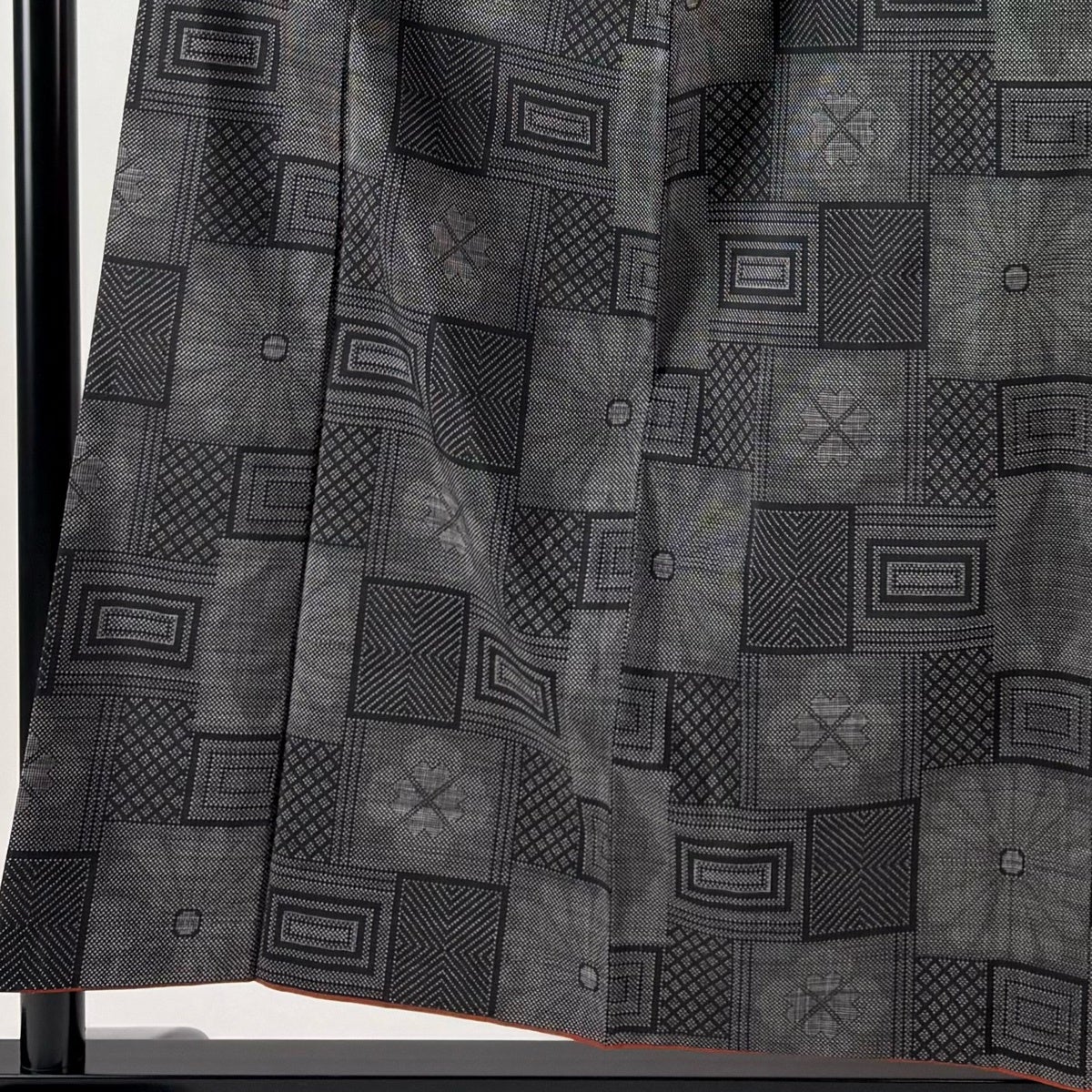 【美品】 紬 身丈158.5cm 裄丈62.5cm S 袷 幾何学 黒 正絹 秀品