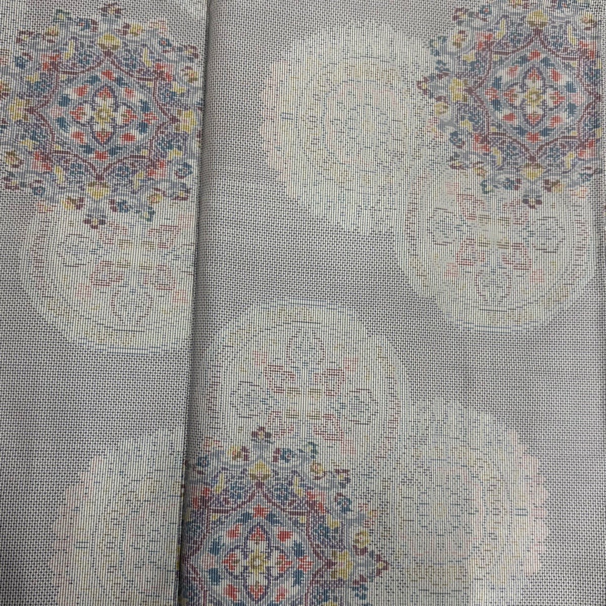 紬 身丈160cm 裄丈64.5cm M 単衣 草花 亀甲絣 灰色 正絹 秀品