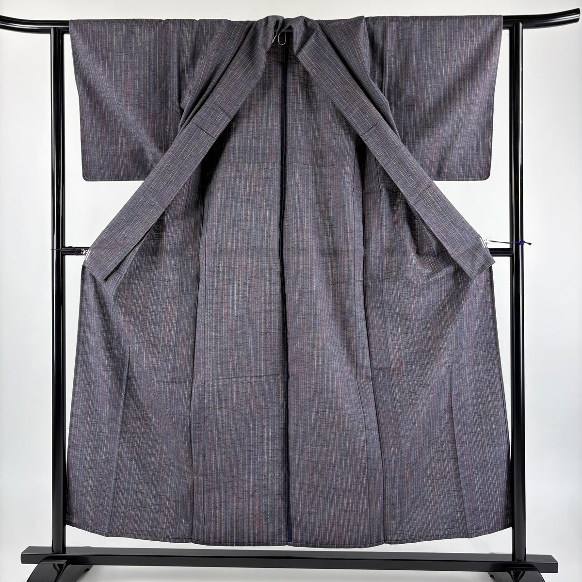 【美品】 紬 身丈155.5cm 裄丈61cm S 単衣 縦縞 灰紫 正絹 秀品
