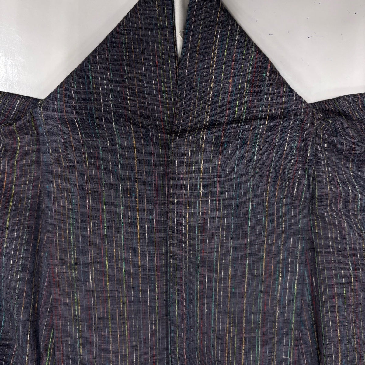【美品】 紬 身丈164.5cm 裄丈65.5cm M 単衣 縦縞 灰茶 正絹 秀品