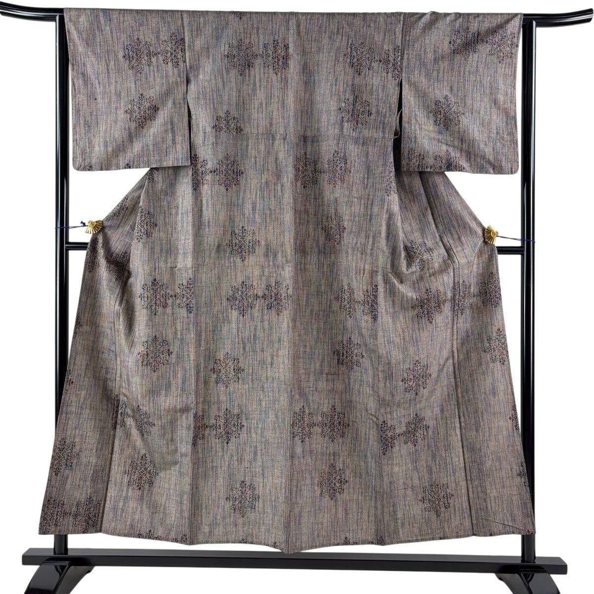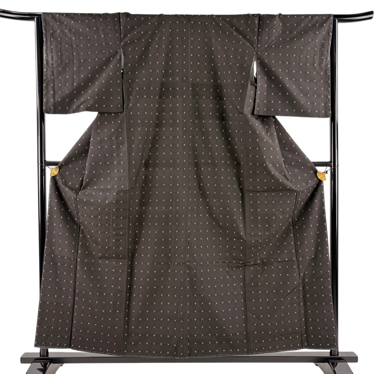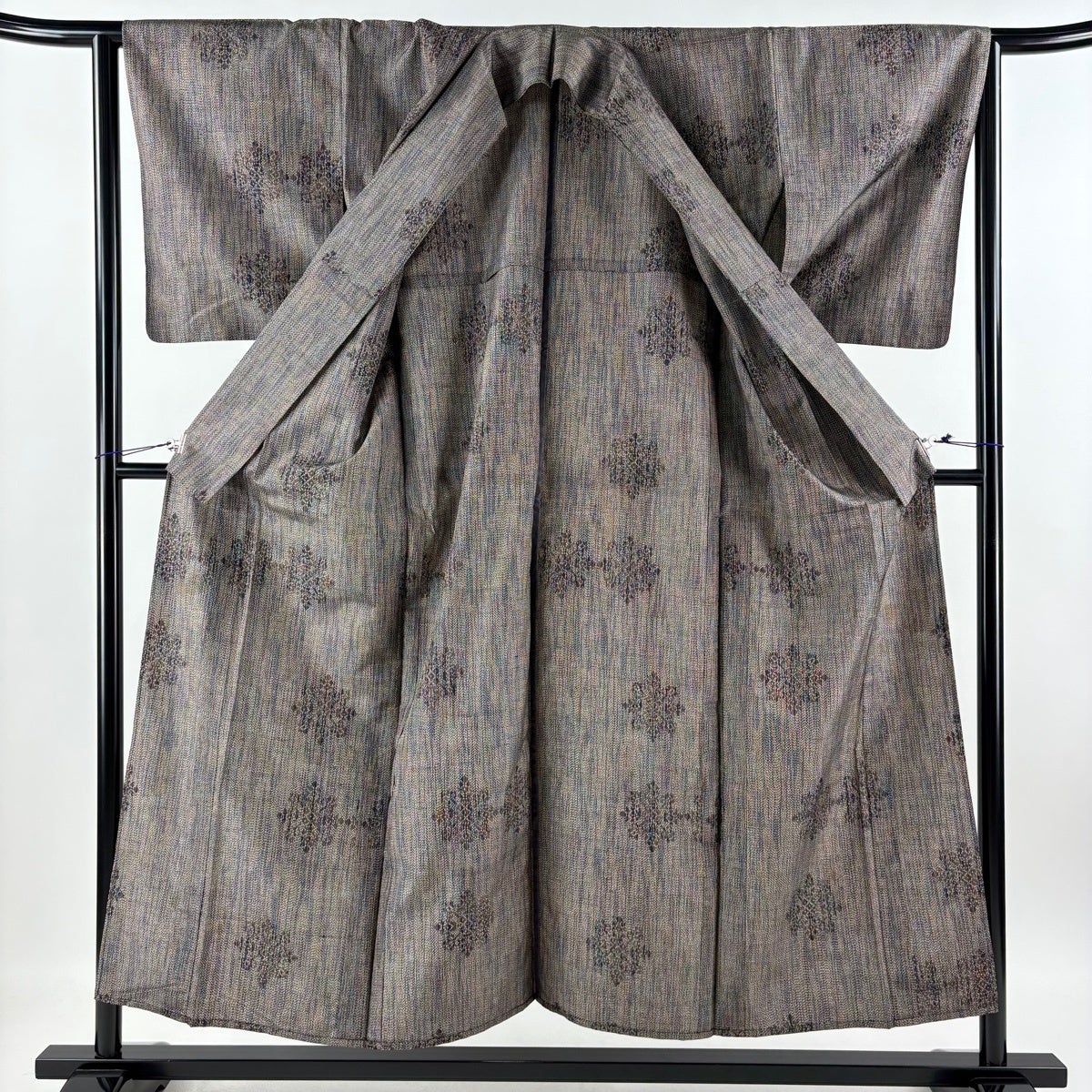 紬 身丈157.5cm 裄丈60.5cm S 薄物 夏紬 幾何学模様 灰茶 正絹 秀品