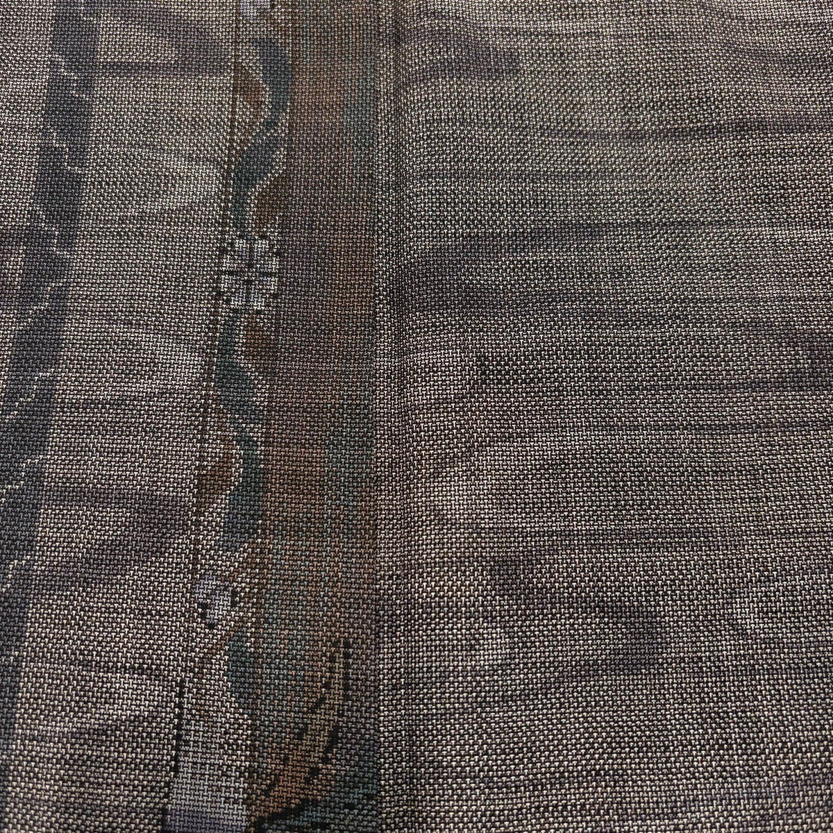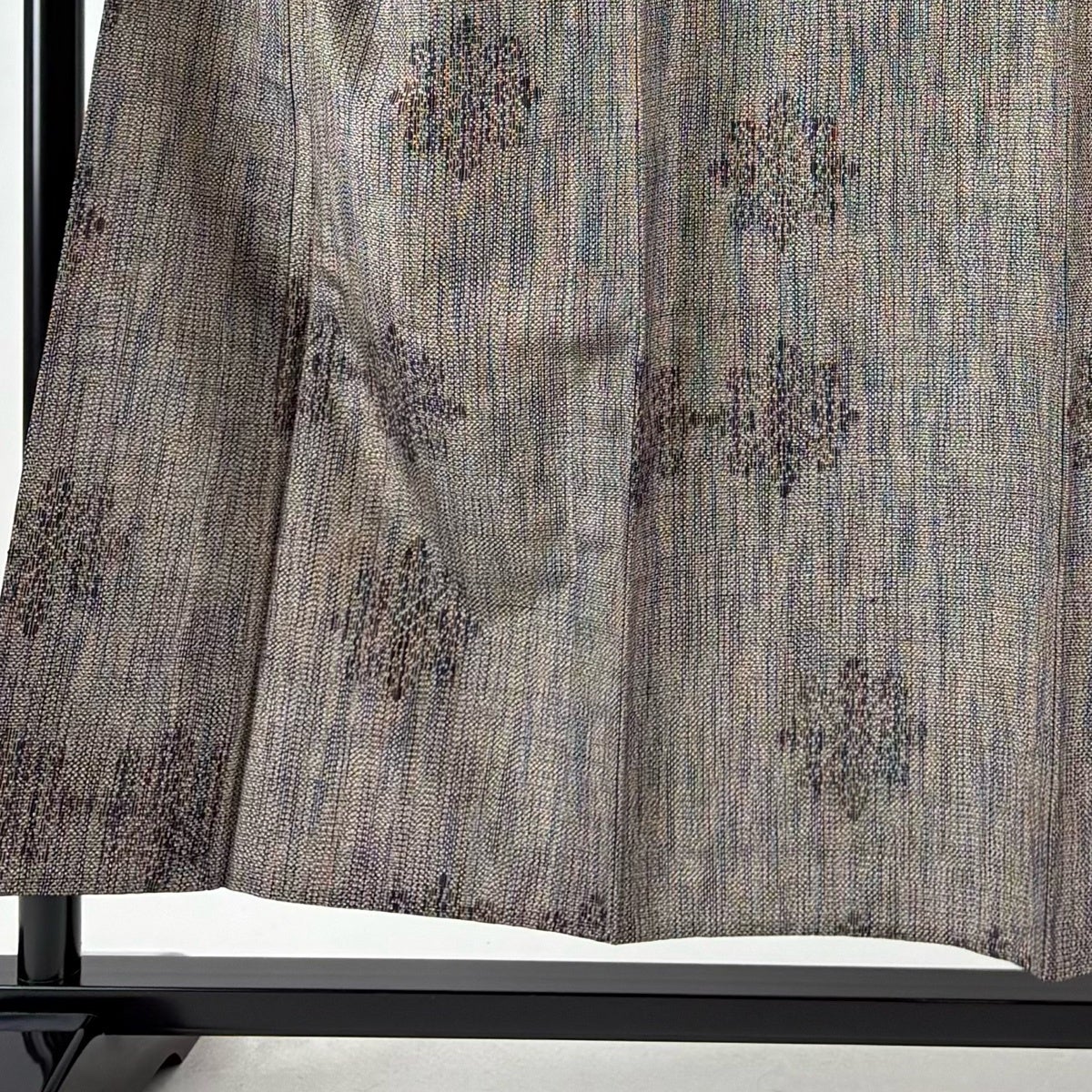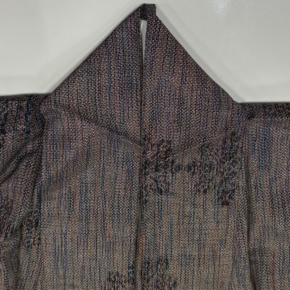 紬 身丈157.5cm 裄丈60.5cm S 薄物 夏紬 幾何学模様 灰茶 正絹 秀品