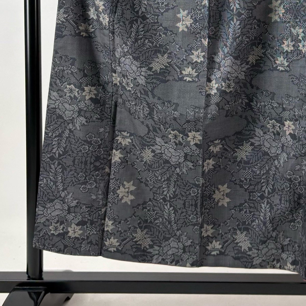 【美品】 紬 身丈155cm 裄丈62.5cm S 袷 牡丹 雲文 黒灰 正絹 優品