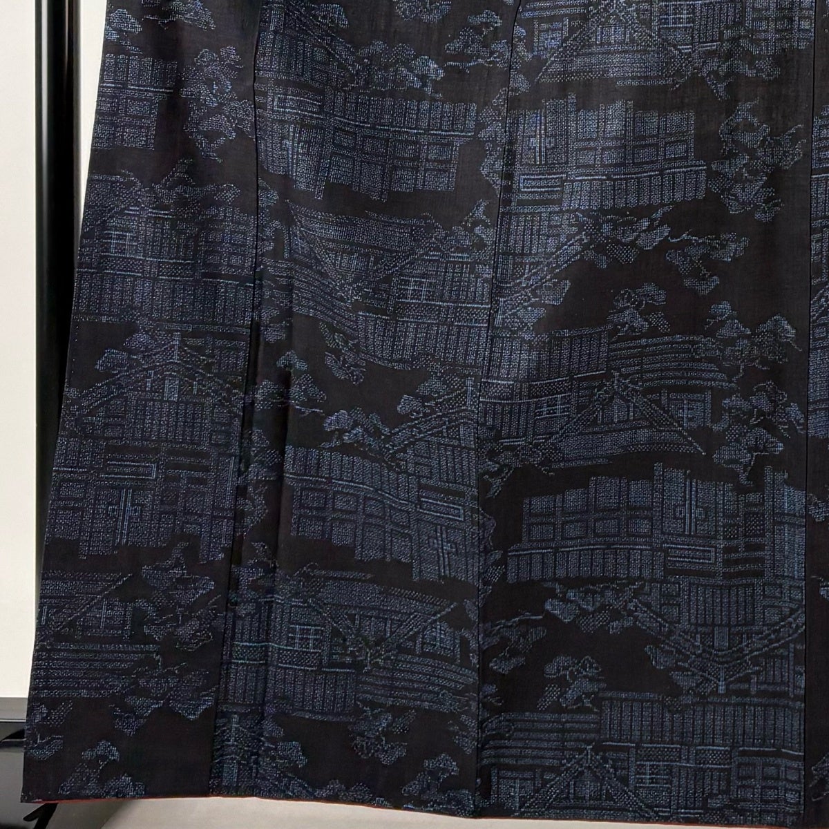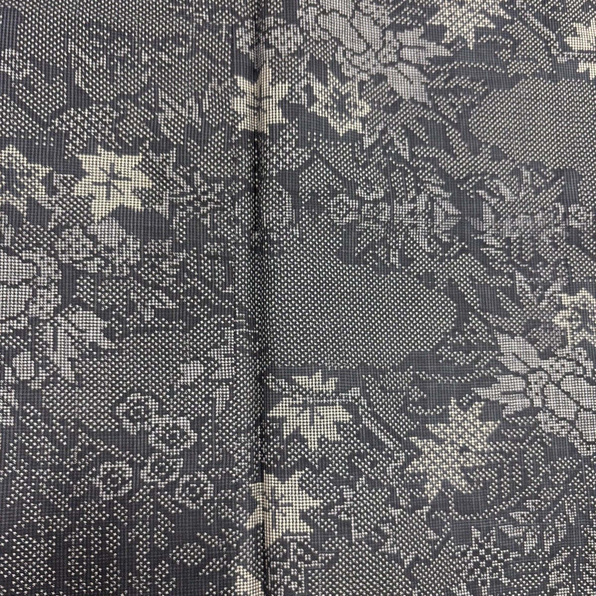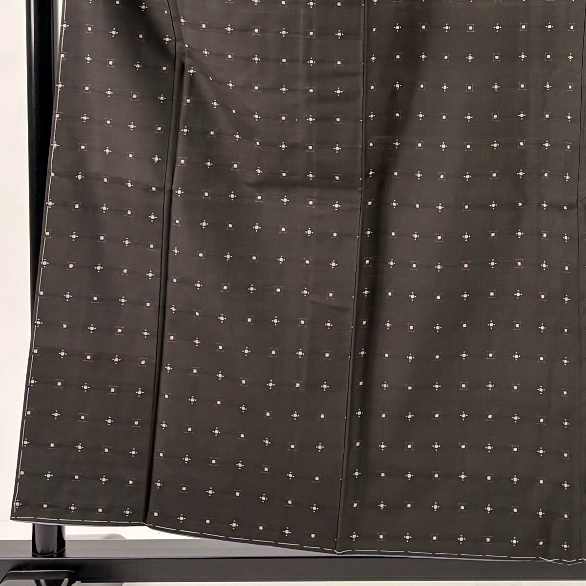 【美品】 紬 身丈158.5cm 裄丈65cm M 袷 幾何学模様 墨色 正絹 秀品