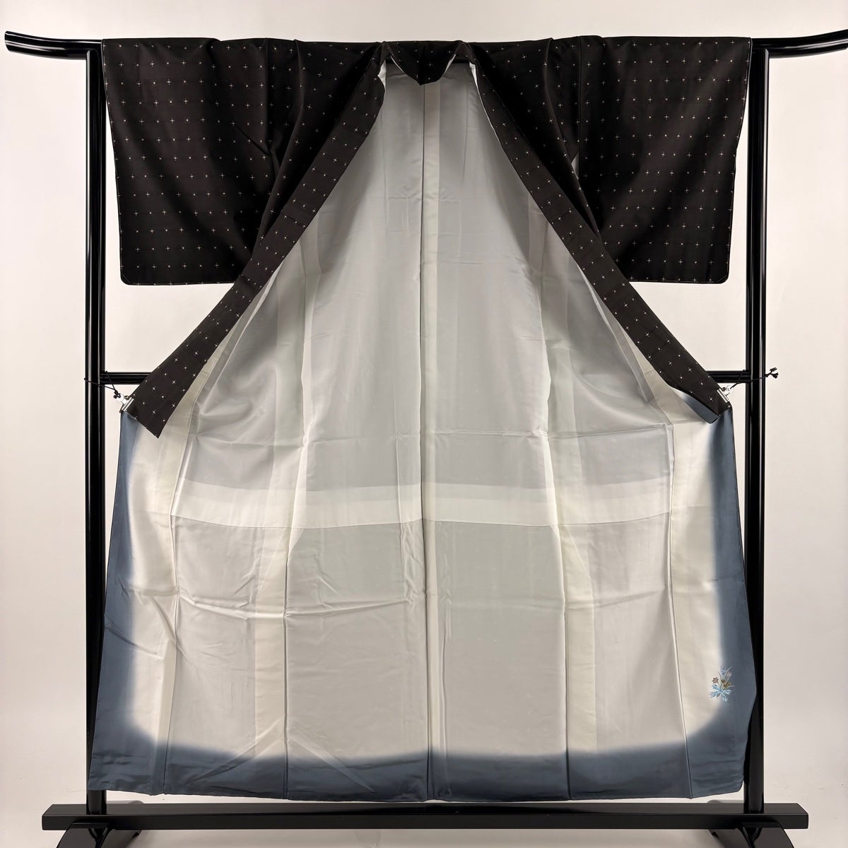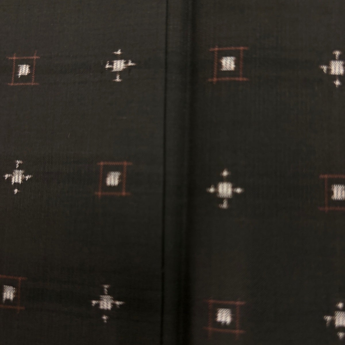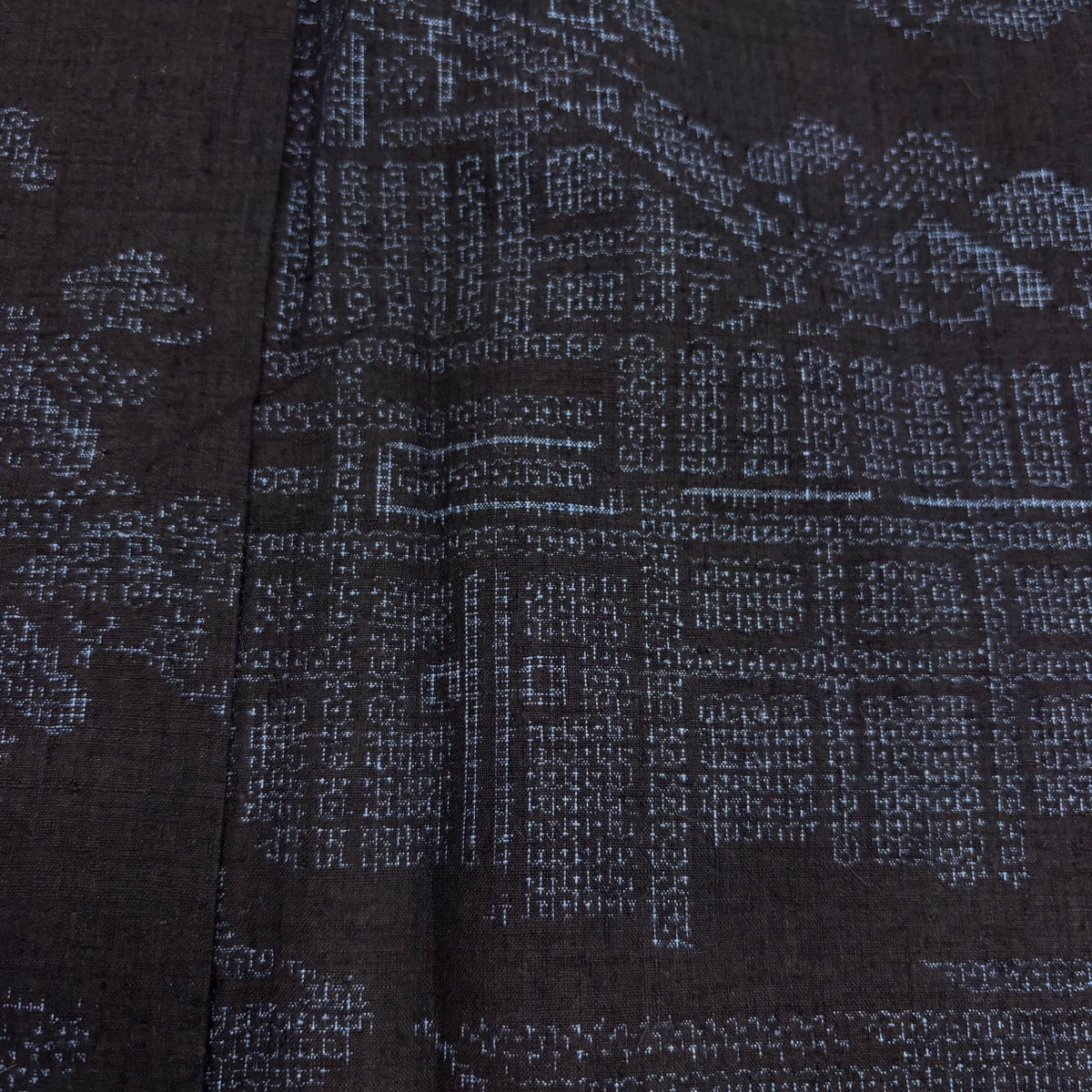 【美品】 紬 身丈158.5cm 裄丈65cm M 袷 幾何学模様 墨色 正絹 秀品