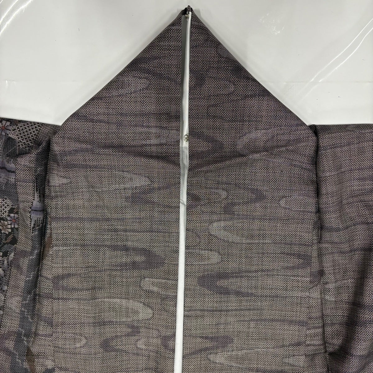 【美品】 紬 身丈160.5cm 裄丈65cm M 袷 草花 流水 灰紫 正絹 秀品