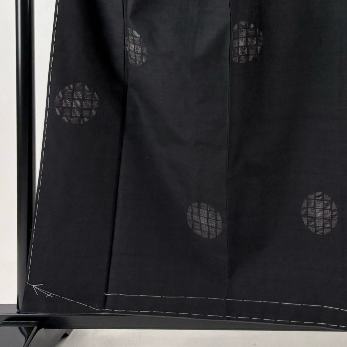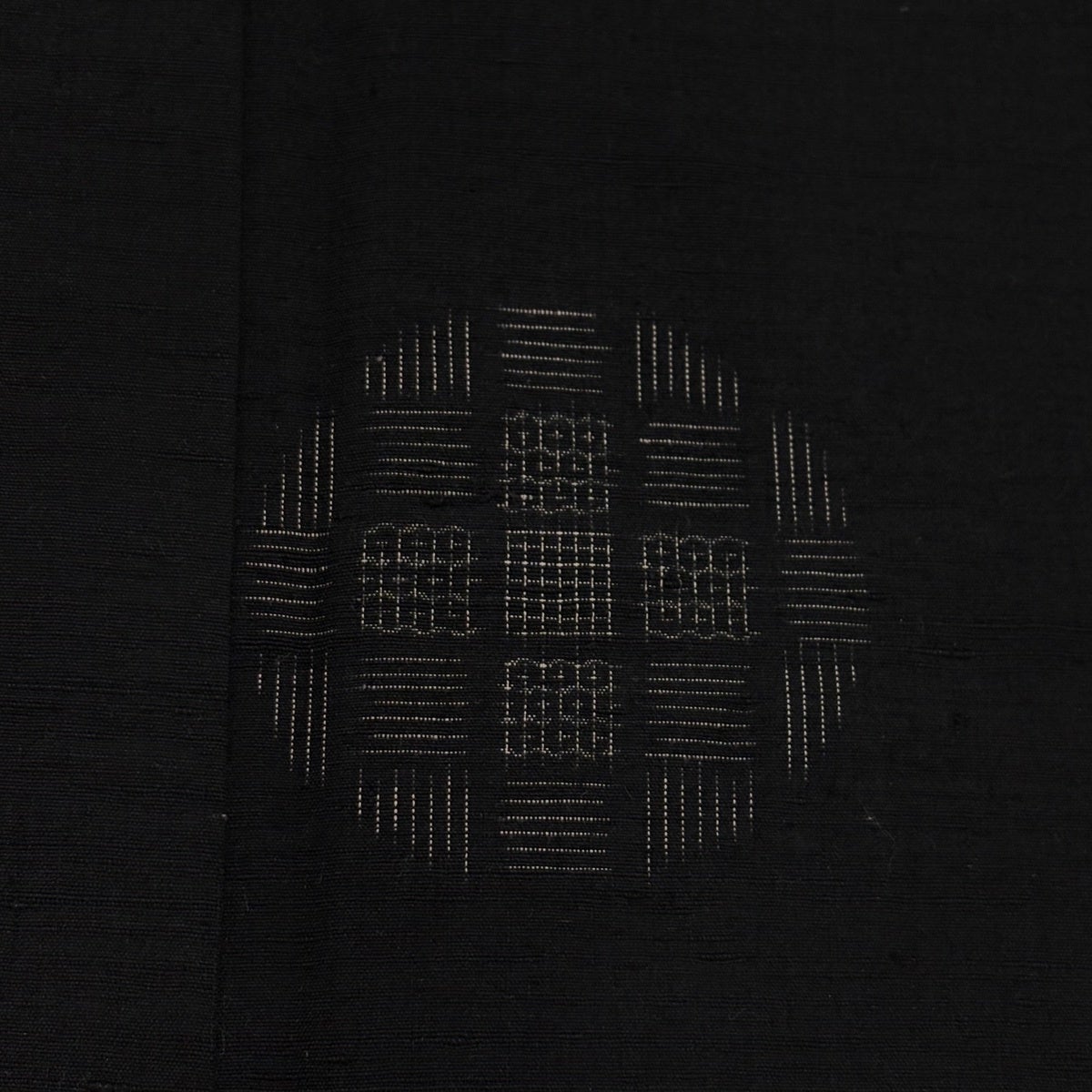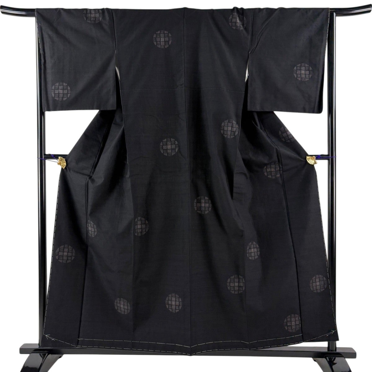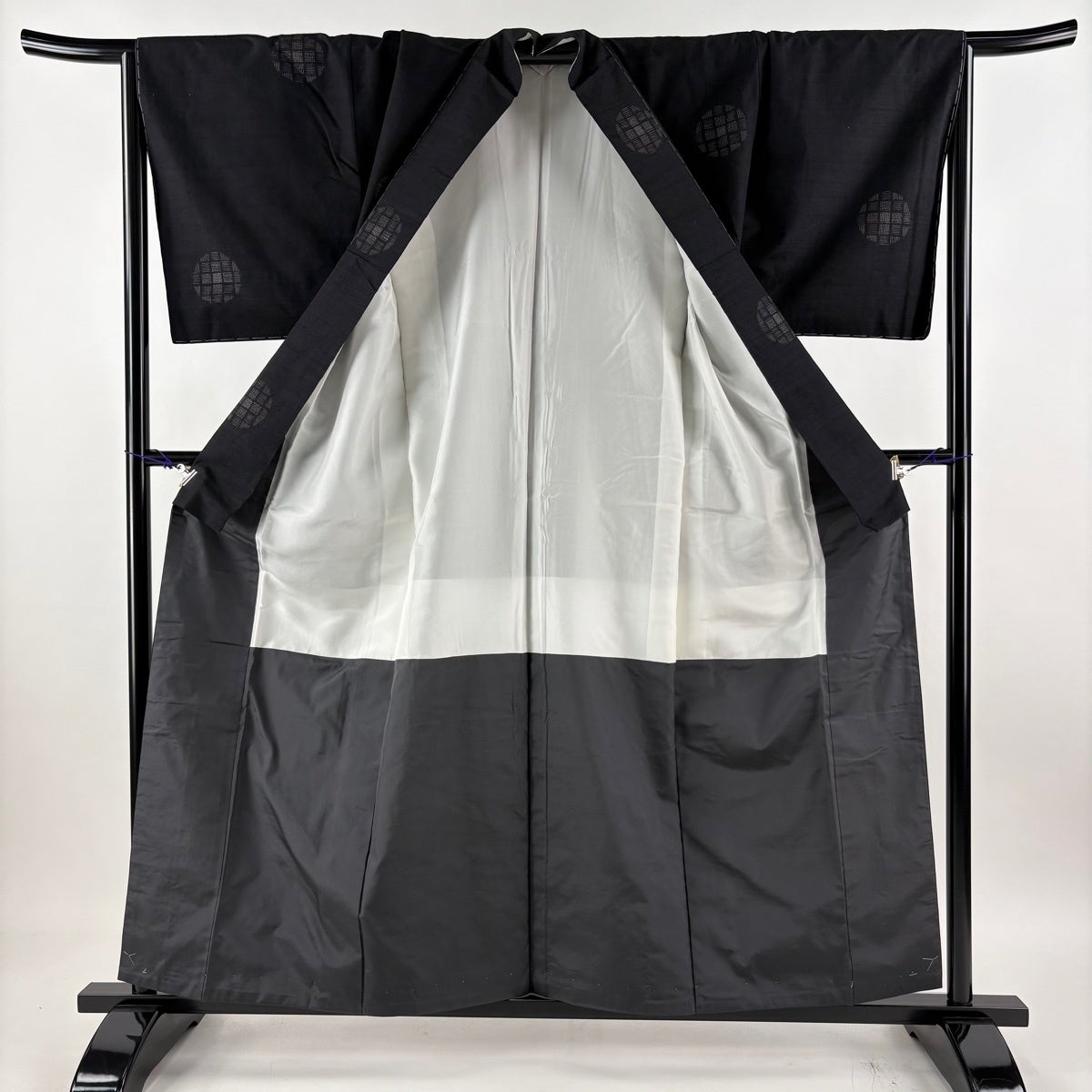 紬 身丈158.5cm 裄丈65cm M 袷 証紙あり 丸文 亀甲絣 黒 正絹 秀品