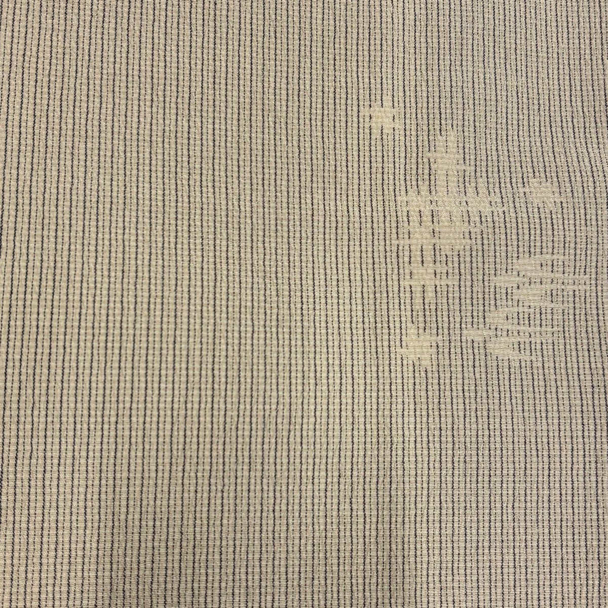 【美品】 紬 身丈156cm 裄丈64cm M 単衣 縦縞 幾何学模様 花織 薄茶色 正絹 逸品