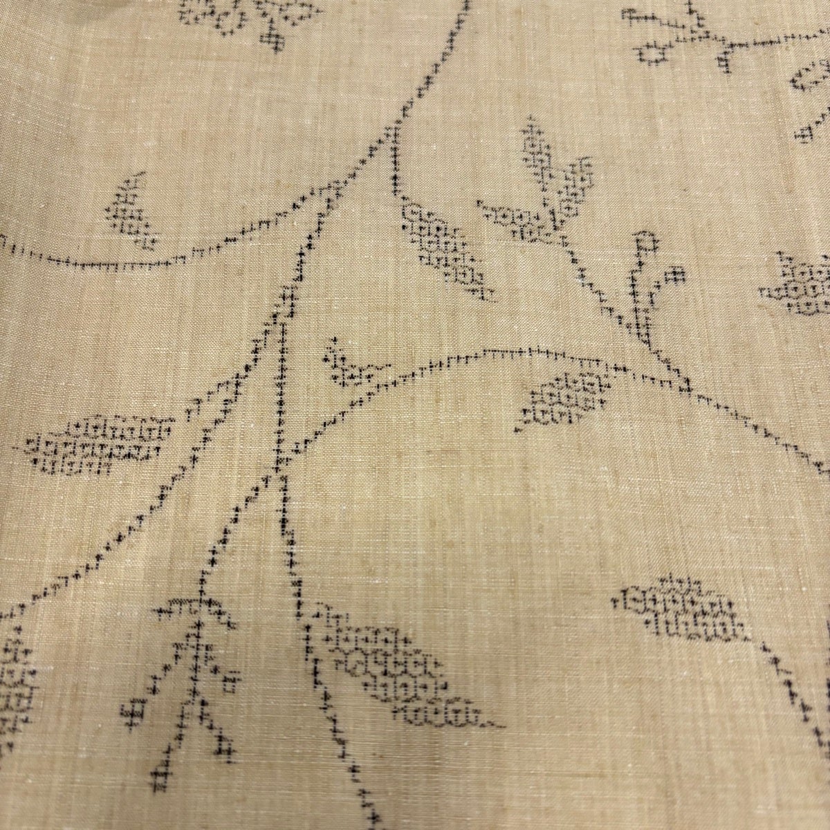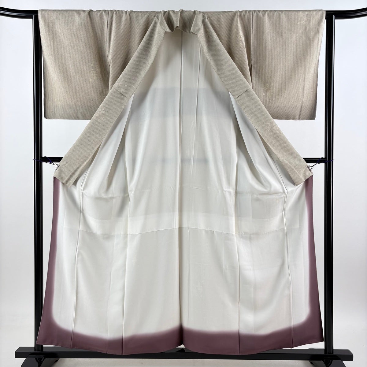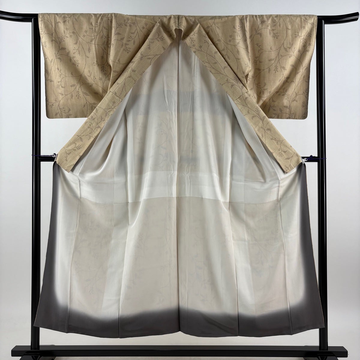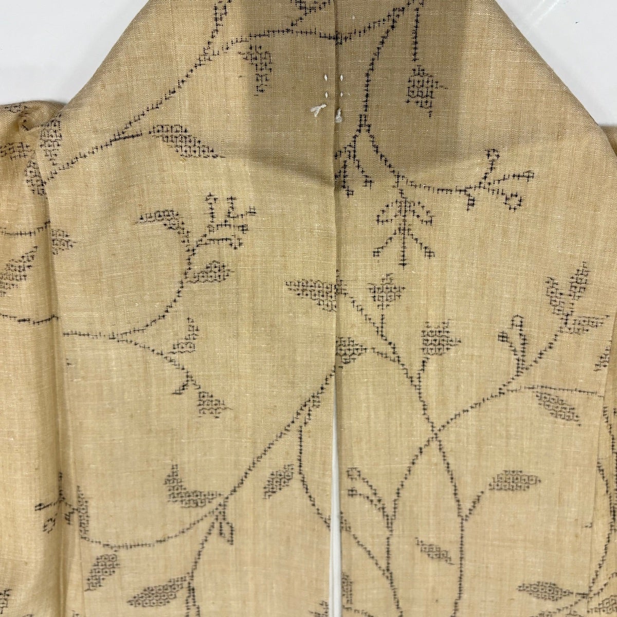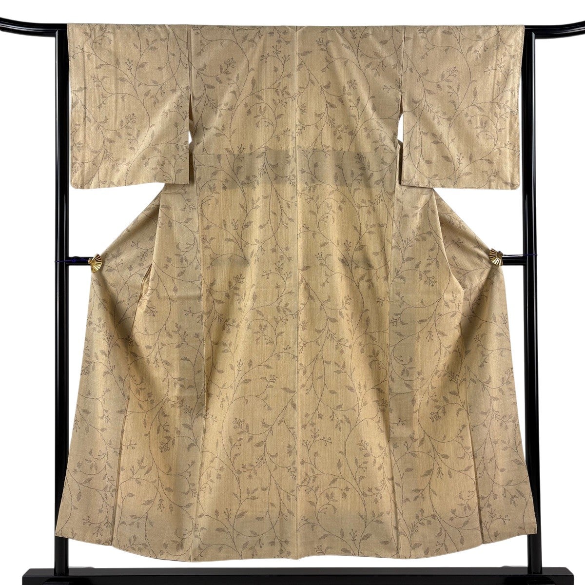 紬 身丈154.5cm 裄丈62.5cm S 薄物 夏紬 草花 幾何学模様 ベージュ 正絹 秀品