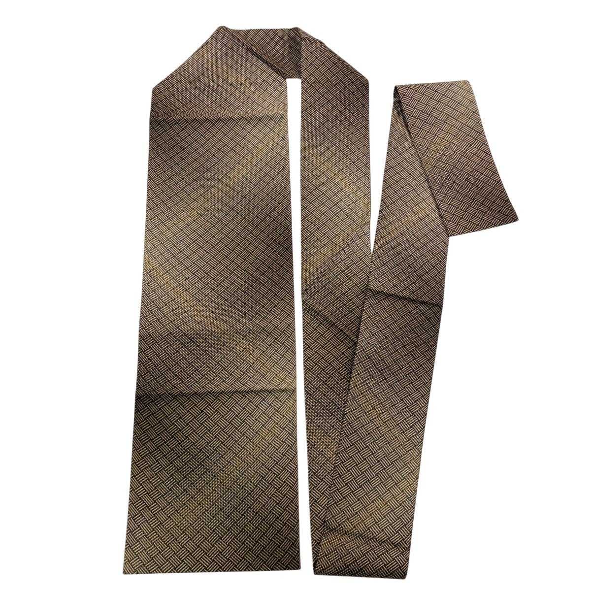 【美品】 紬 身丈151.5cm 裄丈62.5cm S 袷 バチ衿 幾何学模様 焦茶色 正絹 名品