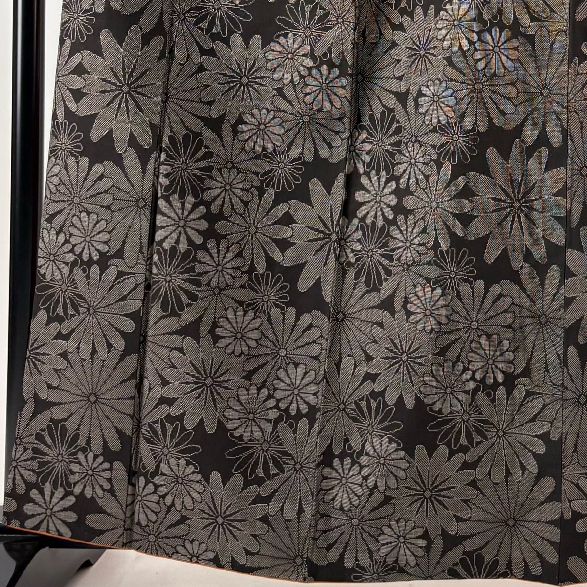 紬 身丈156.5cm 裄丈62cm S 袷 草花 墨色 正絹 優品