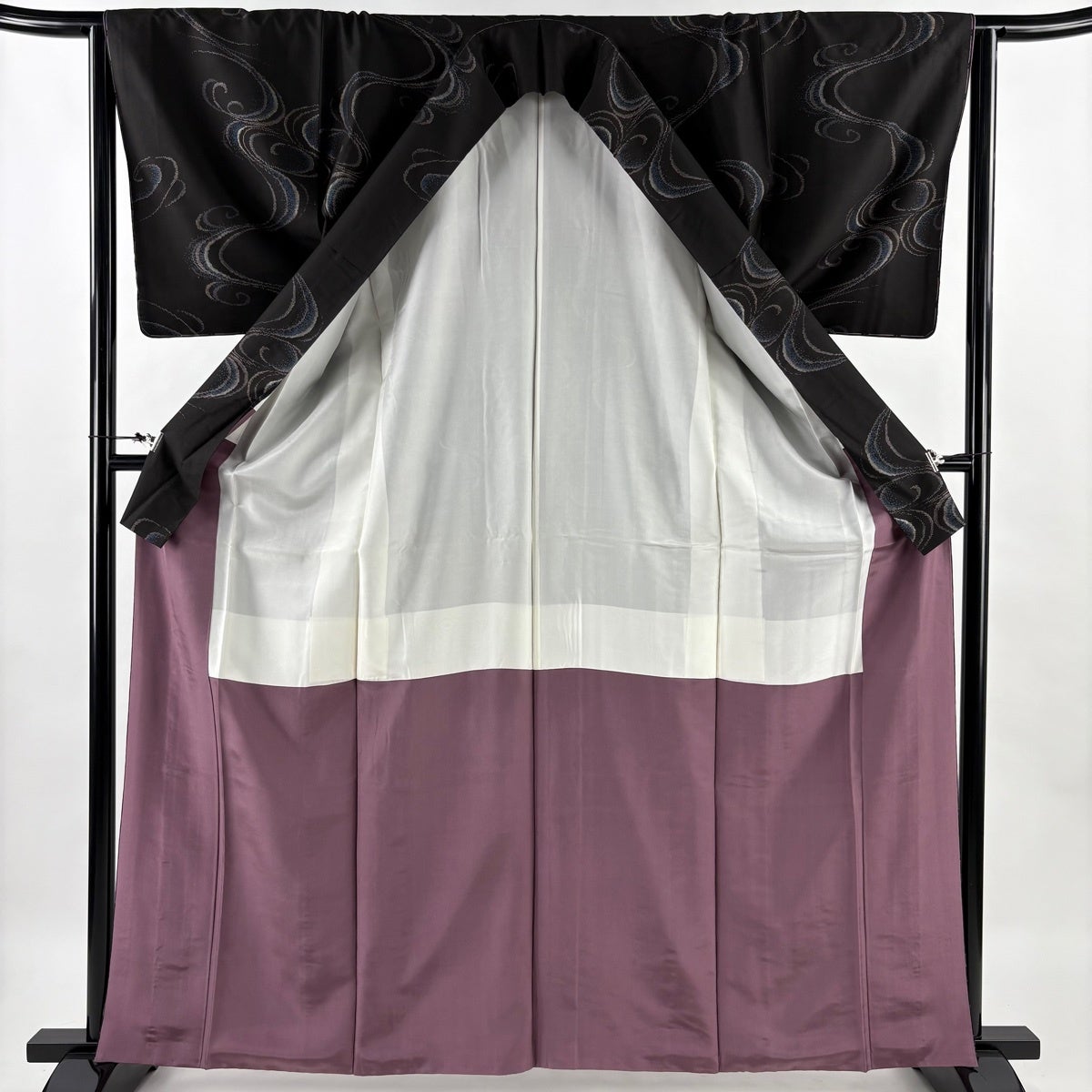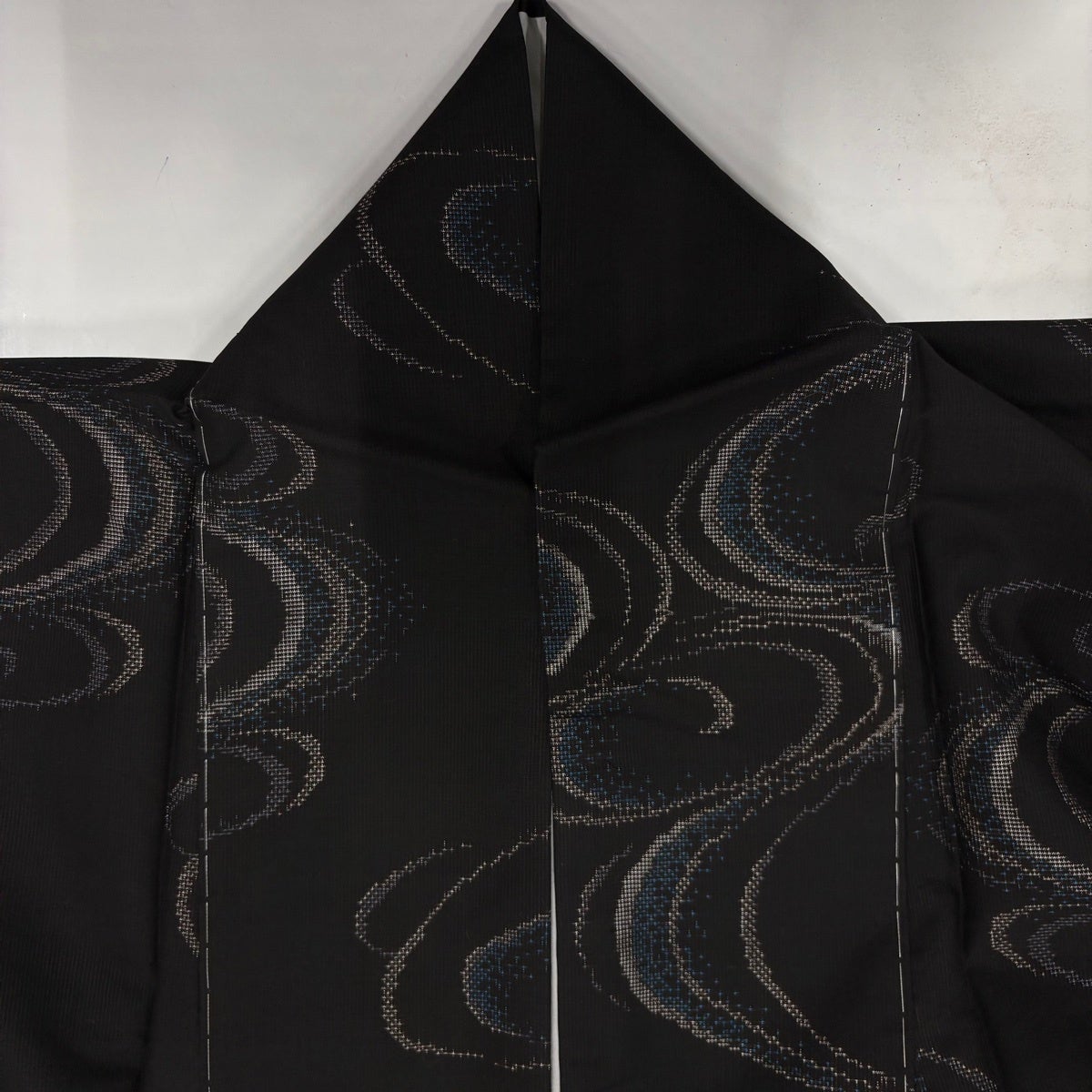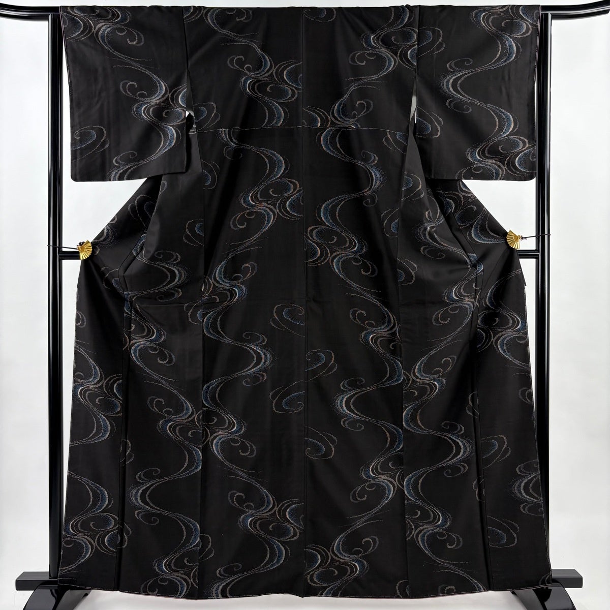 紬 身丈163.5cm 裄丈64.5cm M 袷 流水 墨色 正絹 秀品