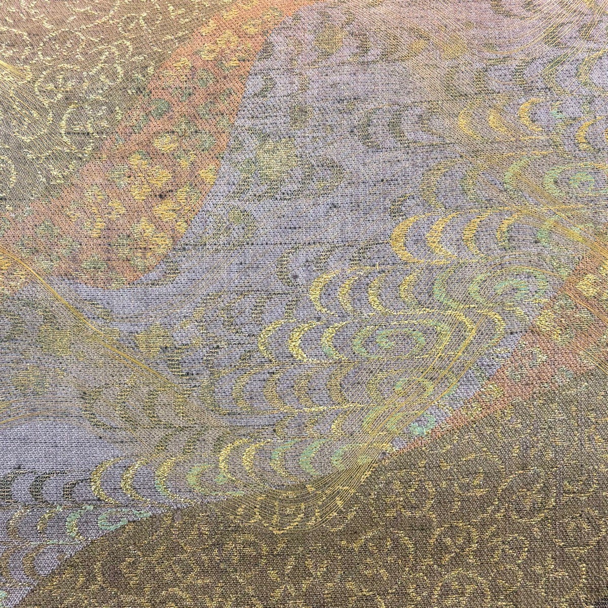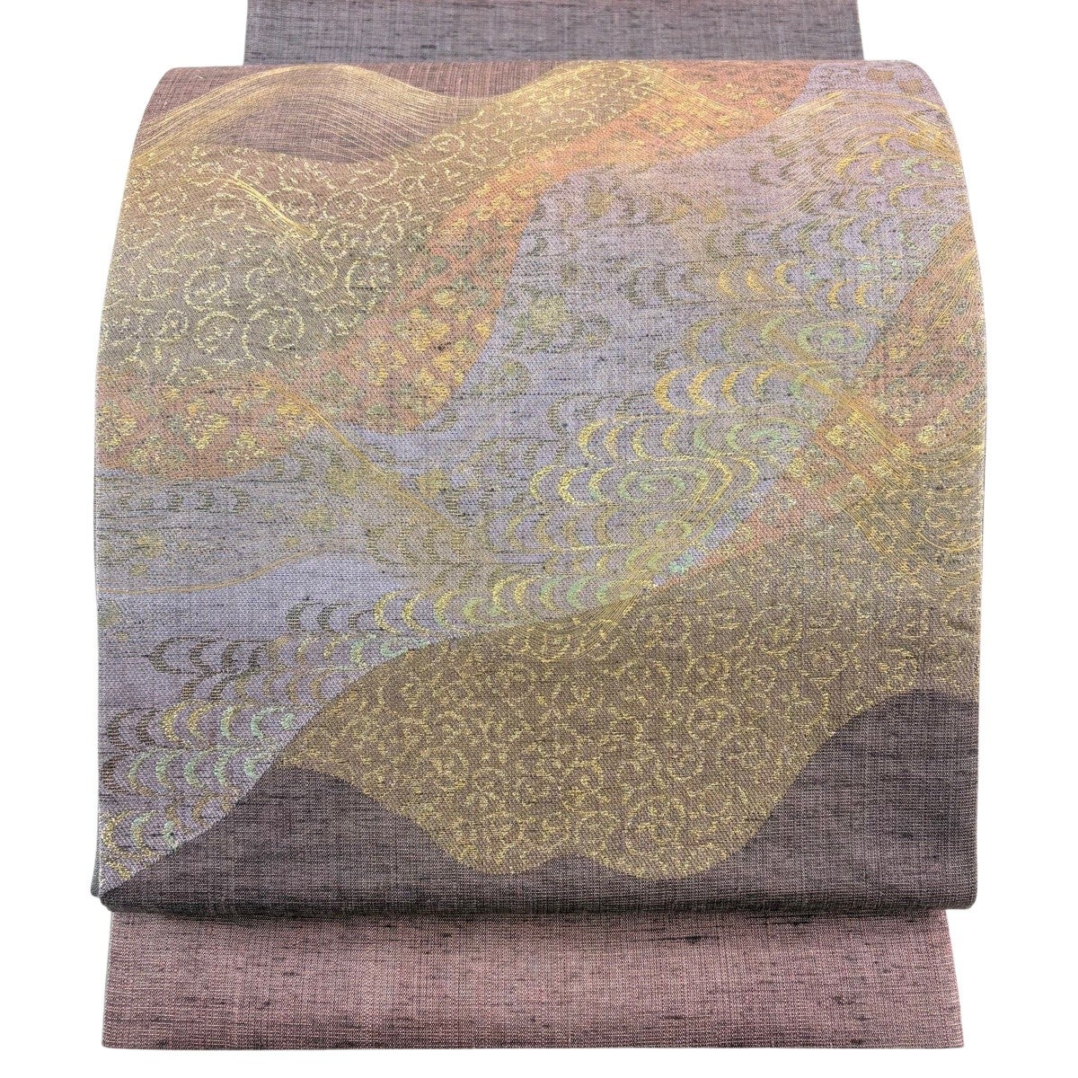 袋帯 名品 紬地 道長取 唐草 金糸 箔 灰紫 お太鼓柄 正絹