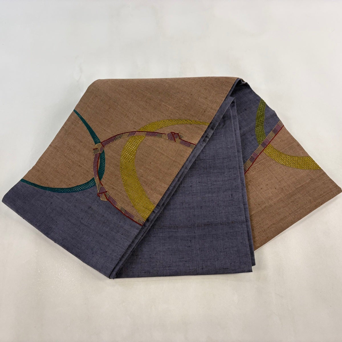 【美品】 袋帯 秀品 木屋太 落款あり 紬地 幾何学 焦茶色 六通 正絹