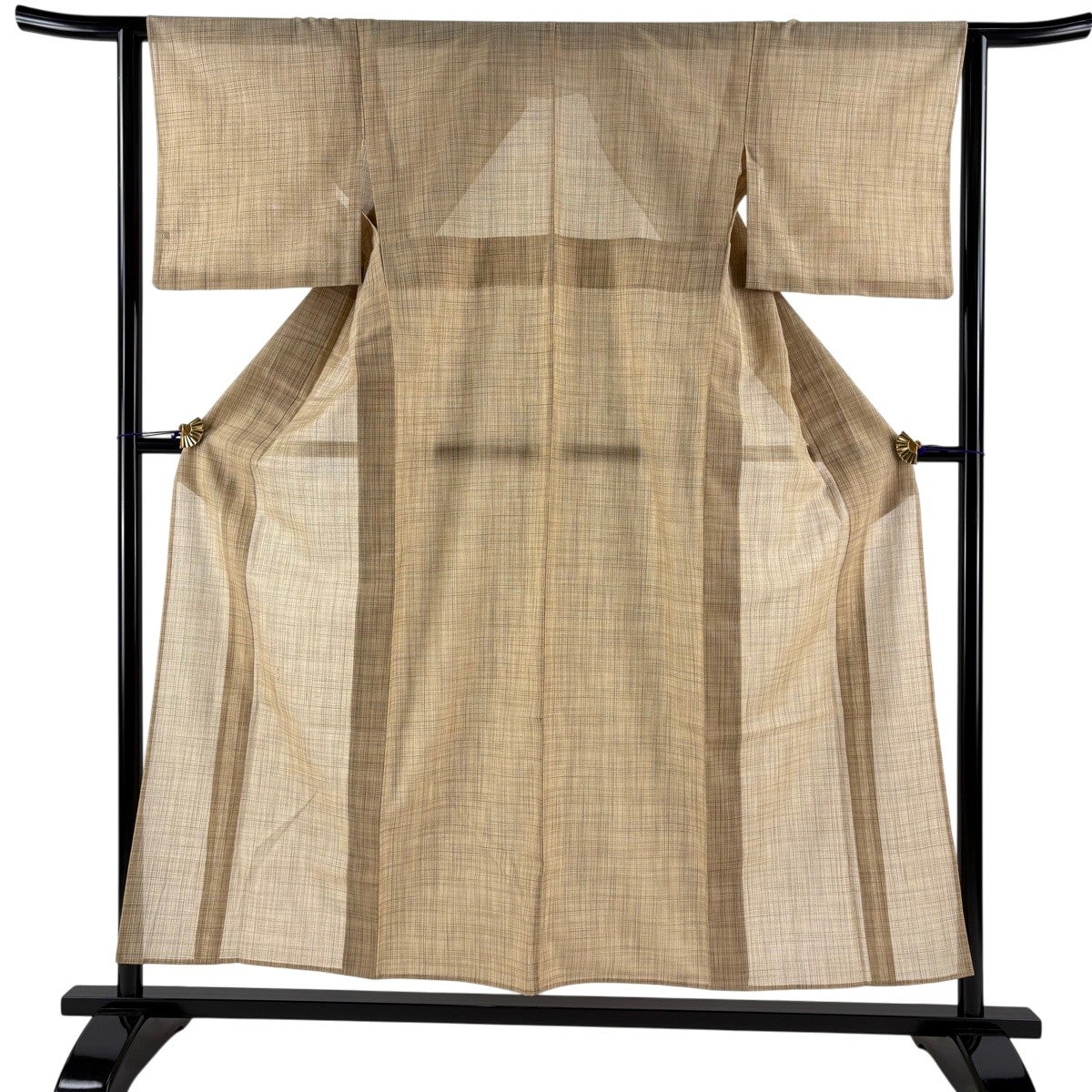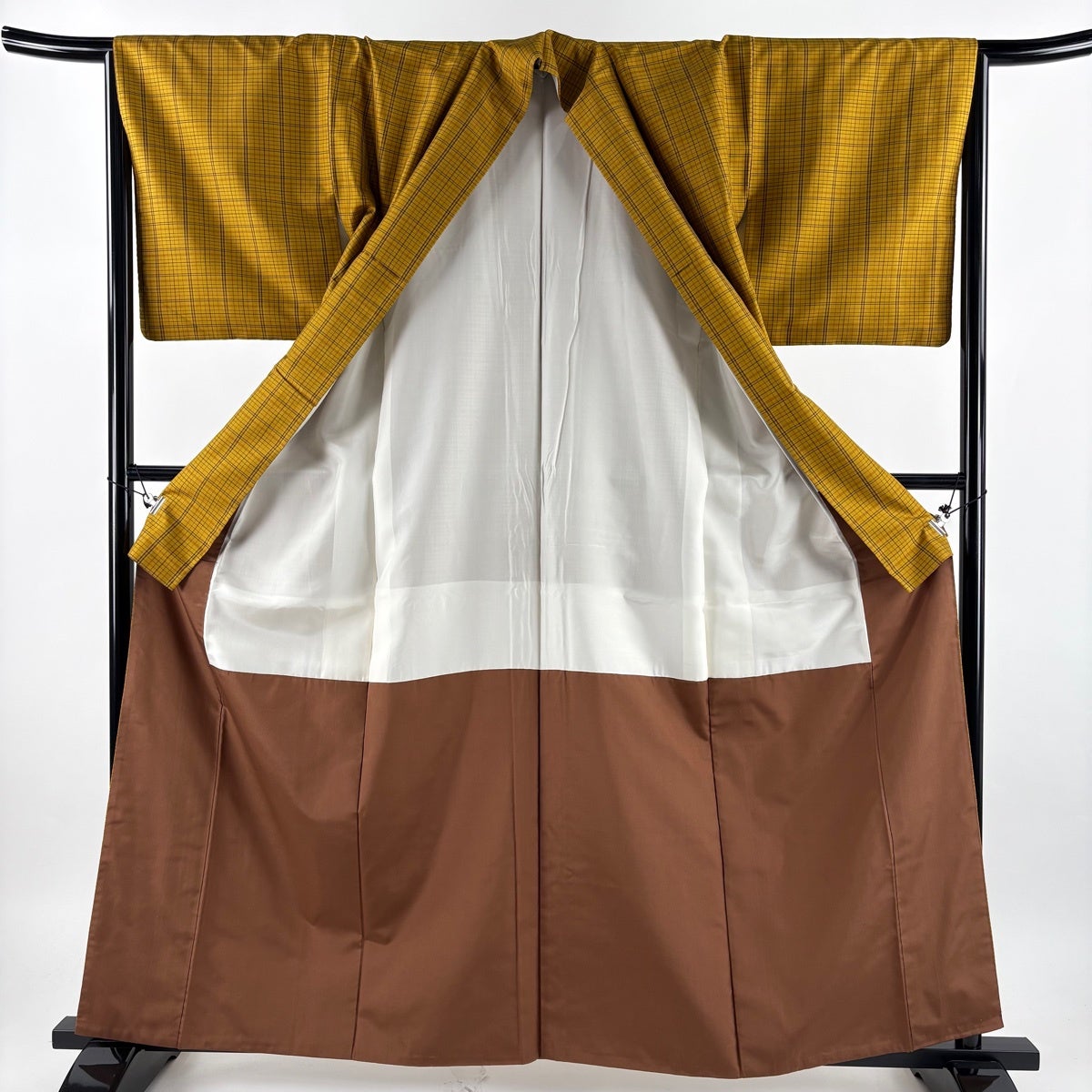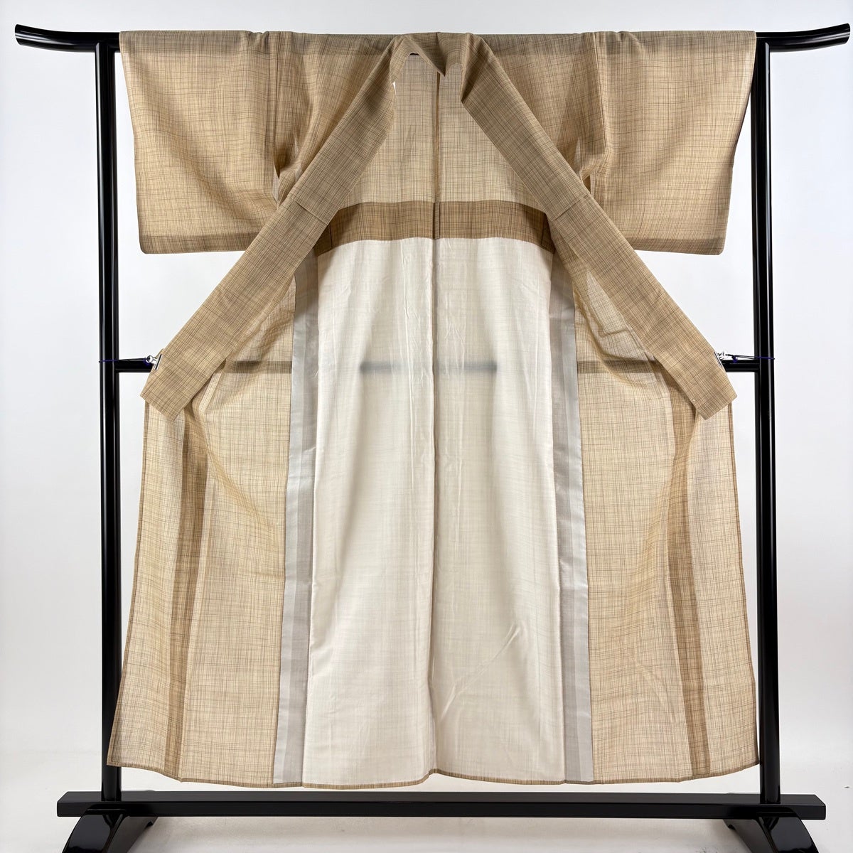 紬 身丈154cm 裄丈63cm S 薄物 夏紬 格子 薄茶色 正絹 秀品