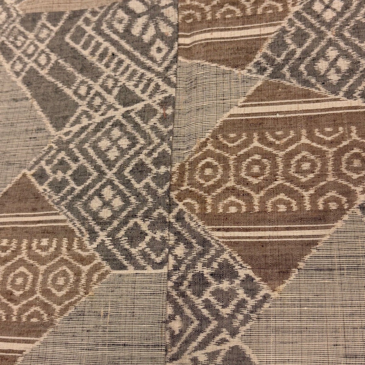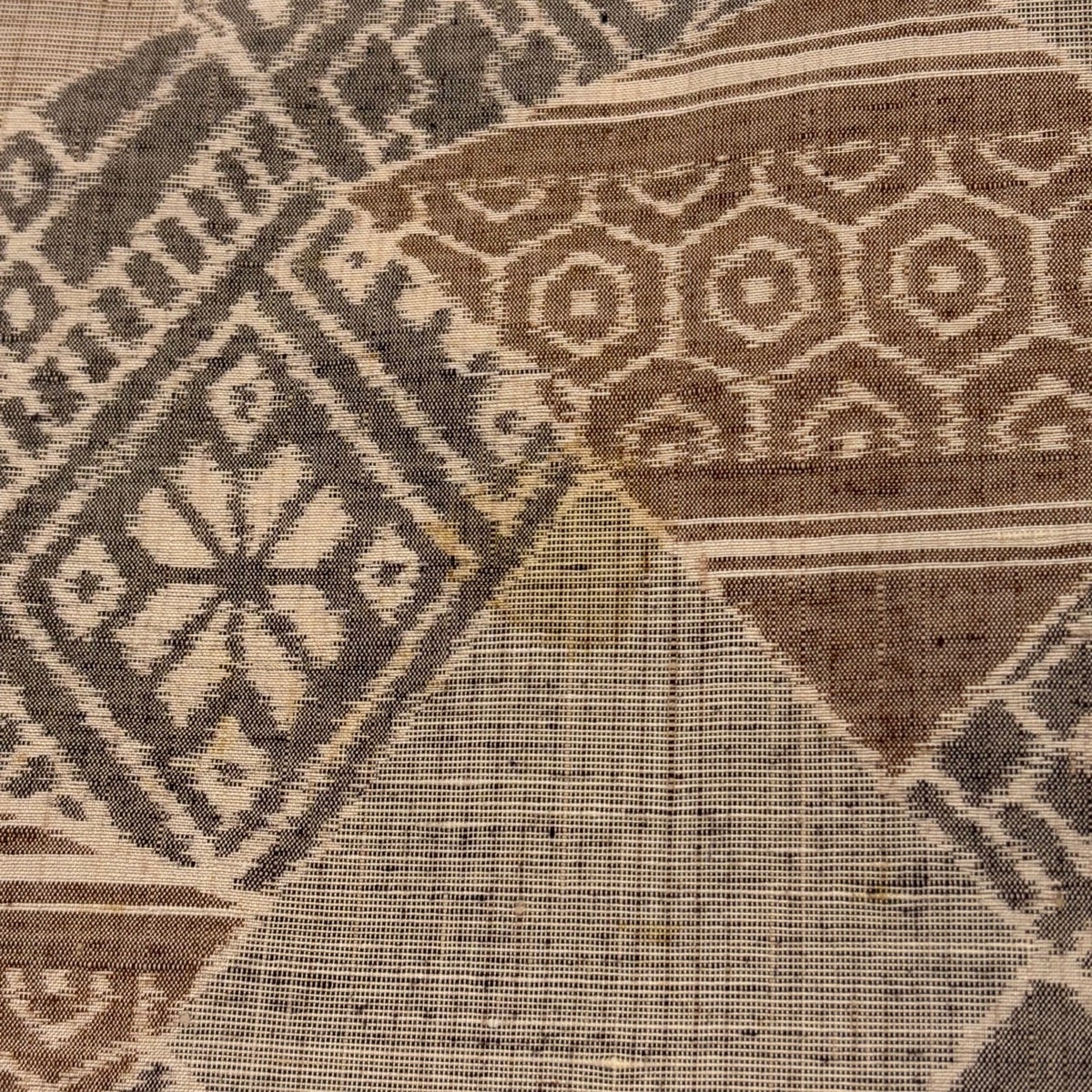 紬 身丈162.5cm 裄丈63cm S 袷 幾何学模様 焦茶色 正絹 名品