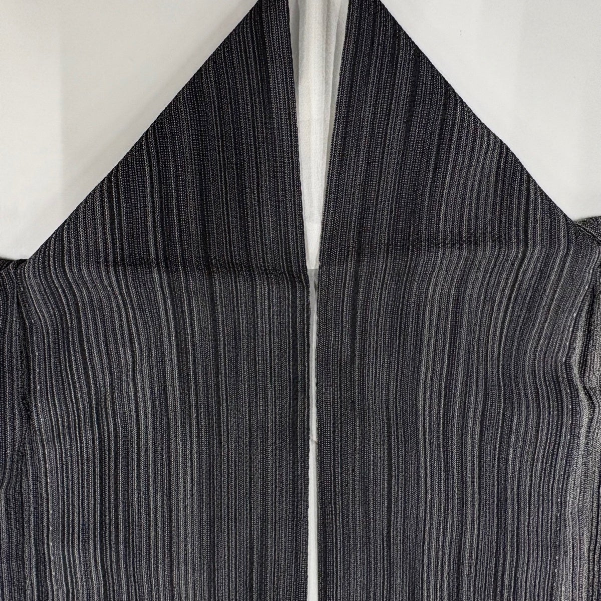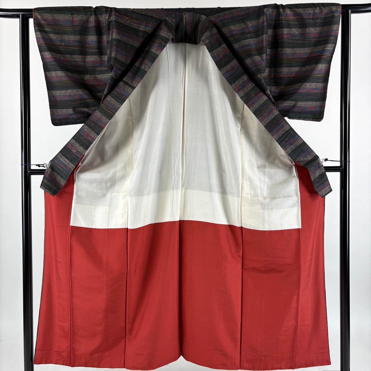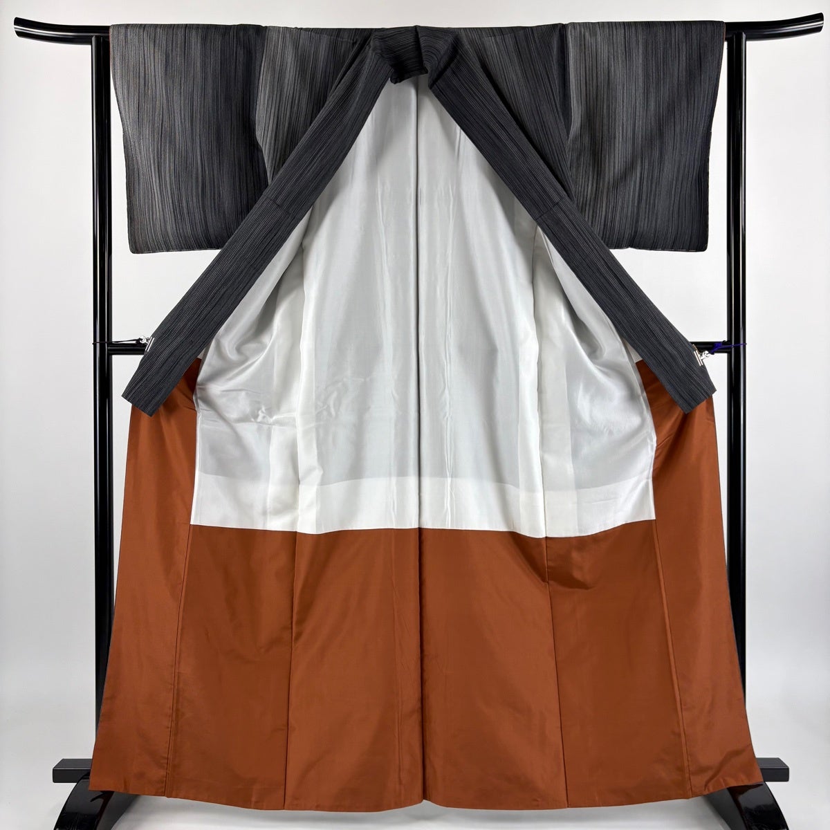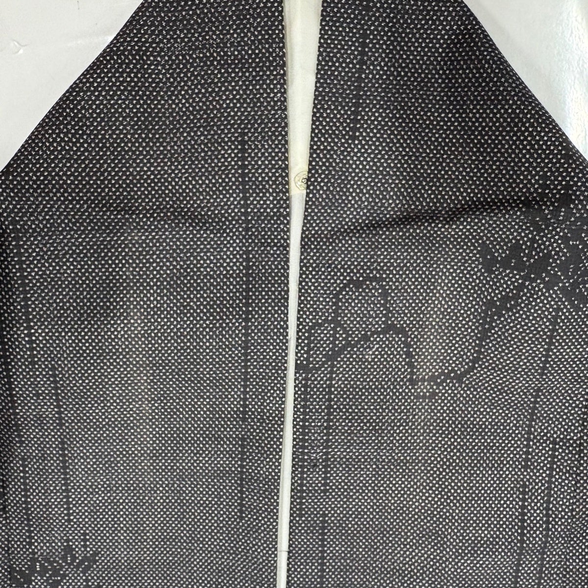 紬 身丈151.5cm 裄丈63.5cm S 袷 幾何学模様 墨色 正絹 秀品