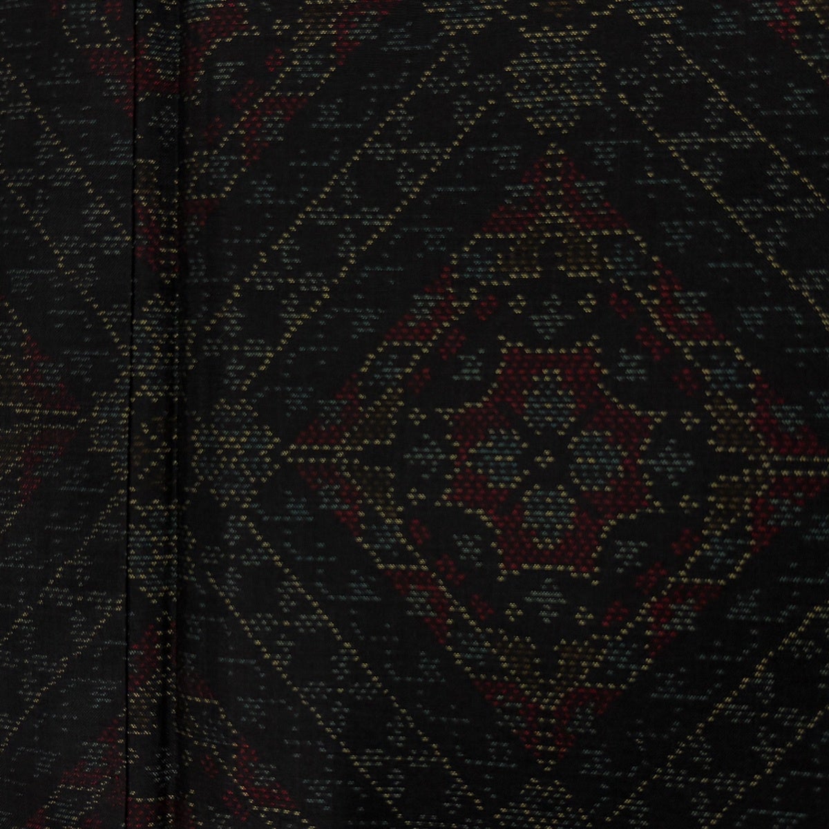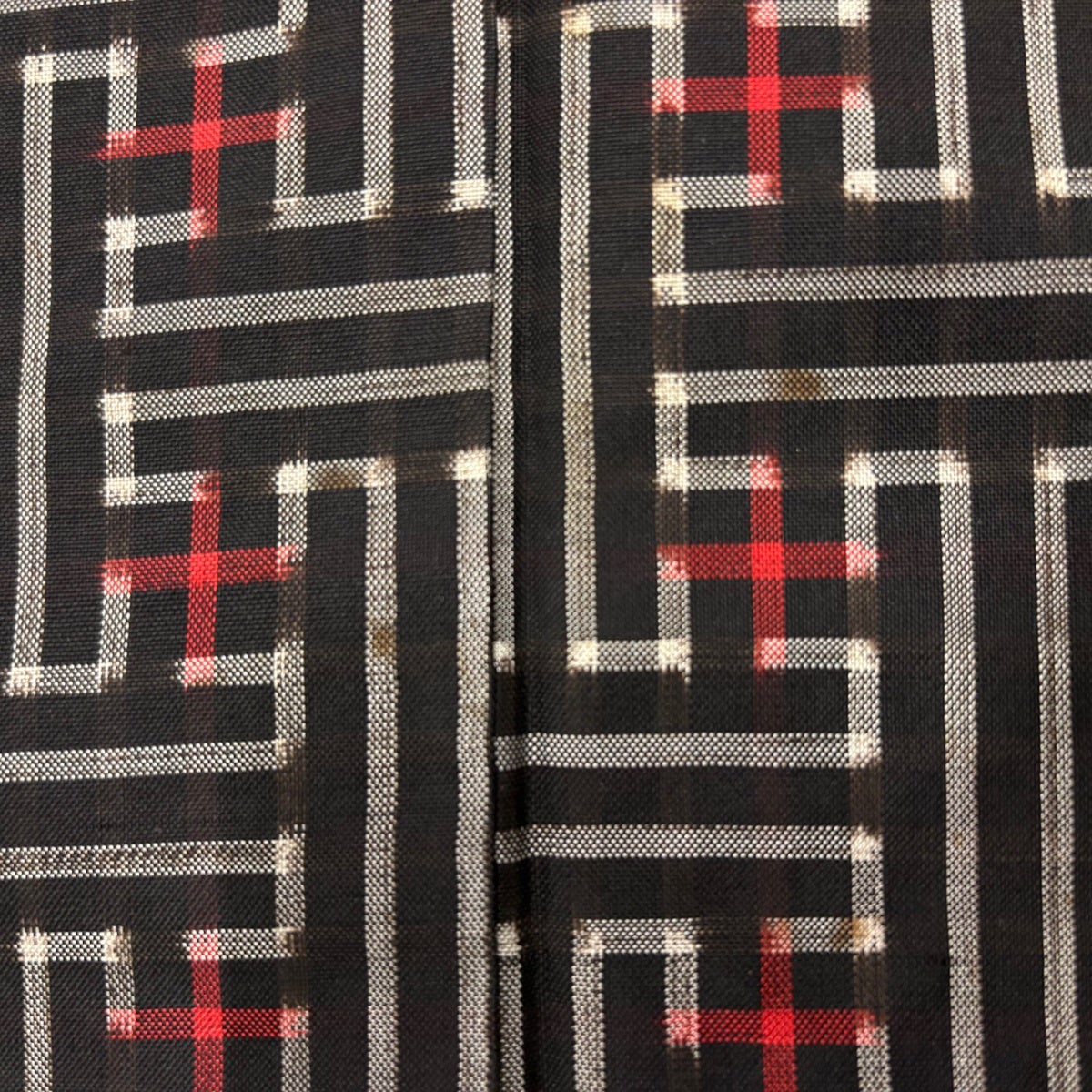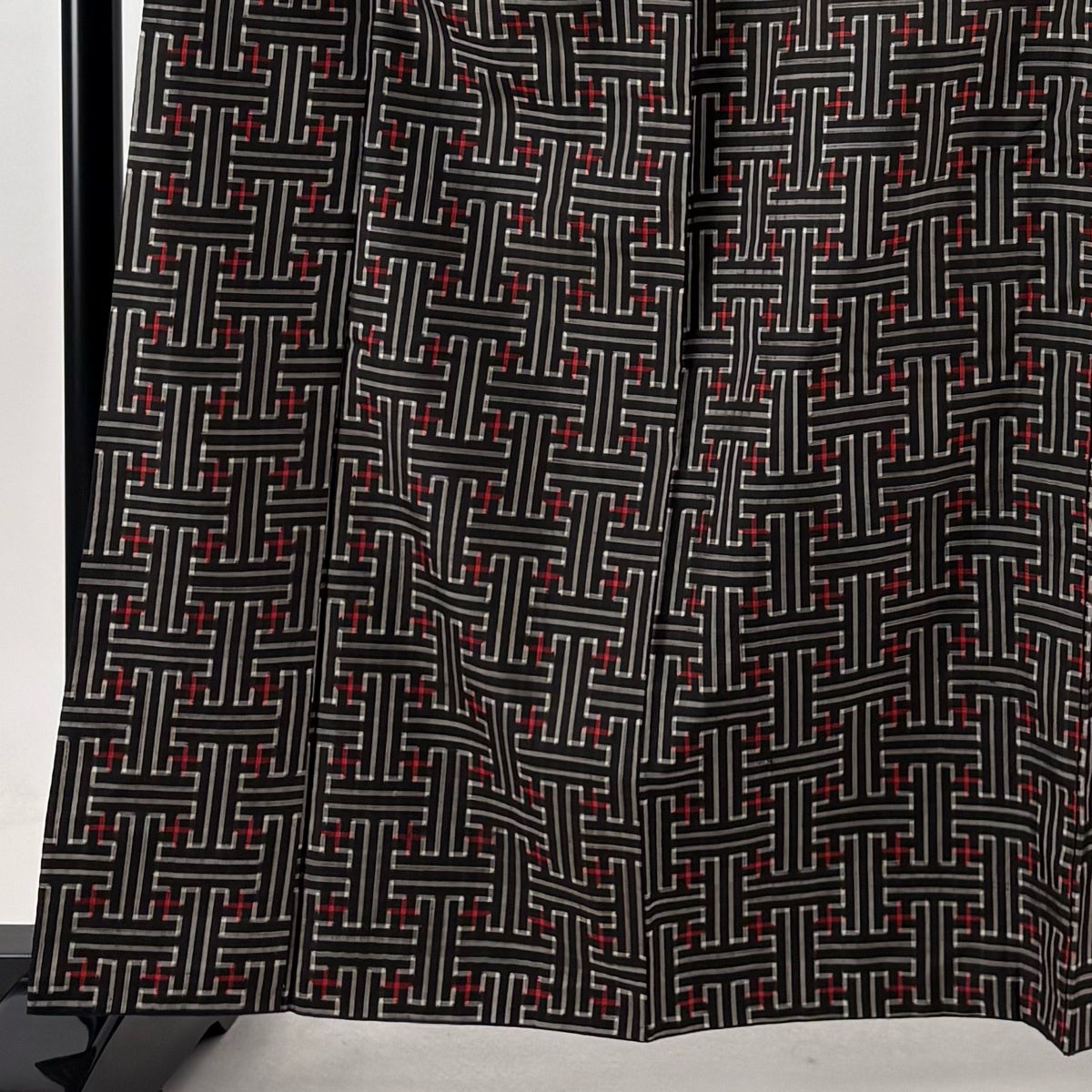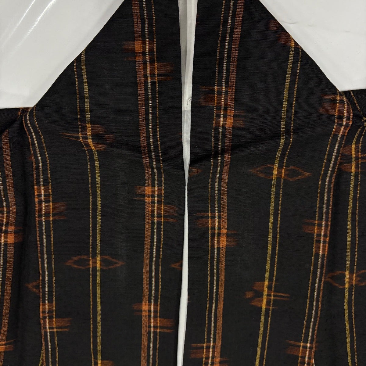 紬 身丈151.5cm 裄丈63.5cm S 袷 幾何学模様 墨色 正絹 秀品