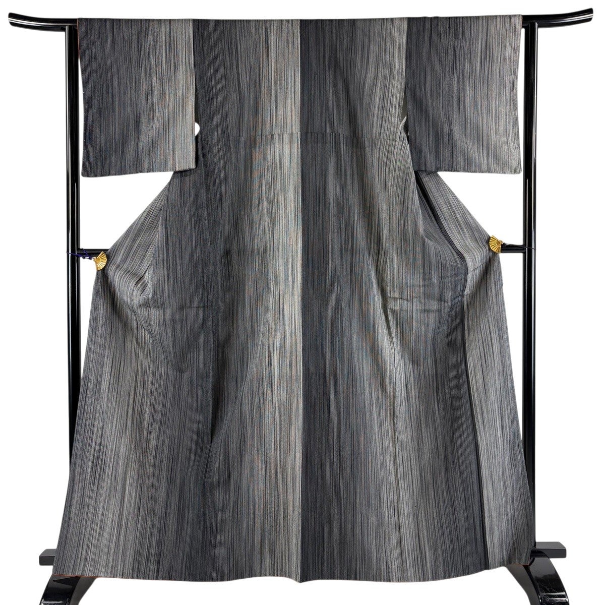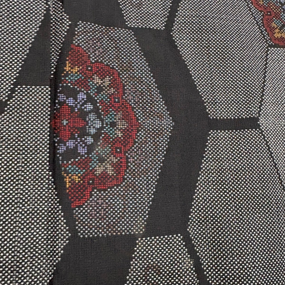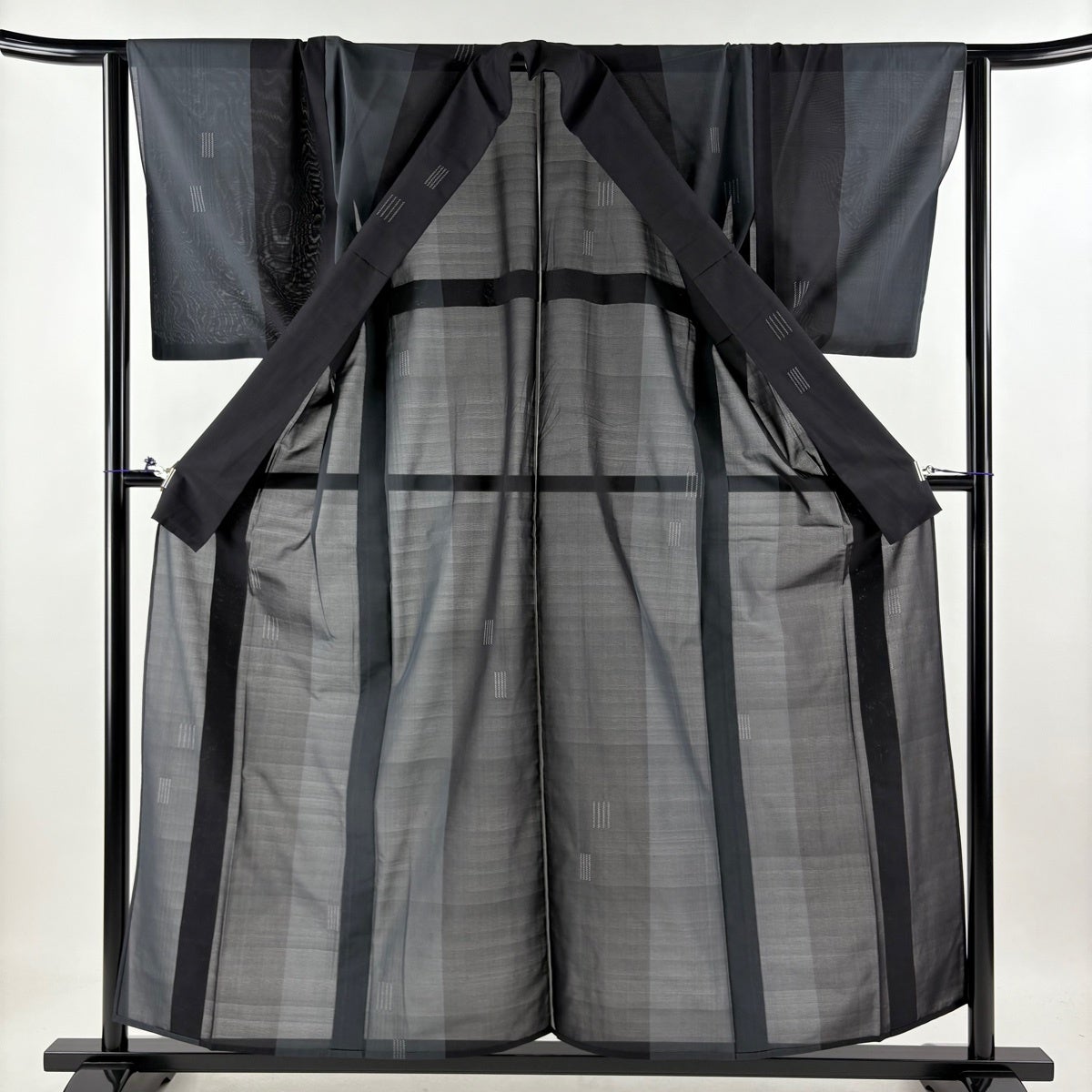 紬 身丈158cm 裄丈64cm M 袷 華文 斜め格子 黒灰 正絹 優品