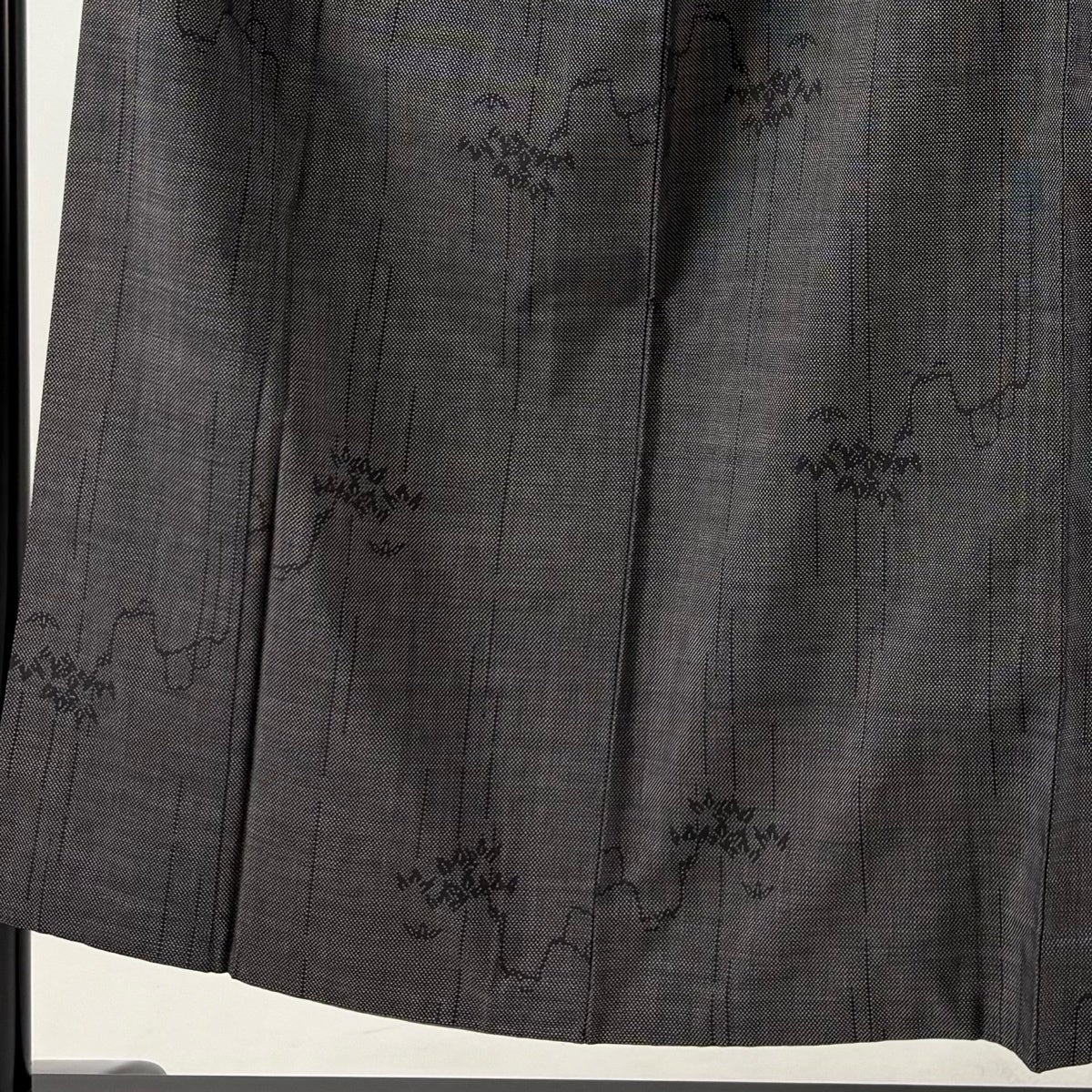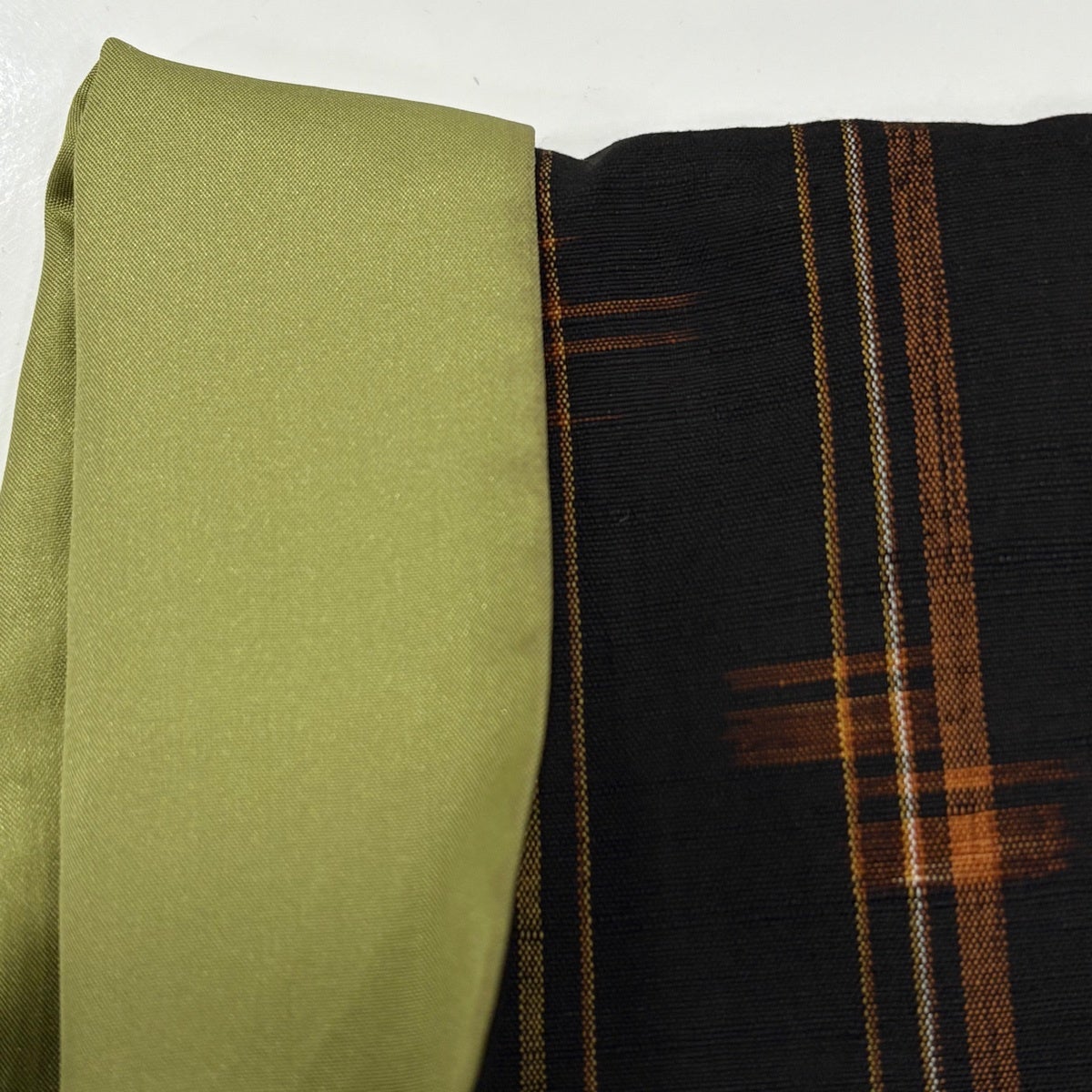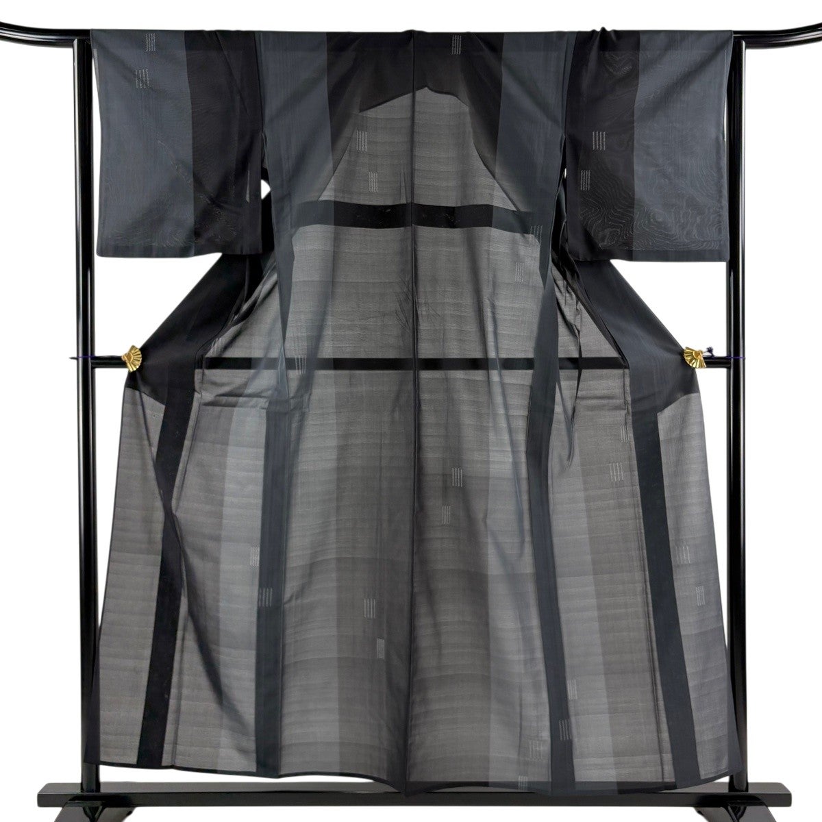 紬 身丈158cm 裄丈64cm M 袷 華文 斜め格子 黒灰 正絹 優品