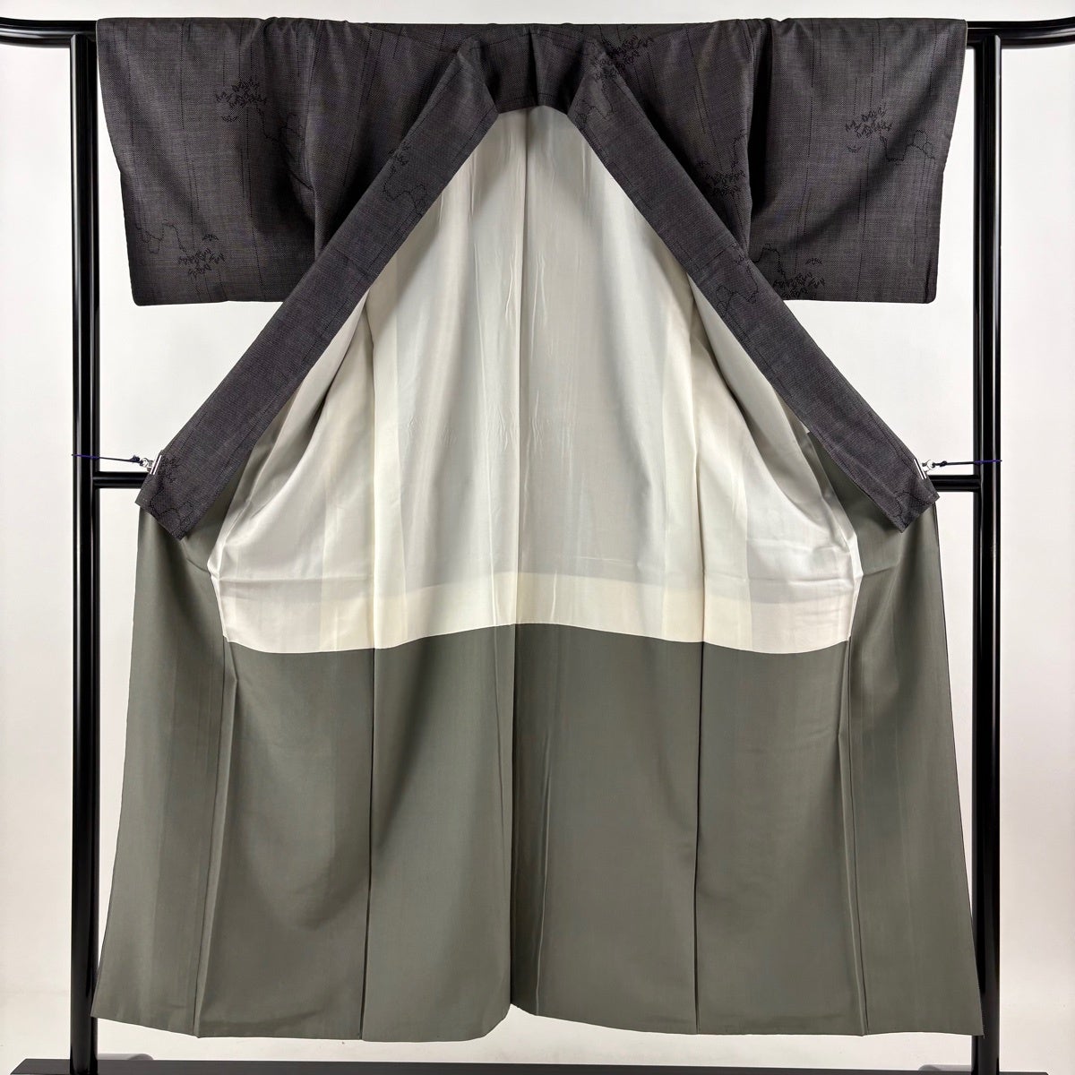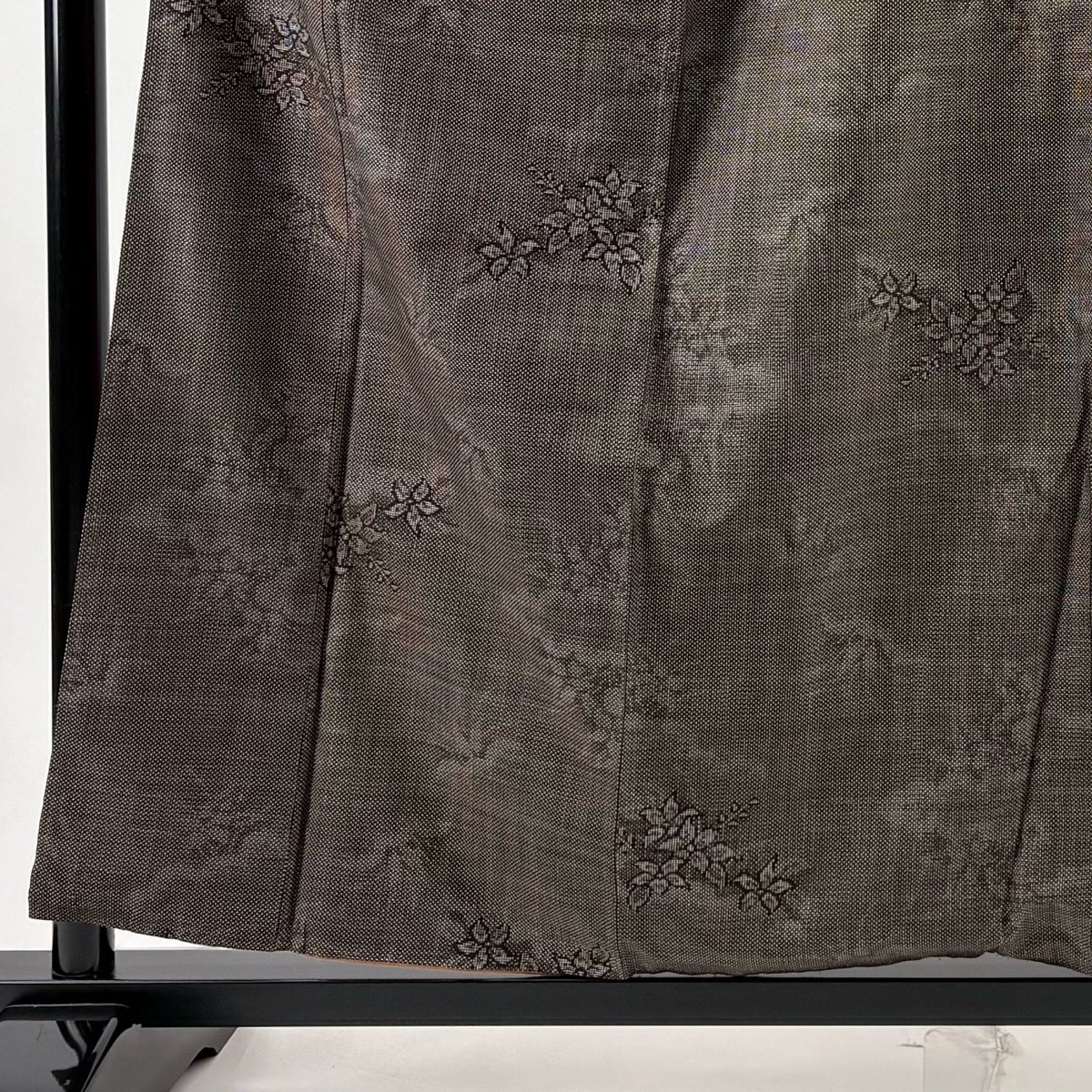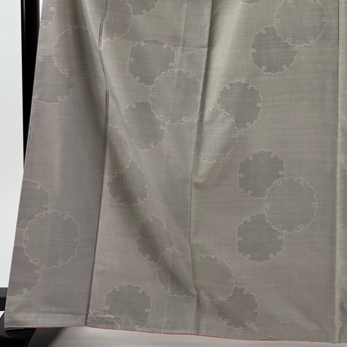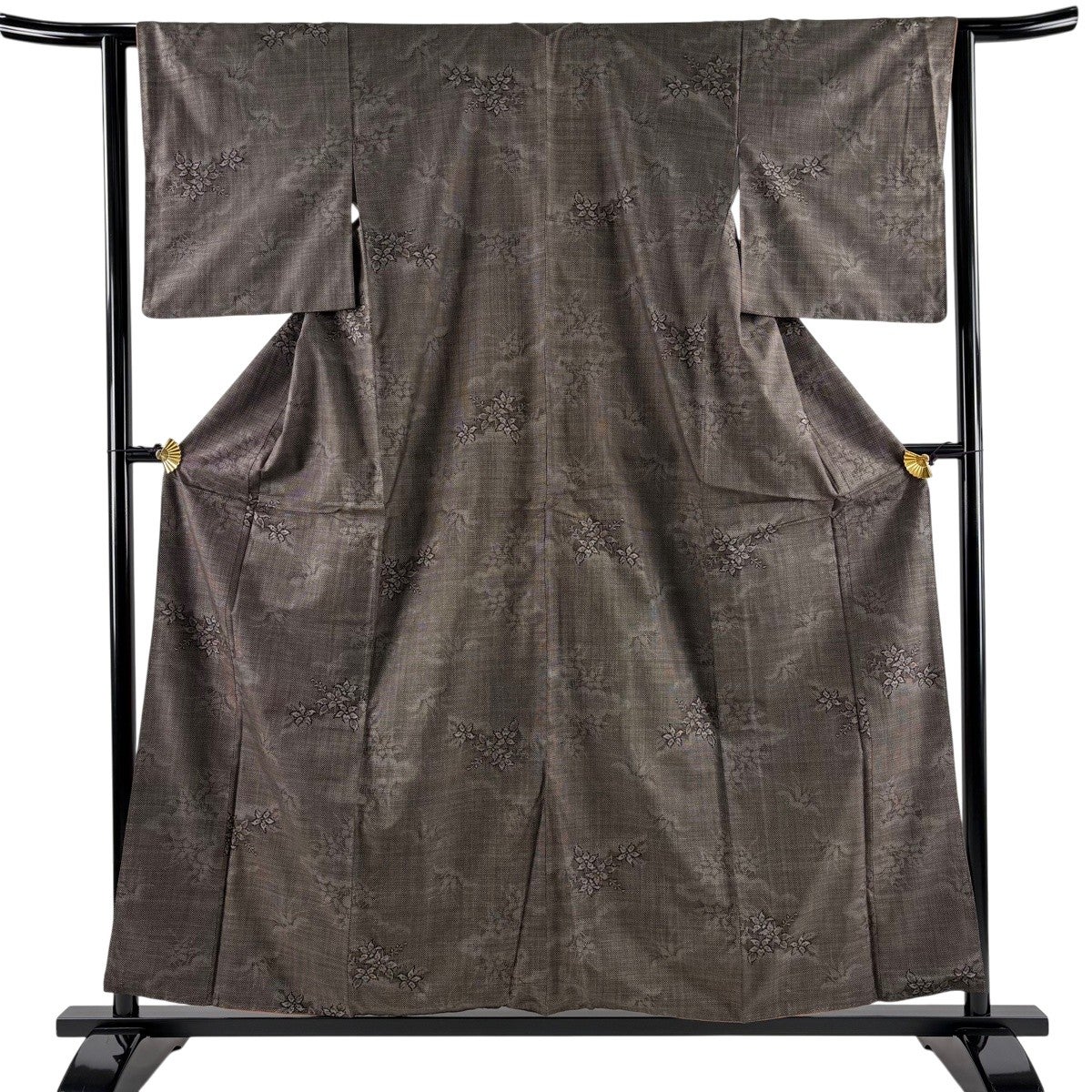 紬 身丈166cm 裄丈67.5cm L 袷 色紙 草花 灰色 正絹 秀品