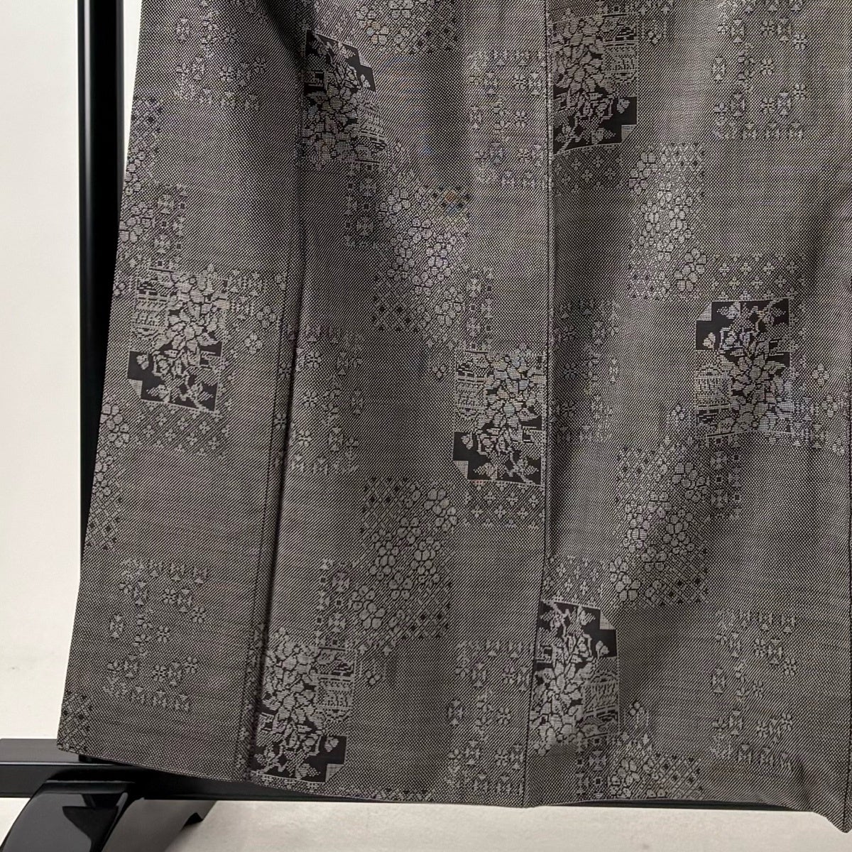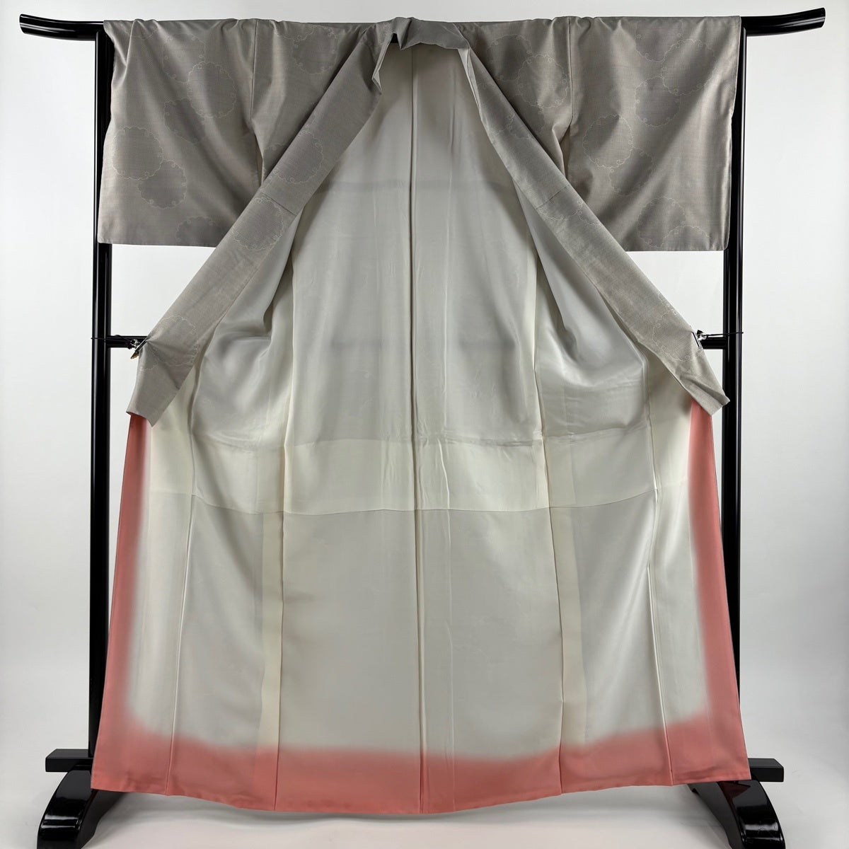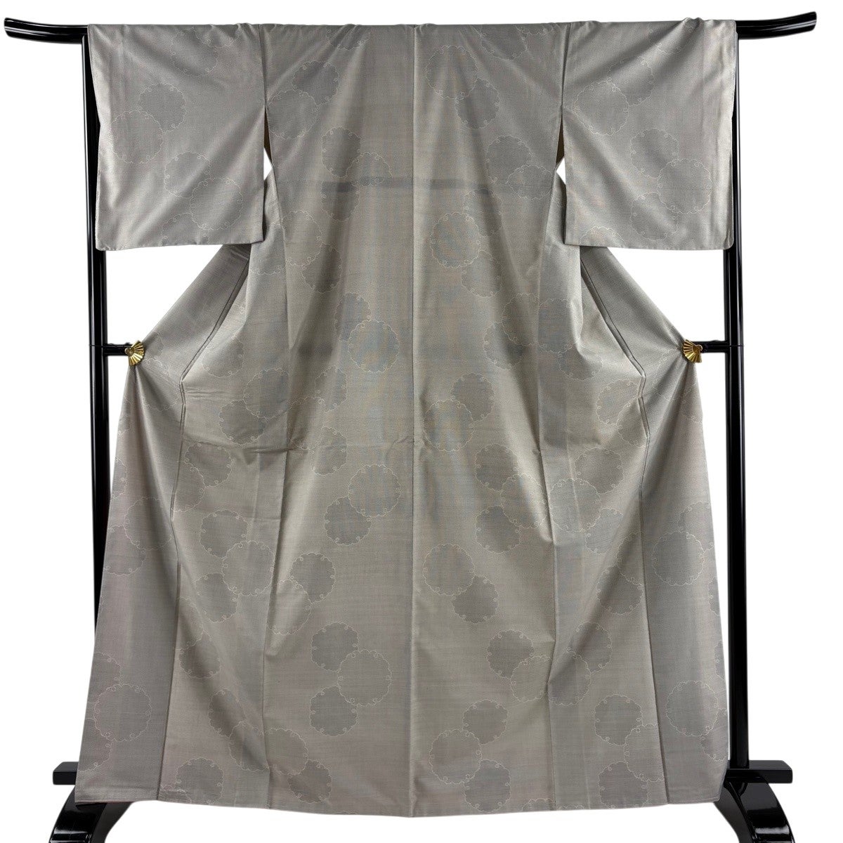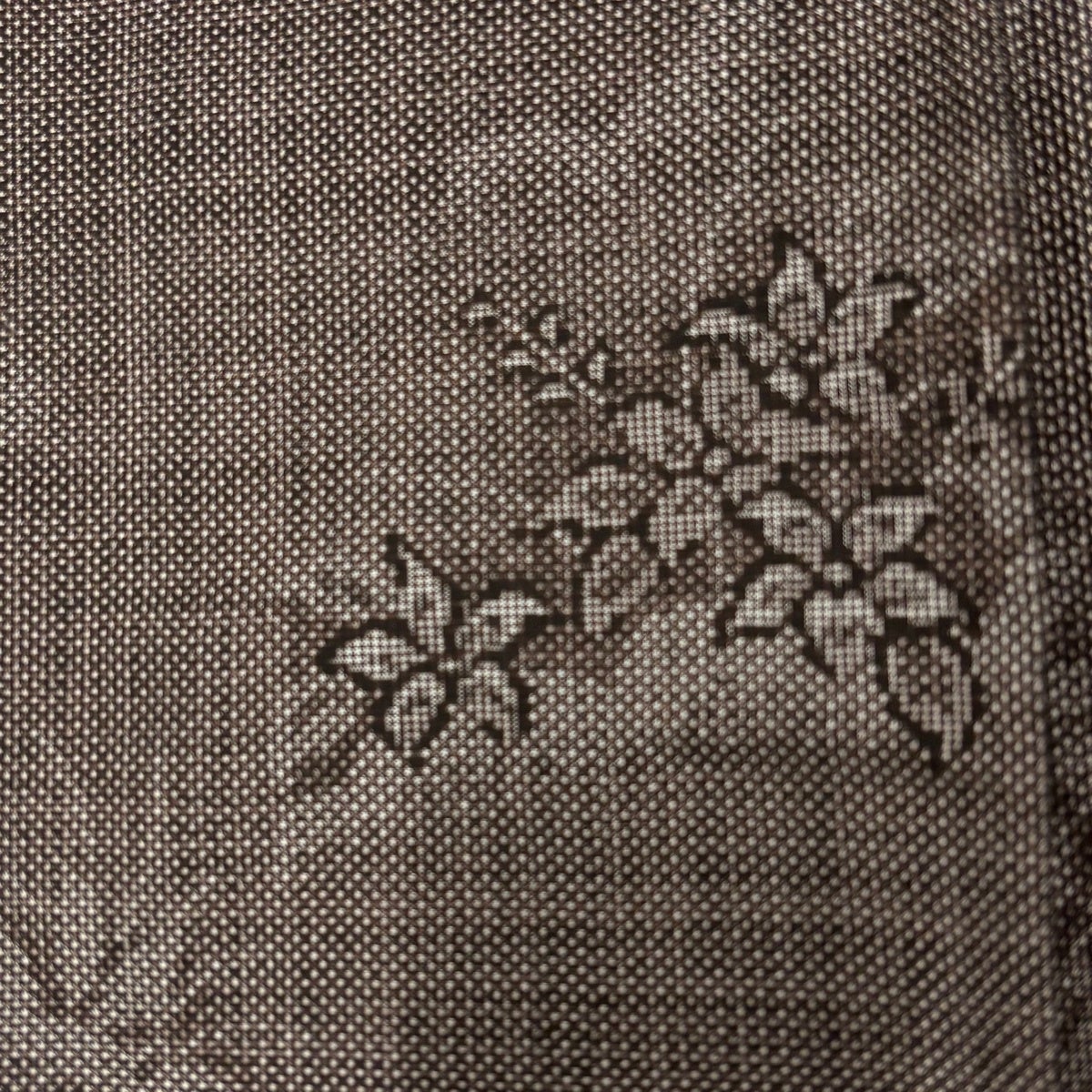紬 身丈166cm 裄丈67.5cm L 袷 色紙 草花 灰色 正絹 秀品