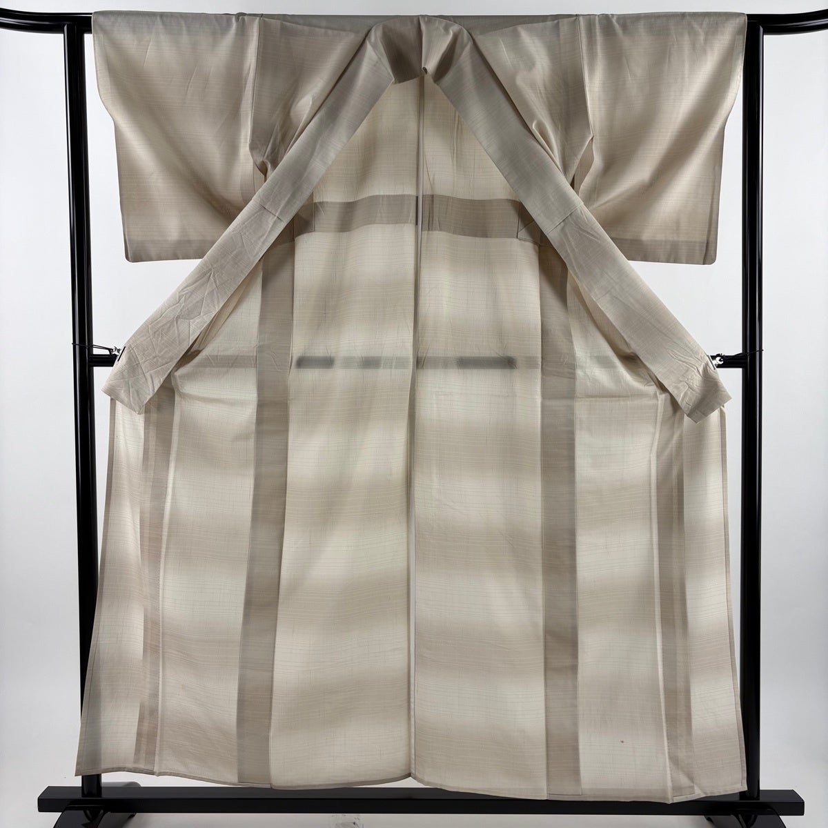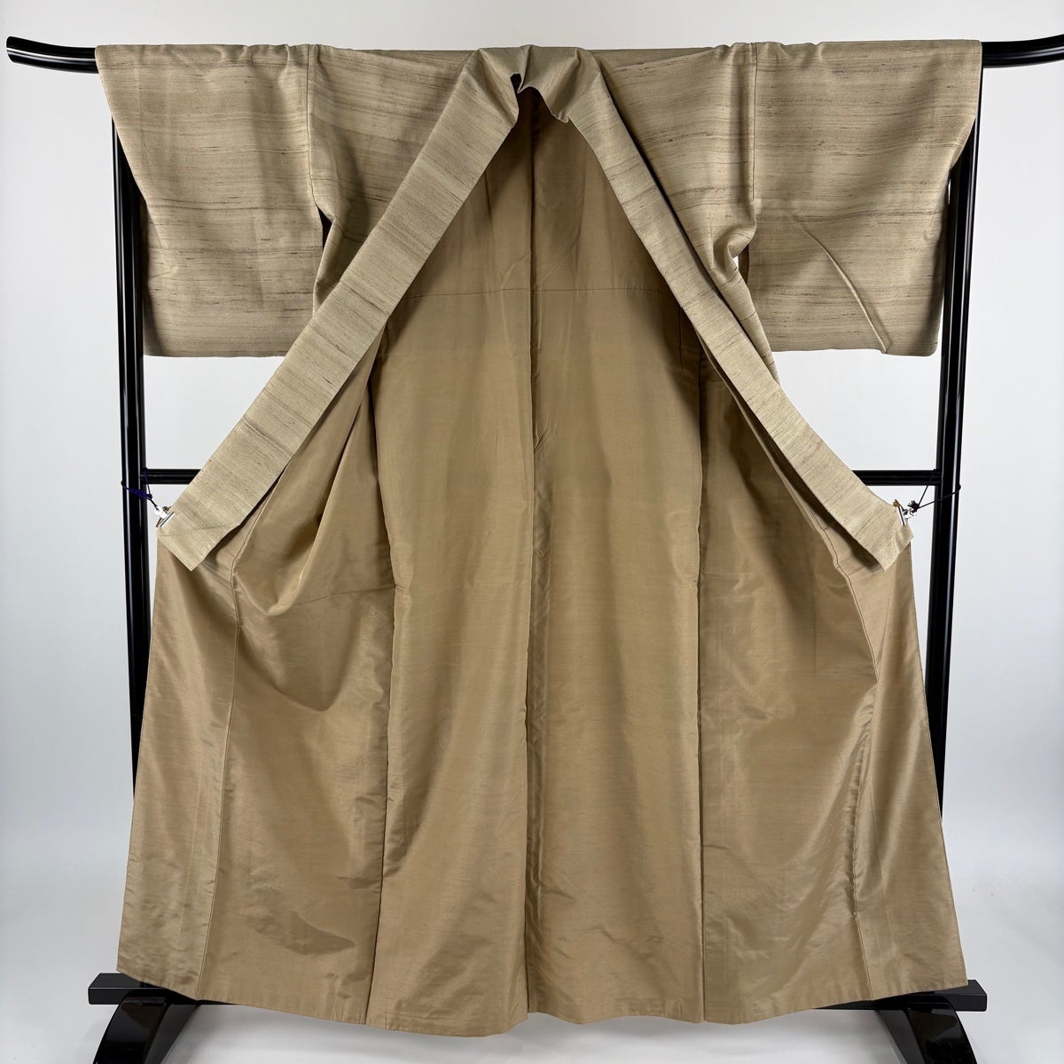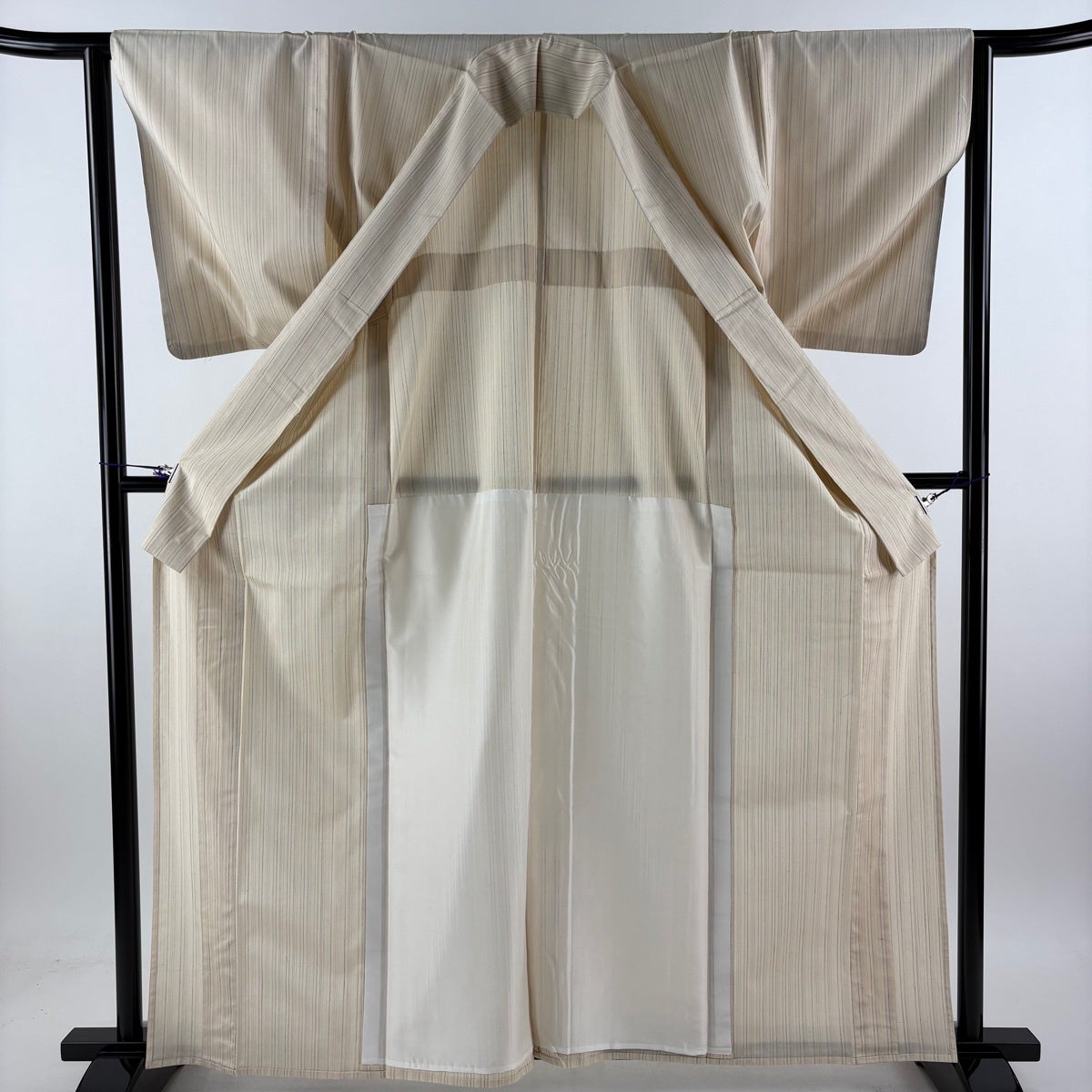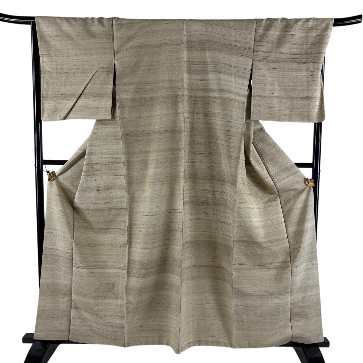 紬 身丈163cm 裄丈64cm M 単衣 縦縞 ベージュ 正絹 秀品
