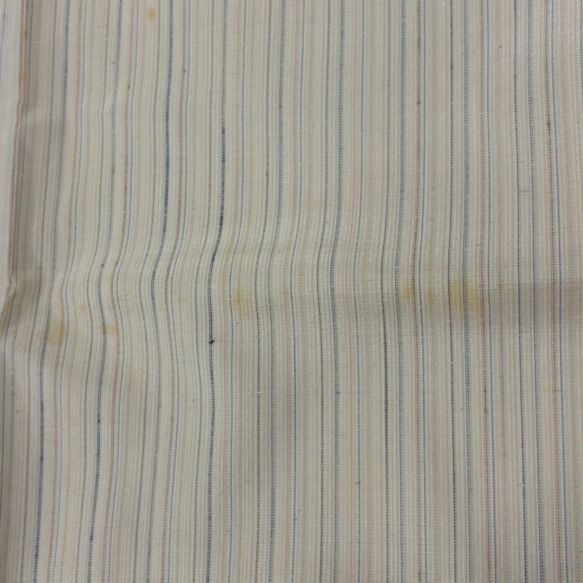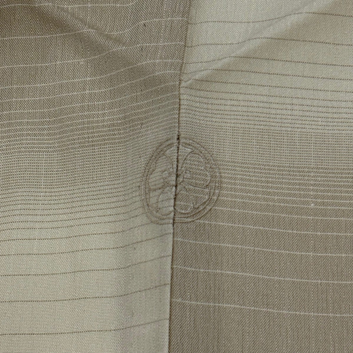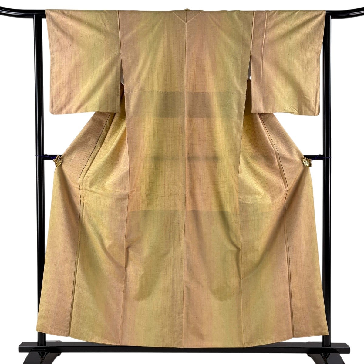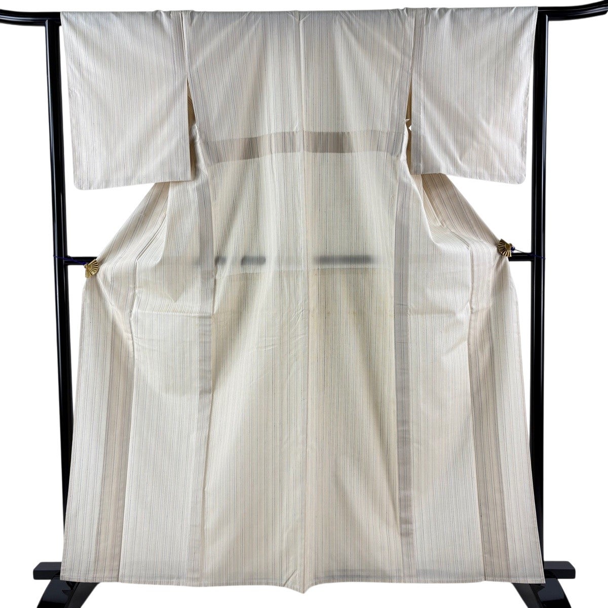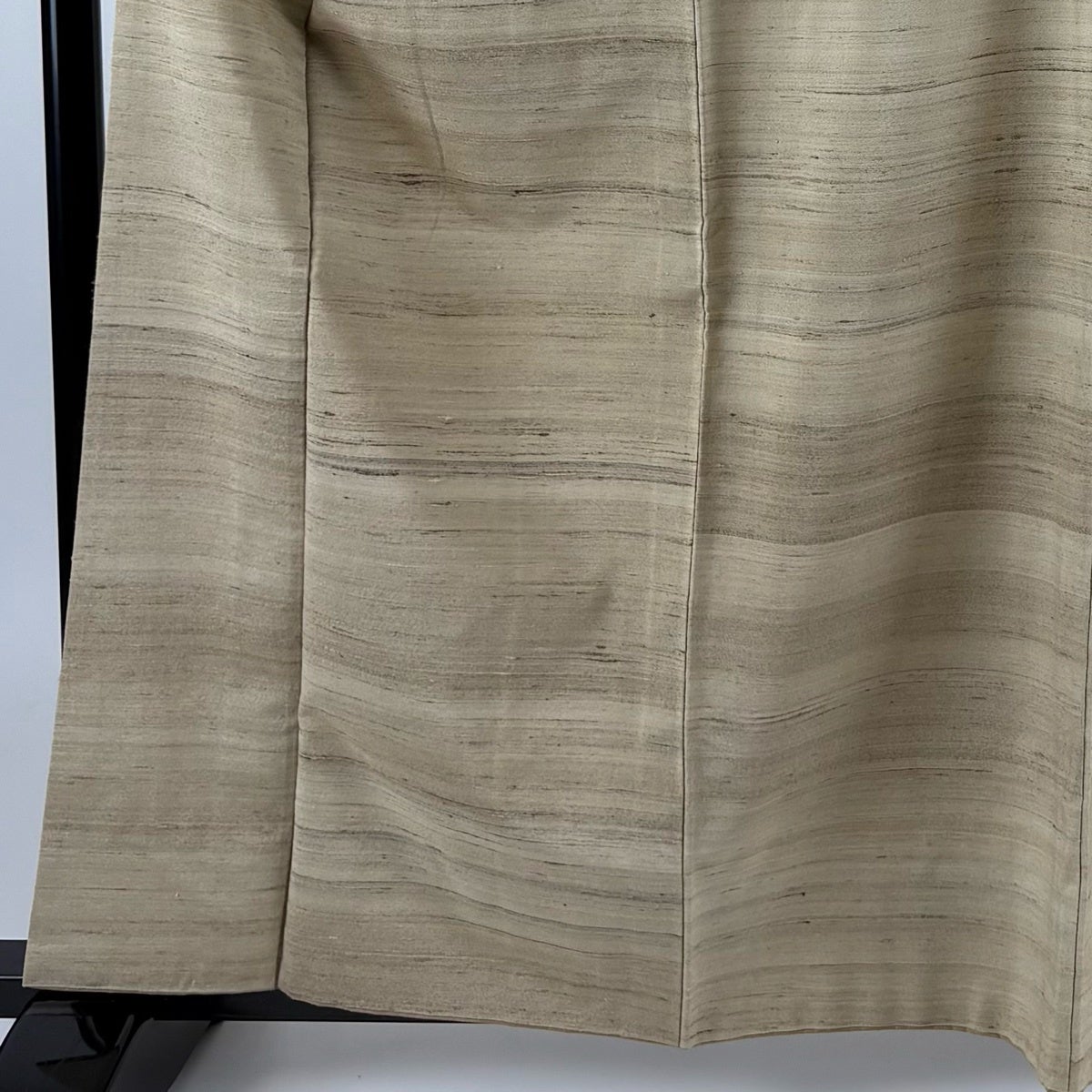 紬 身丈163cm 裄丈64cm M 単衣 縦縞 ベージュ 正絹 秀品