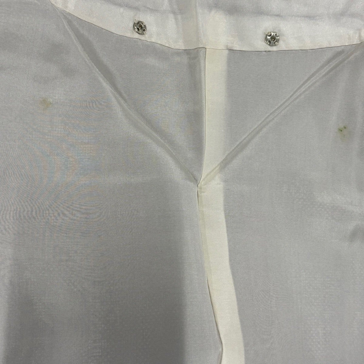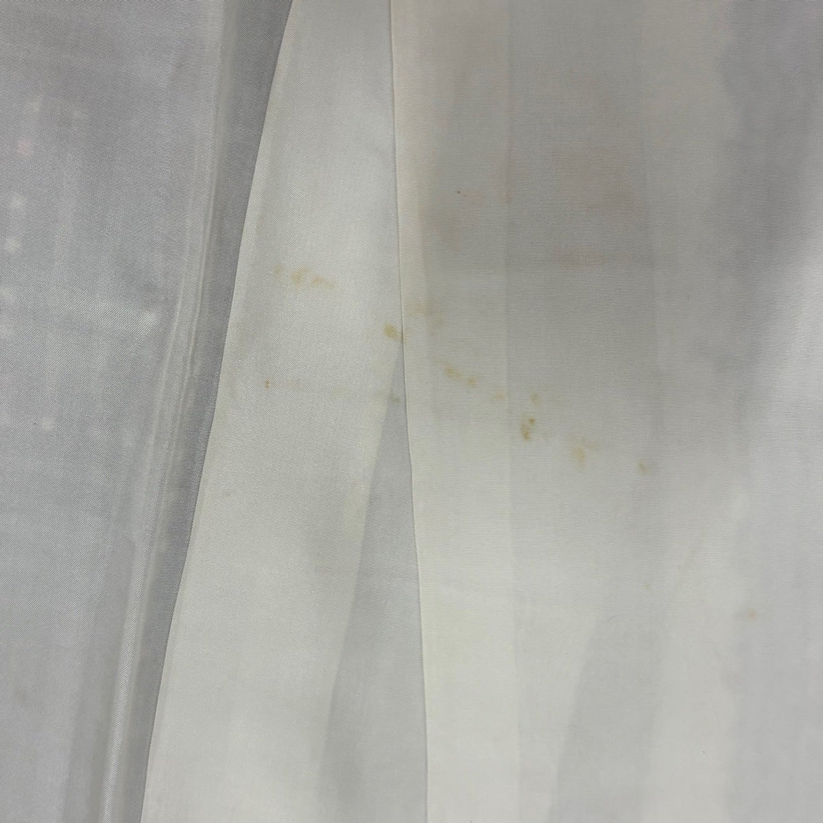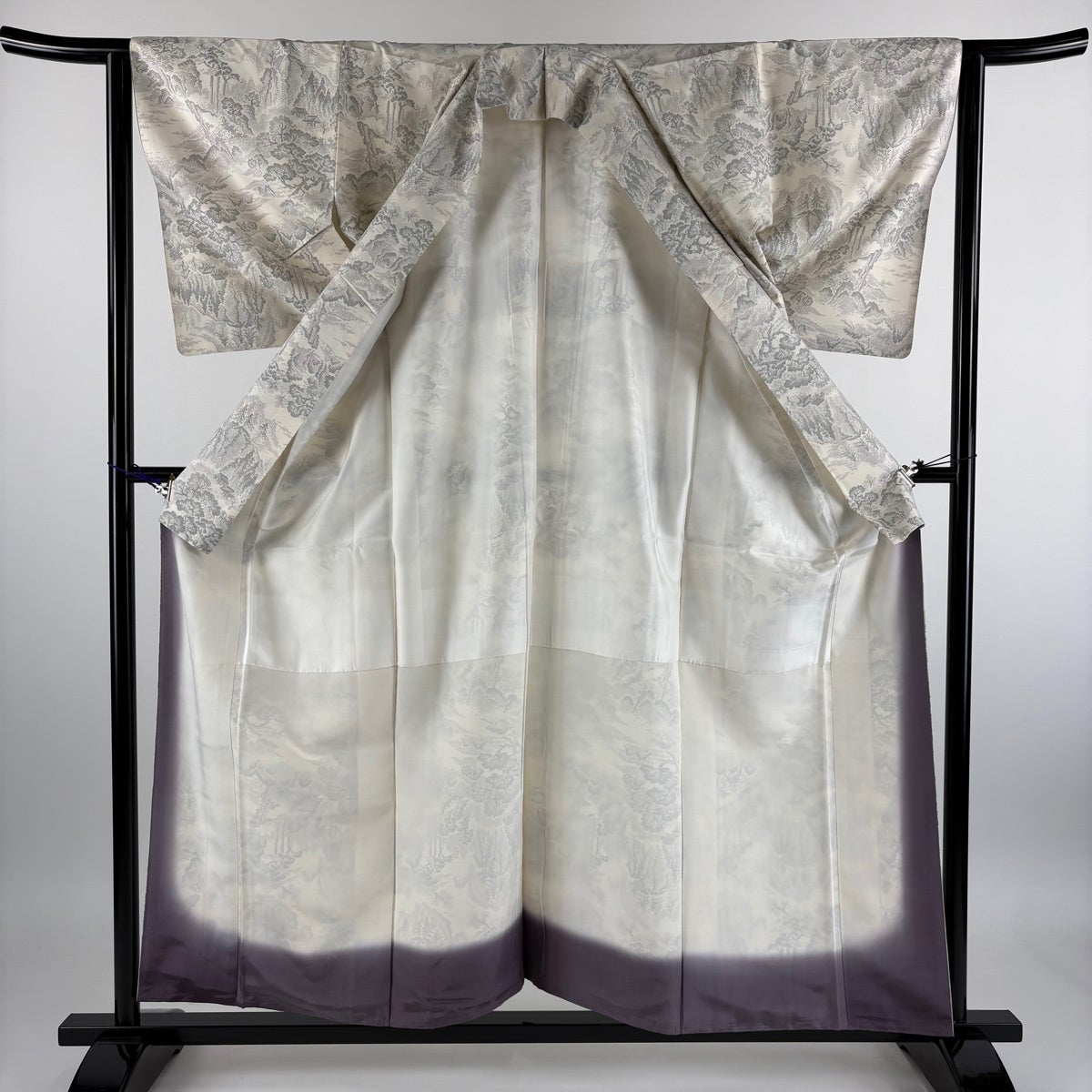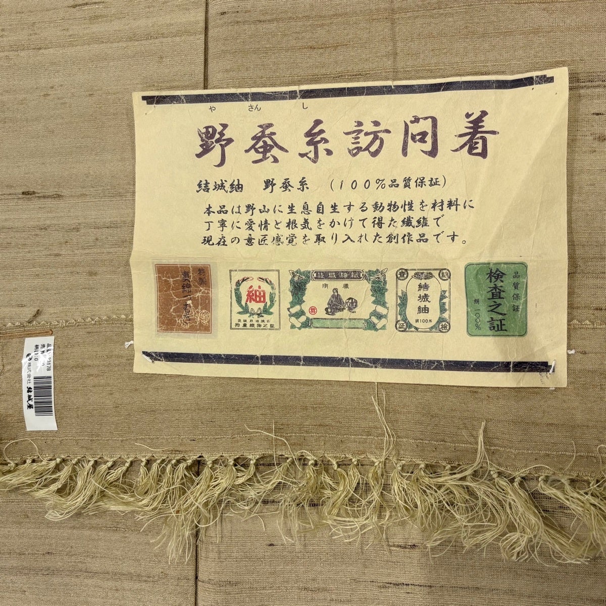 紬 身丈157cm 裄丈63cm S 袷 家屋 樹木 クリーム 正絹 秀品