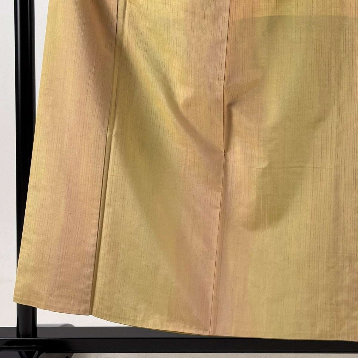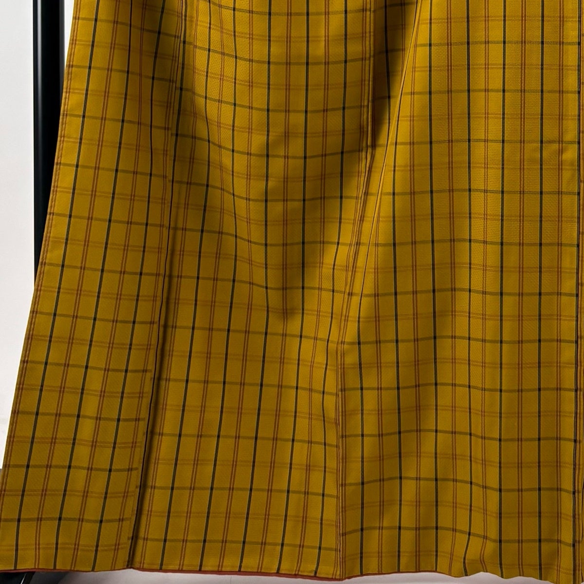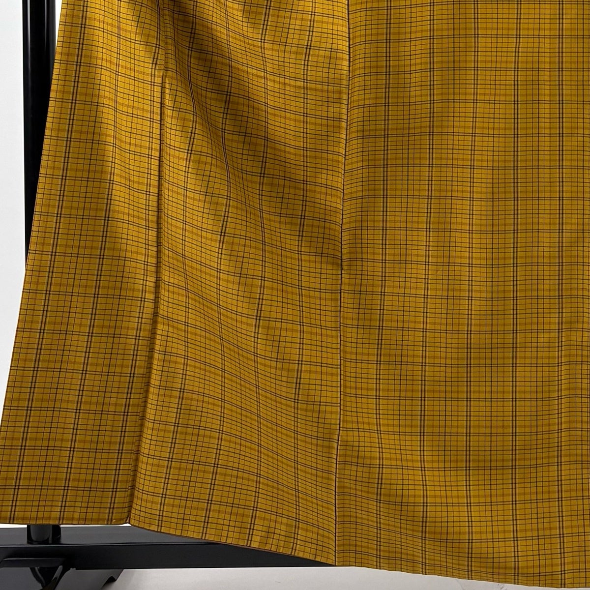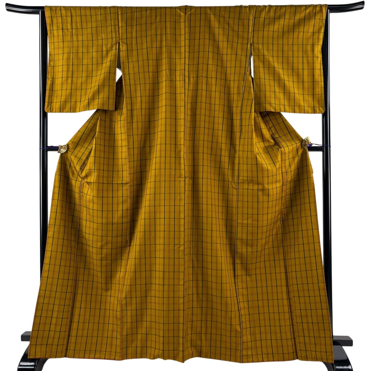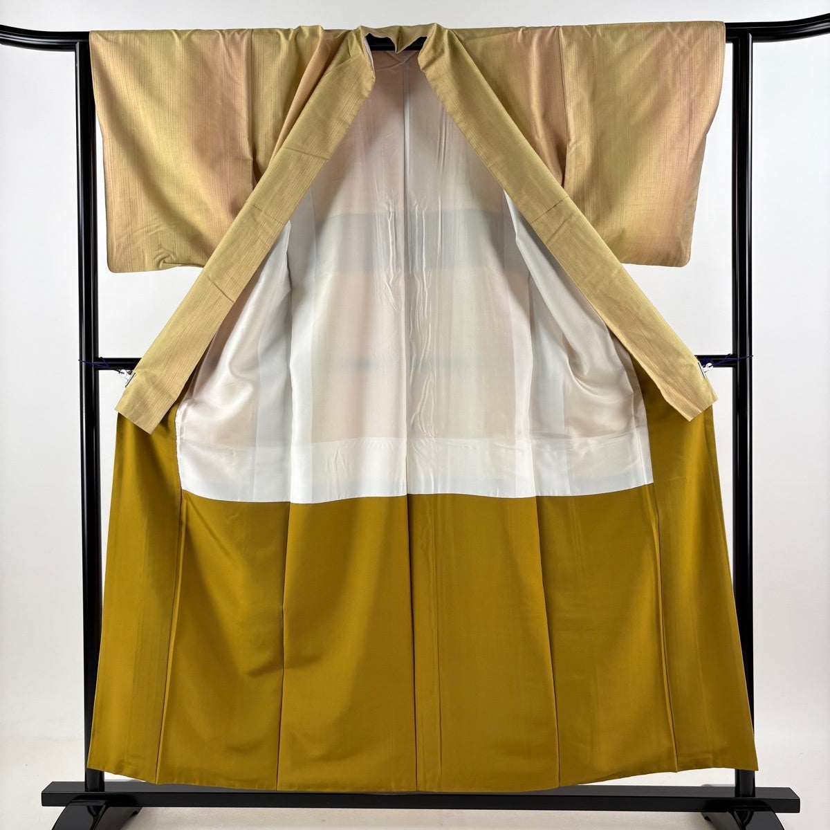 【美品】 紬 身丈156cm 裄丈62cm S 袷 縞 黄土色 正絹 秀品