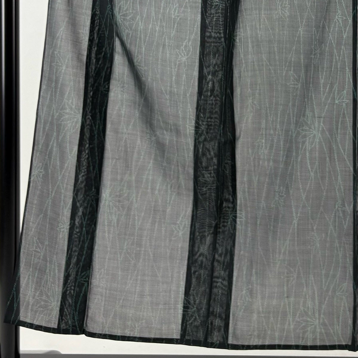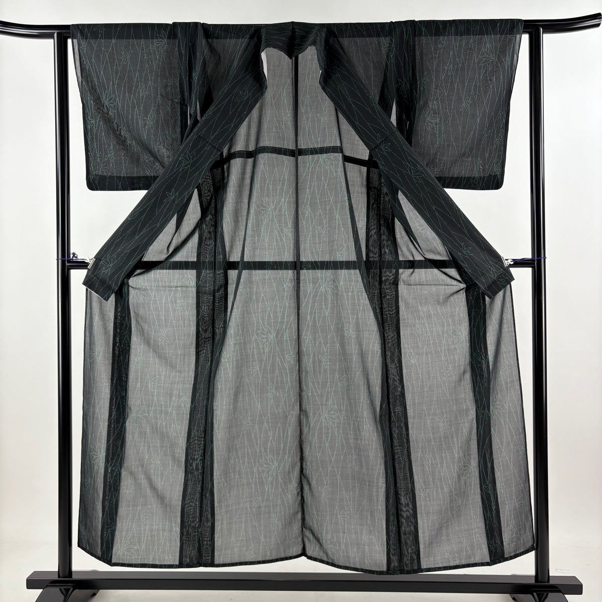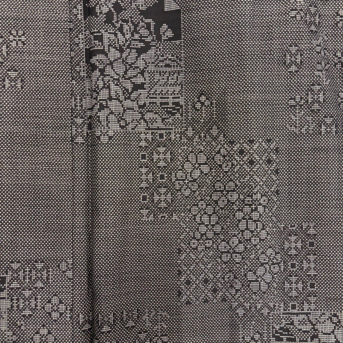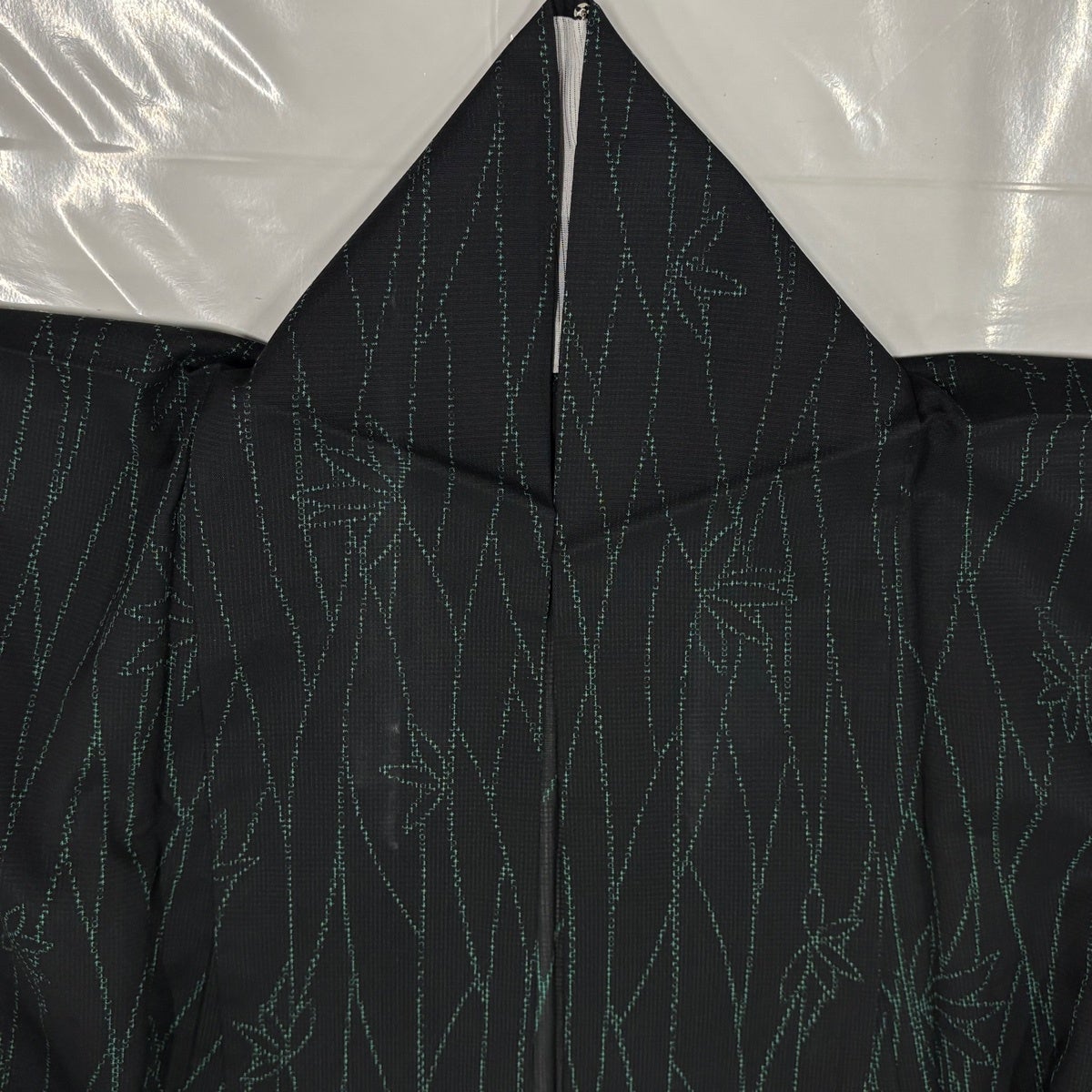 紬 身丈152cm 裄丈63.5cm S 袷 笹 幾何学 黒灰 正絹 秀品
